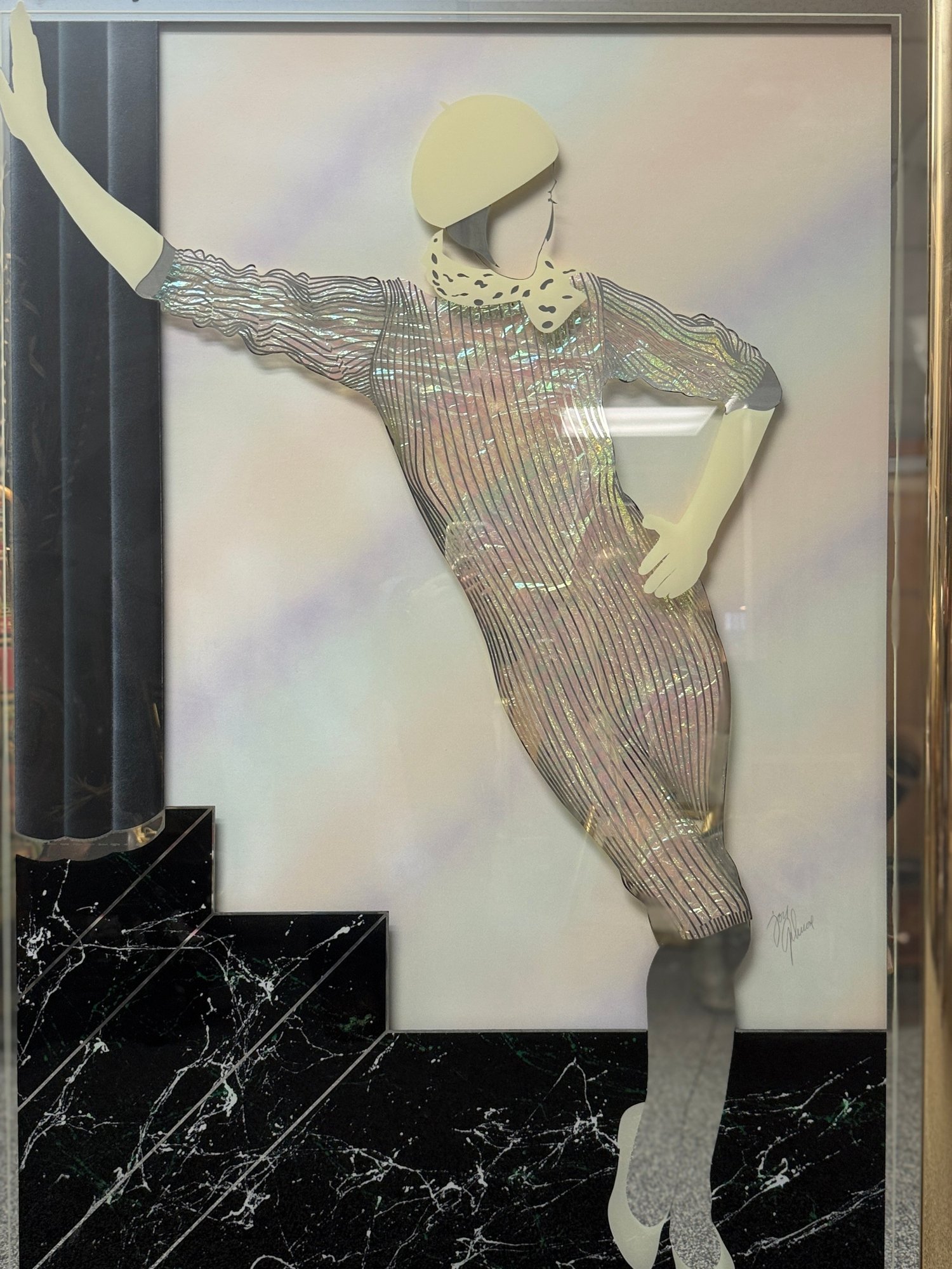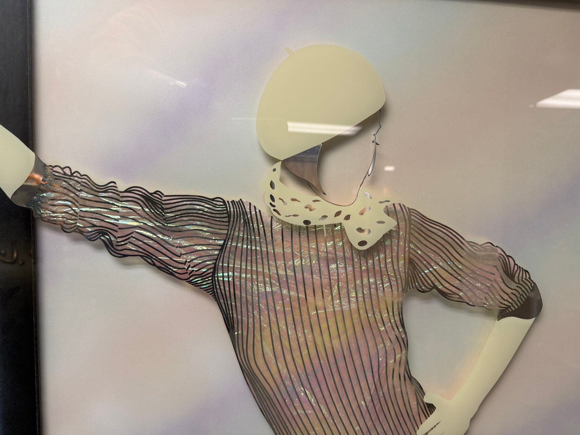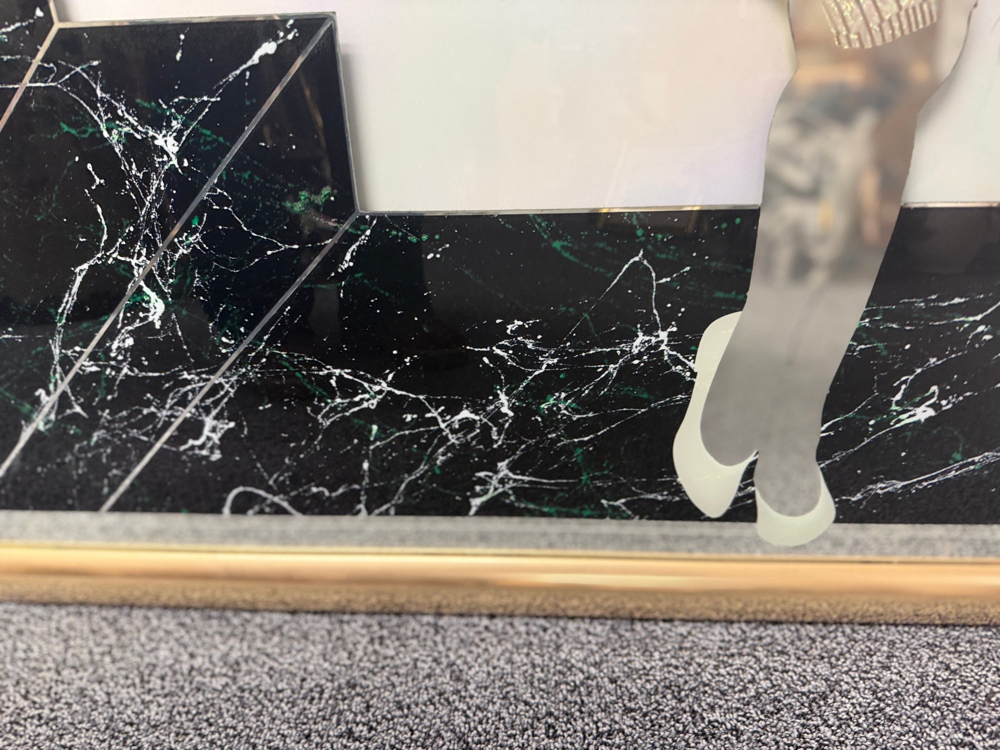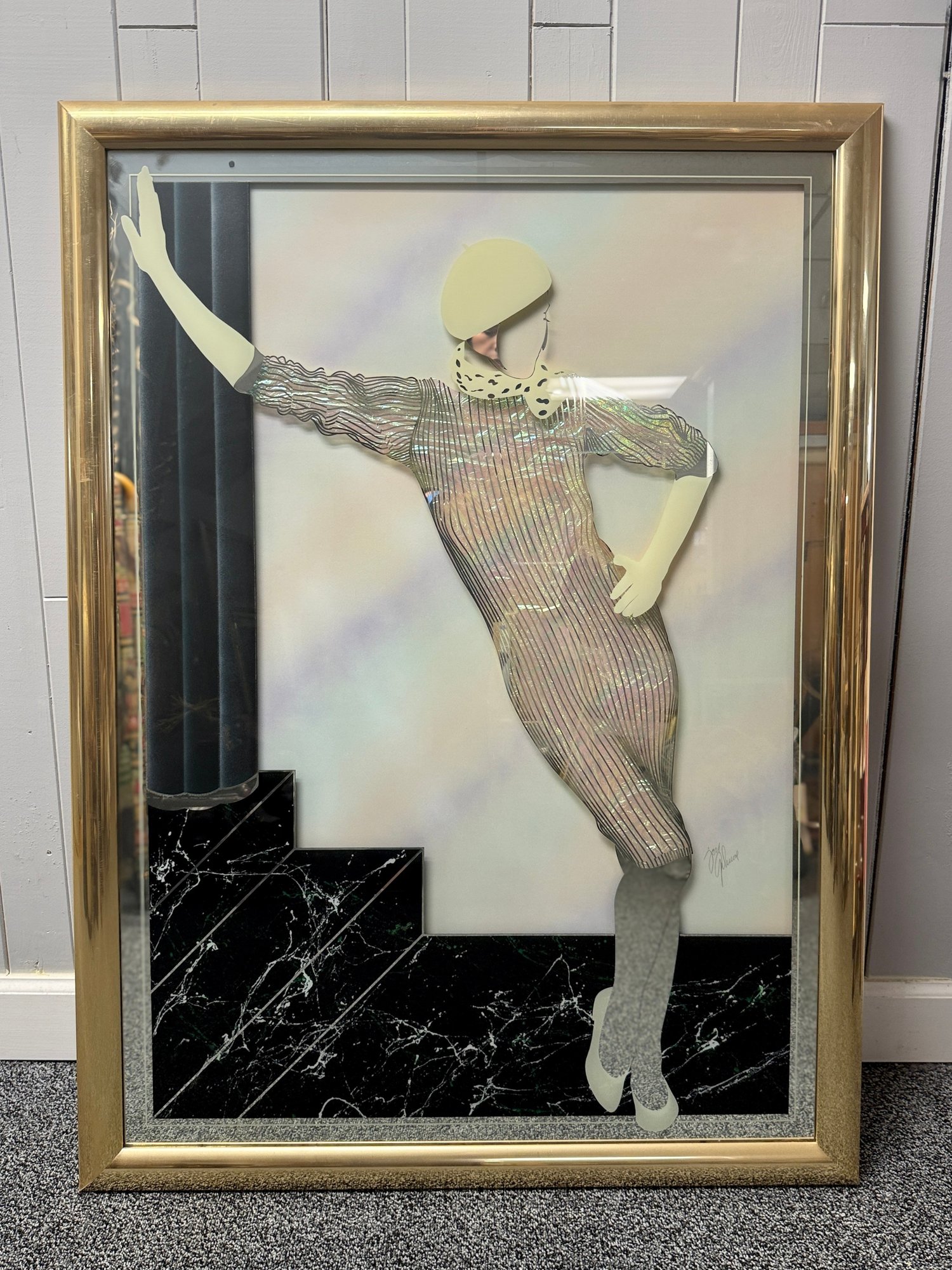 (P-3B) LARGE FRAMED VINTAGE JON GILMORE PRINT ART DECO LADY -MIRRORED MIXED MEDIA - 33" BY 45"