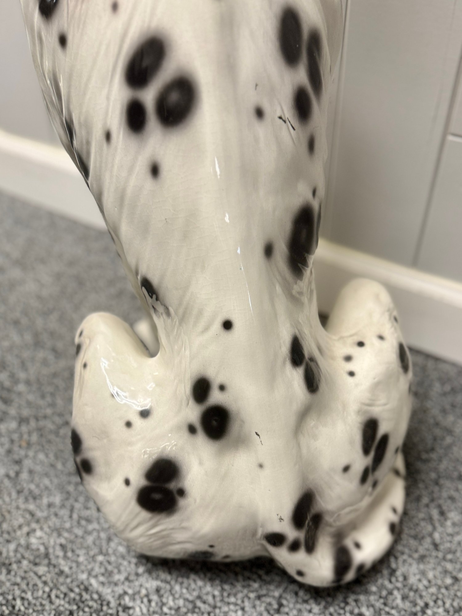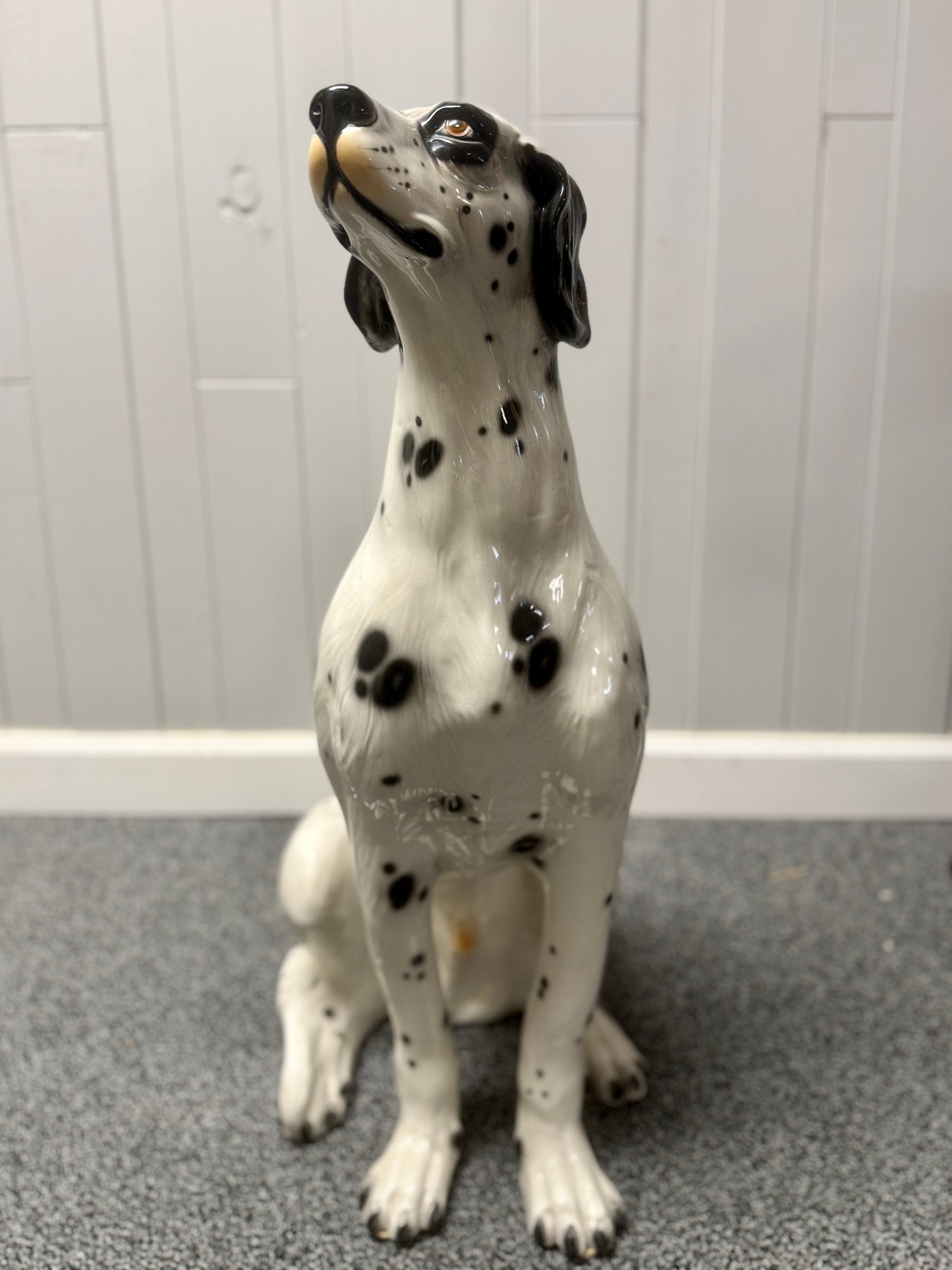 (P-40) VINTAGE, LIFE SIZE CERAMIC DALMATIAN DOG, PURCHASED IN FORTUNOFF - 34" H BY 20"