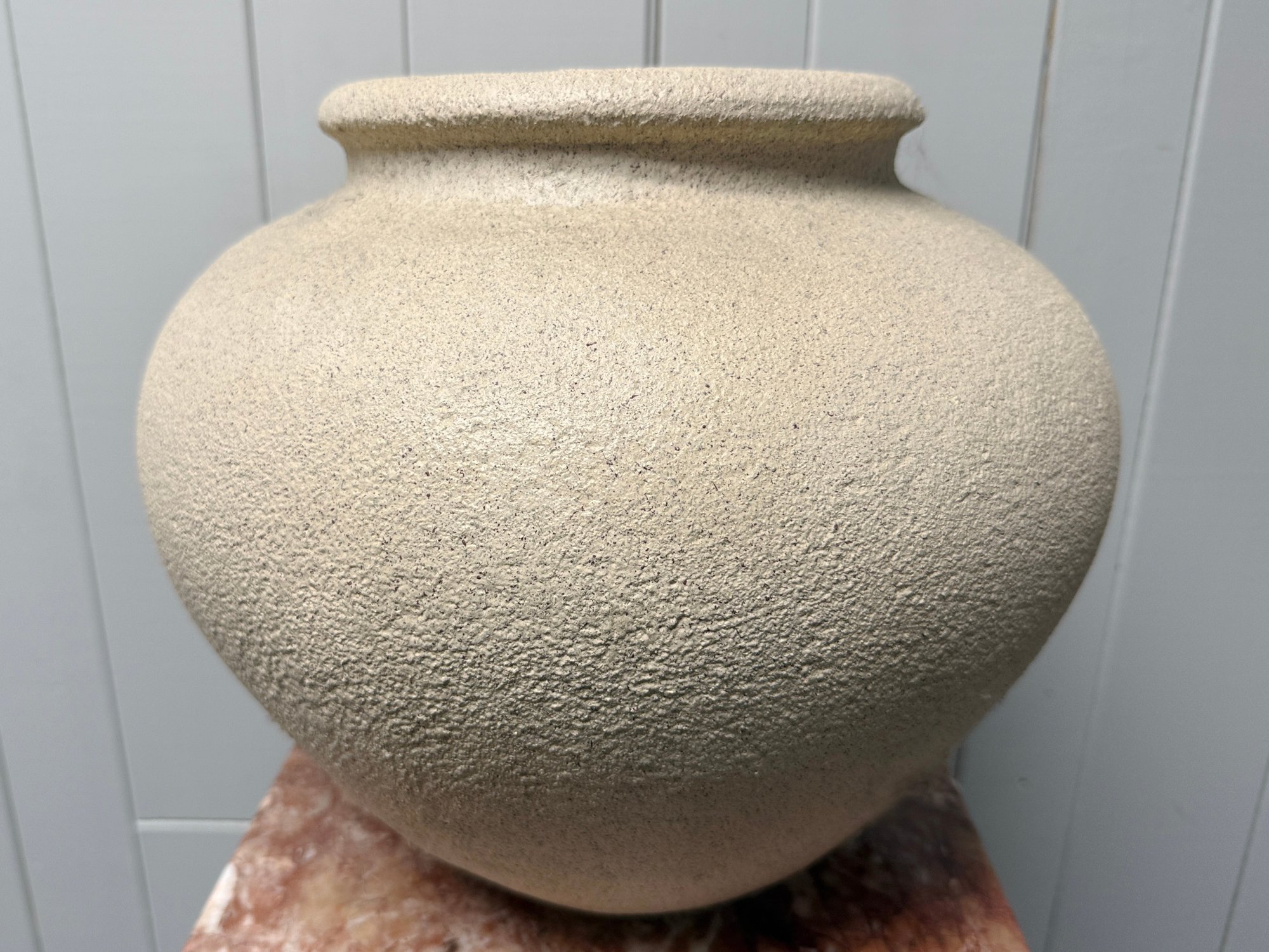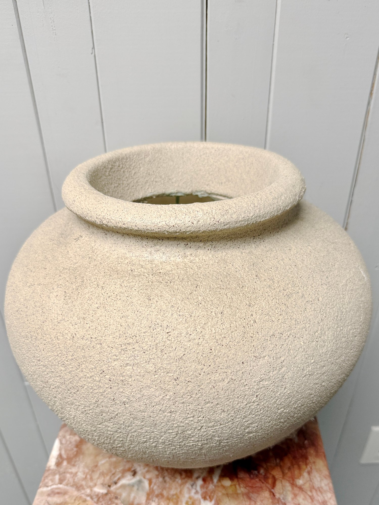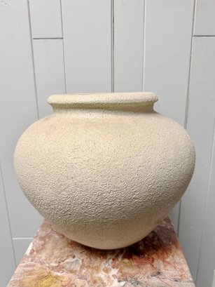 (P-69) FAB VINTAGE SQUAT CENTERPIECE VASE WITH STUCCO LIKE SURFACE - 14" BY 12"