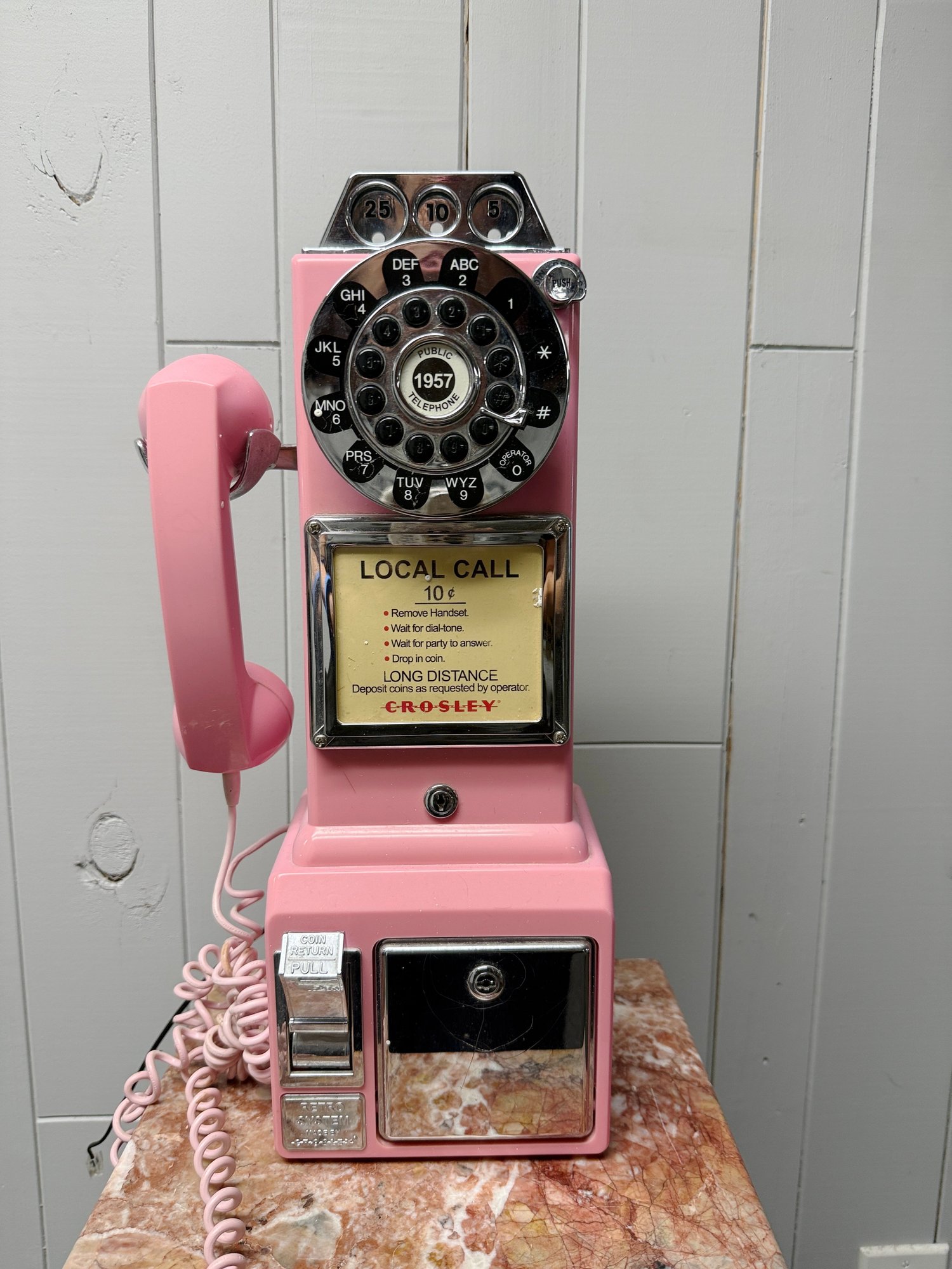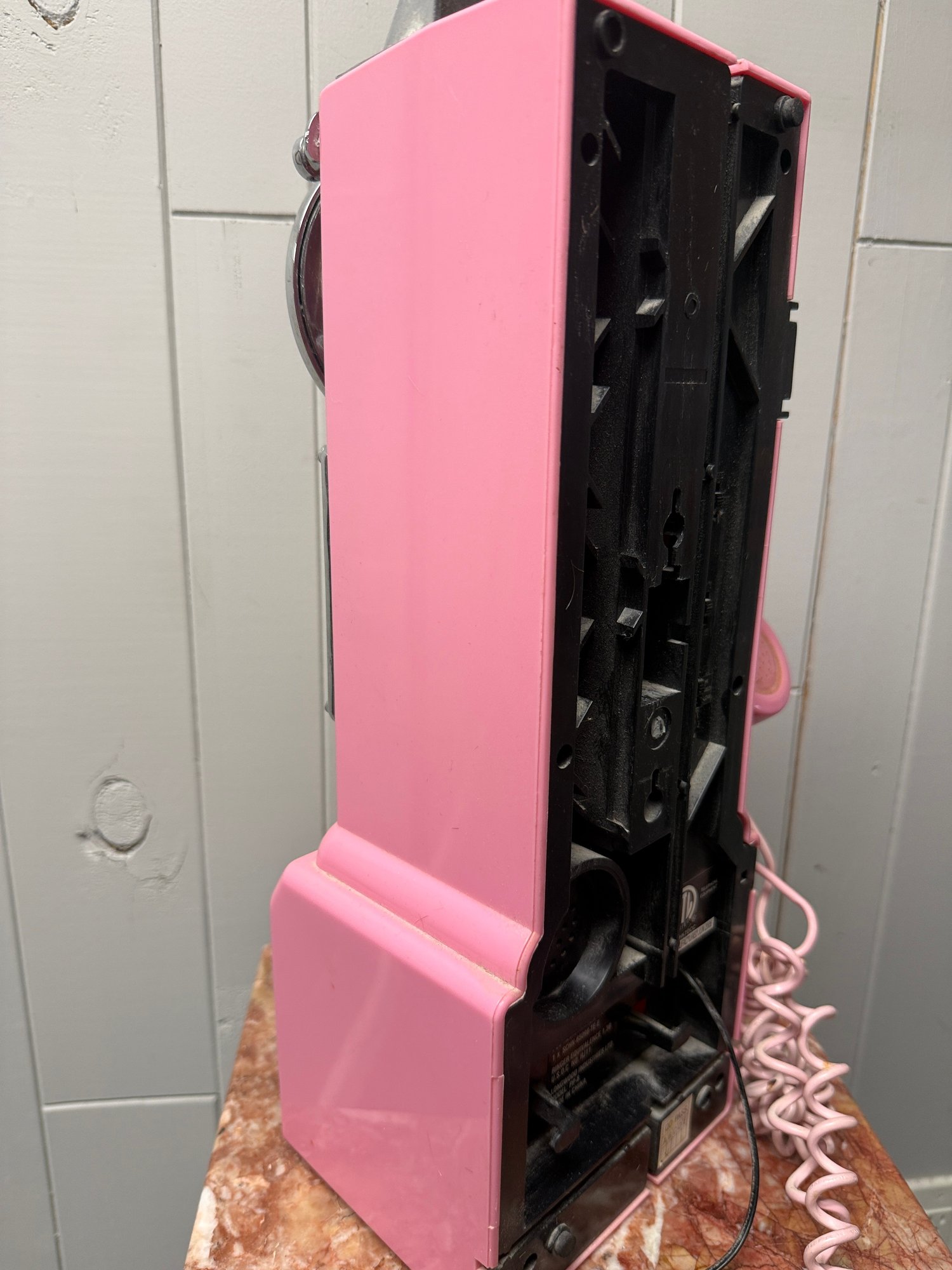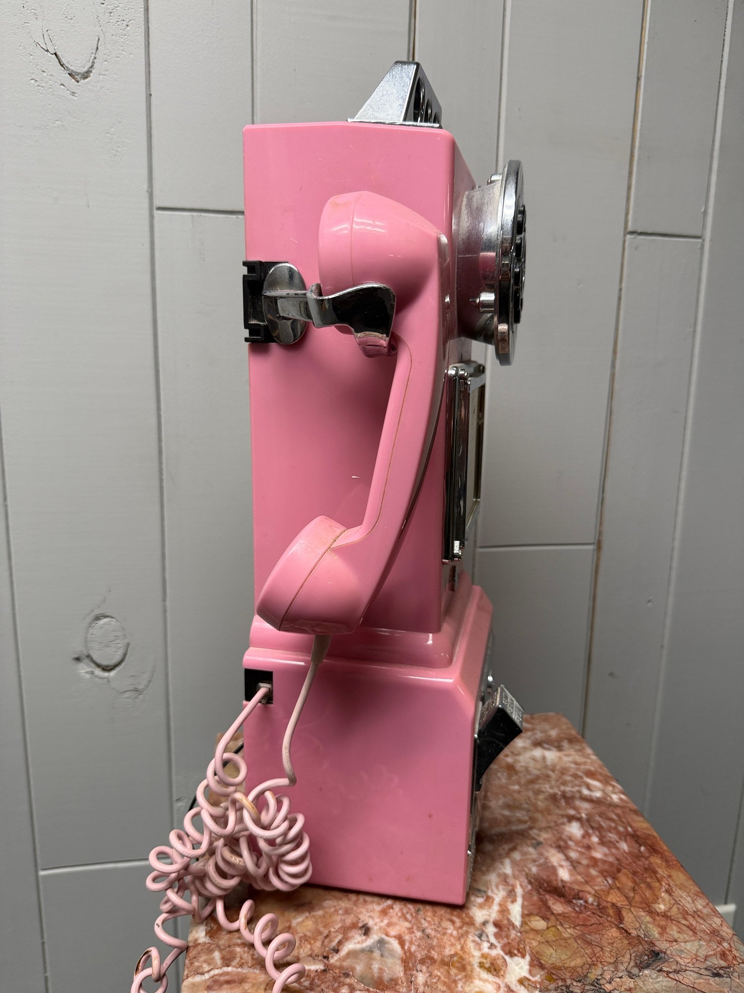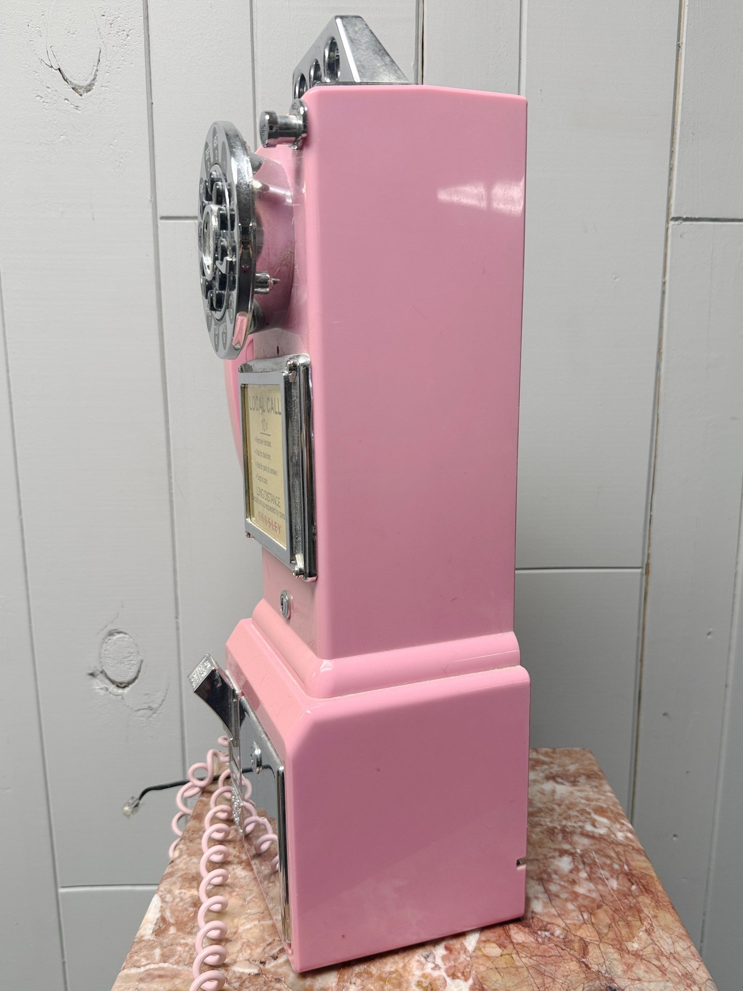 (P-70) VINTAGE CROSLEY PINK PLASTIC PAY PHONE - 19" BY 9"