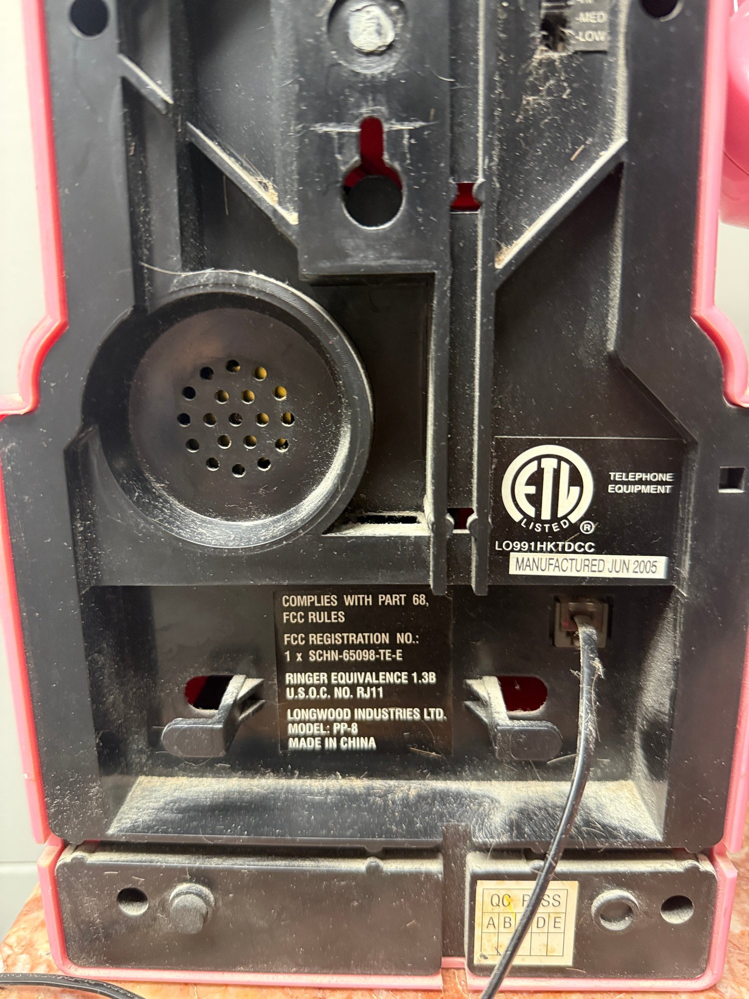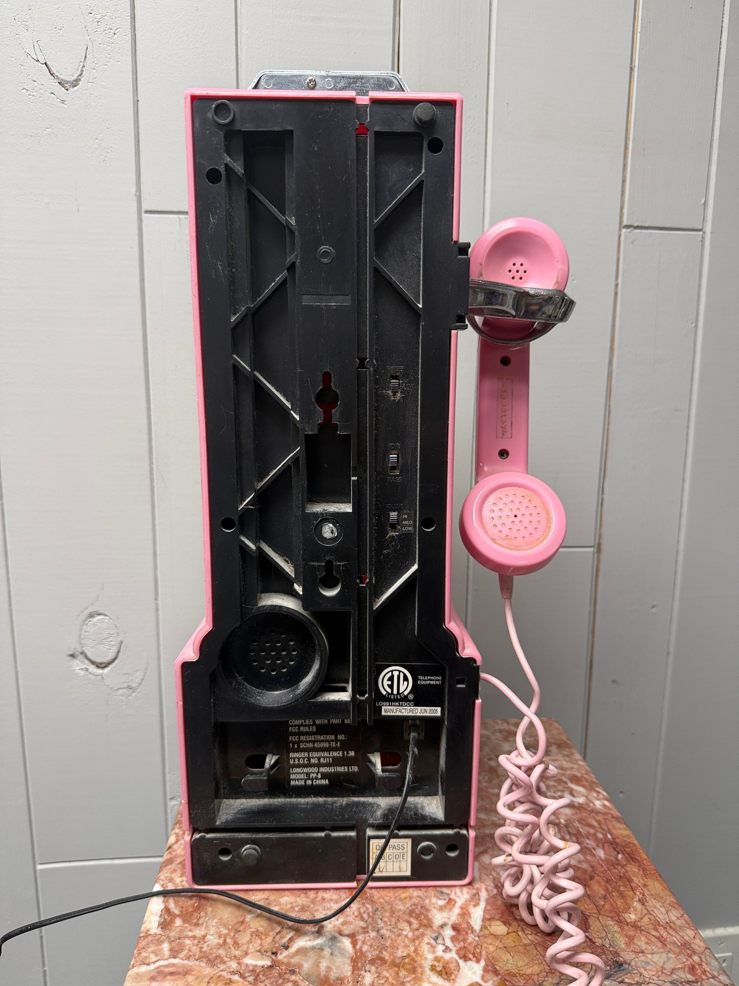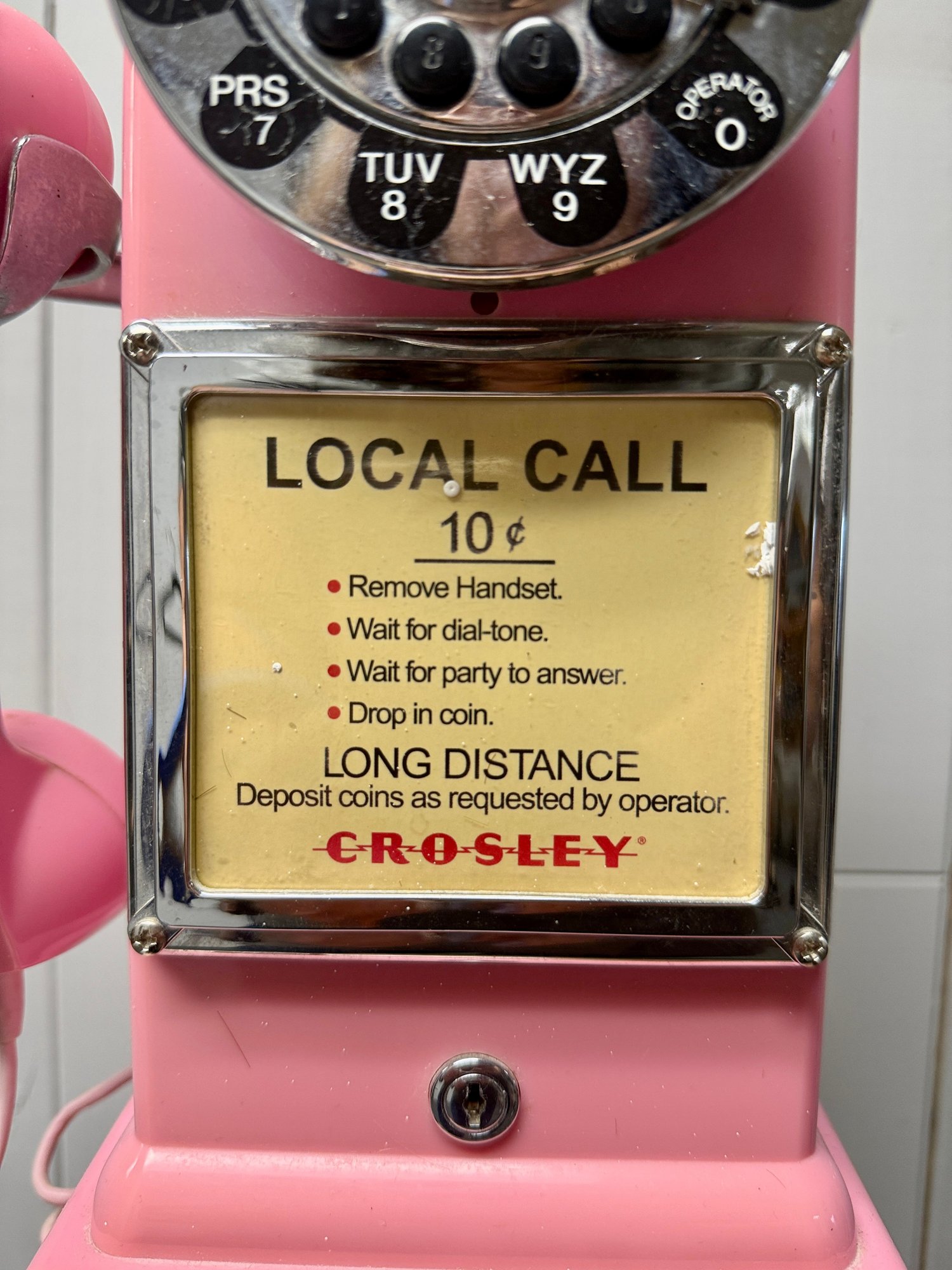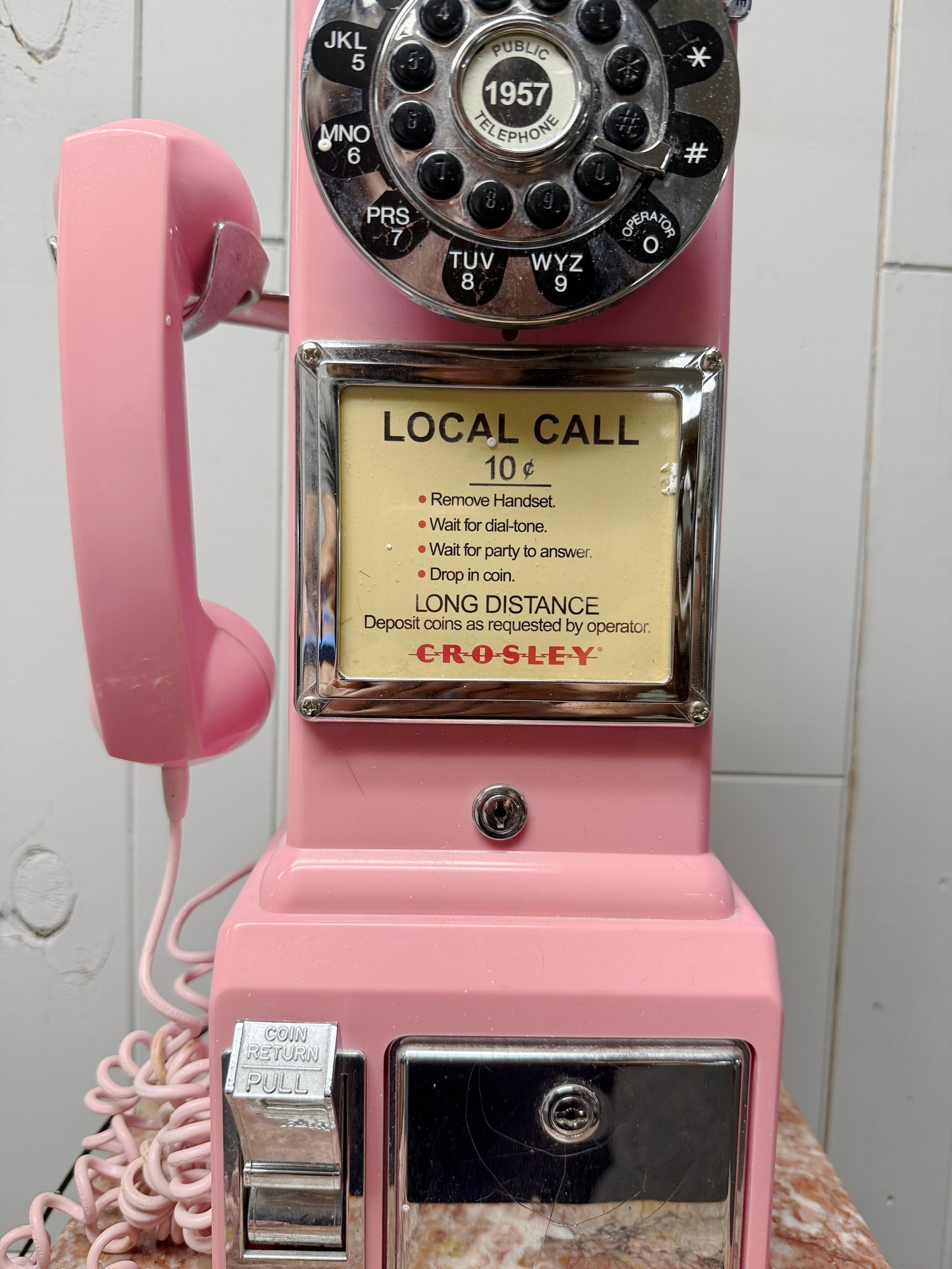 (P-70) VINTAGE CROSLEY PINK PLASTIC PAY PHONE - 19" BY 9"