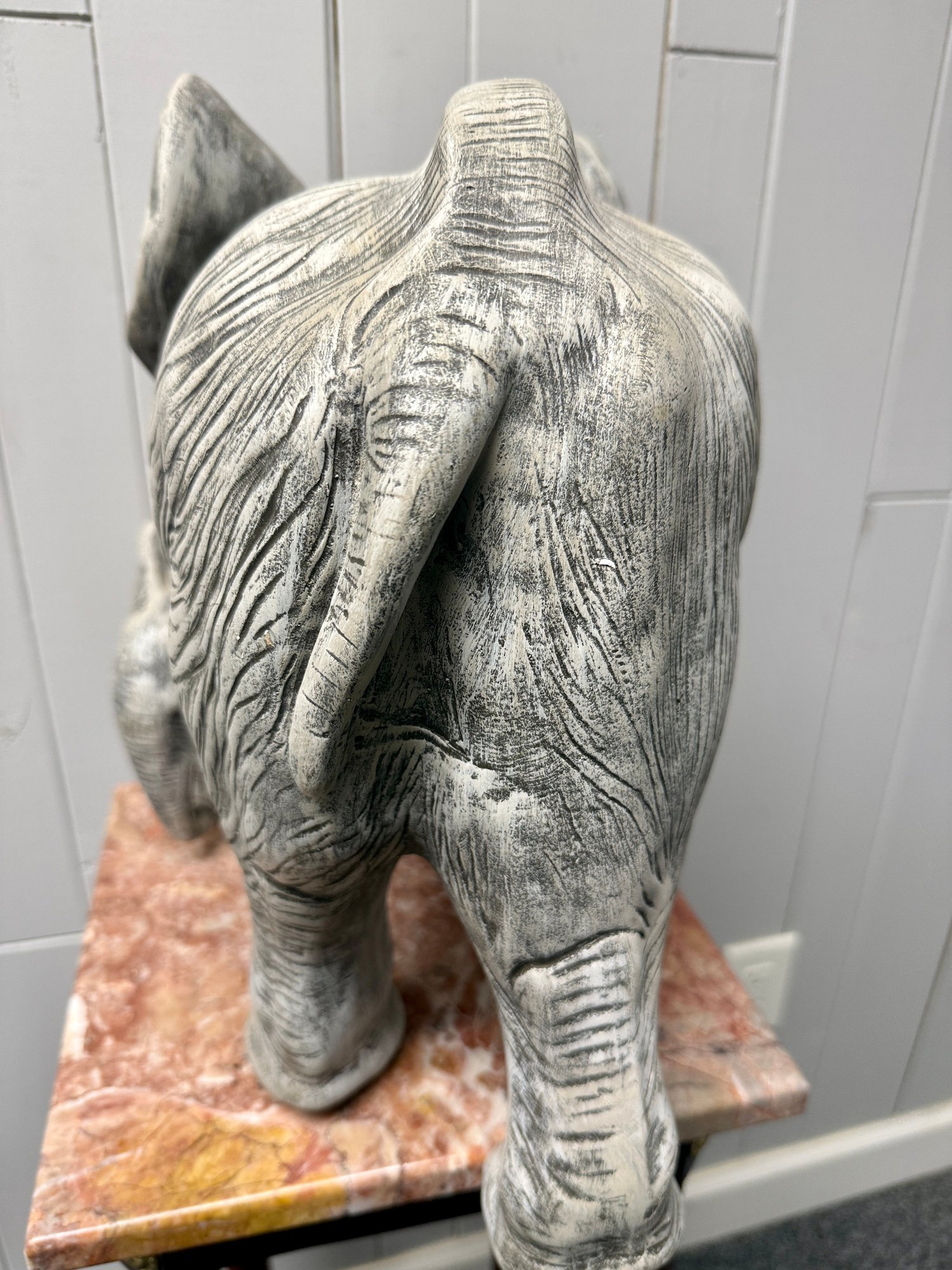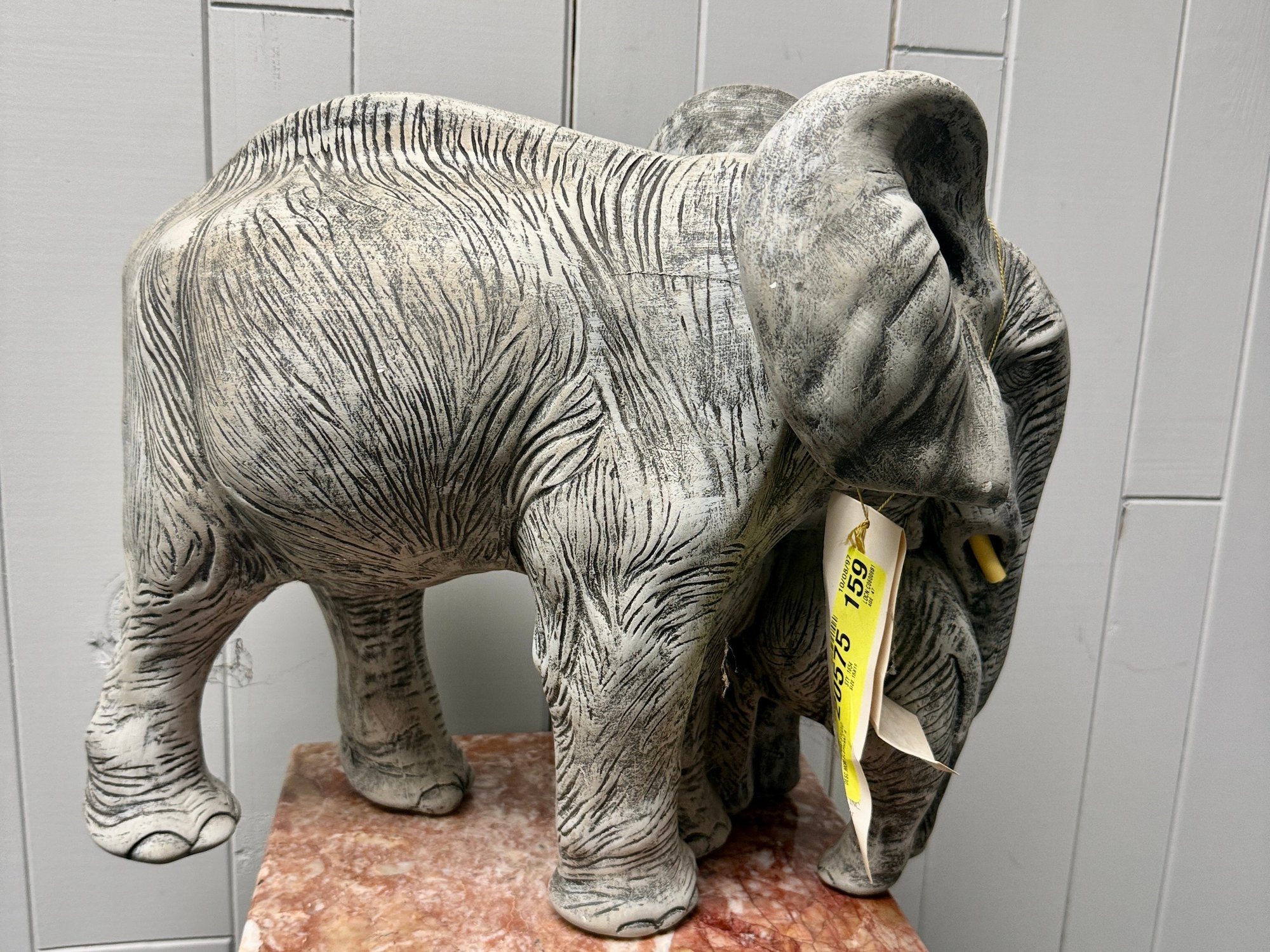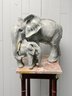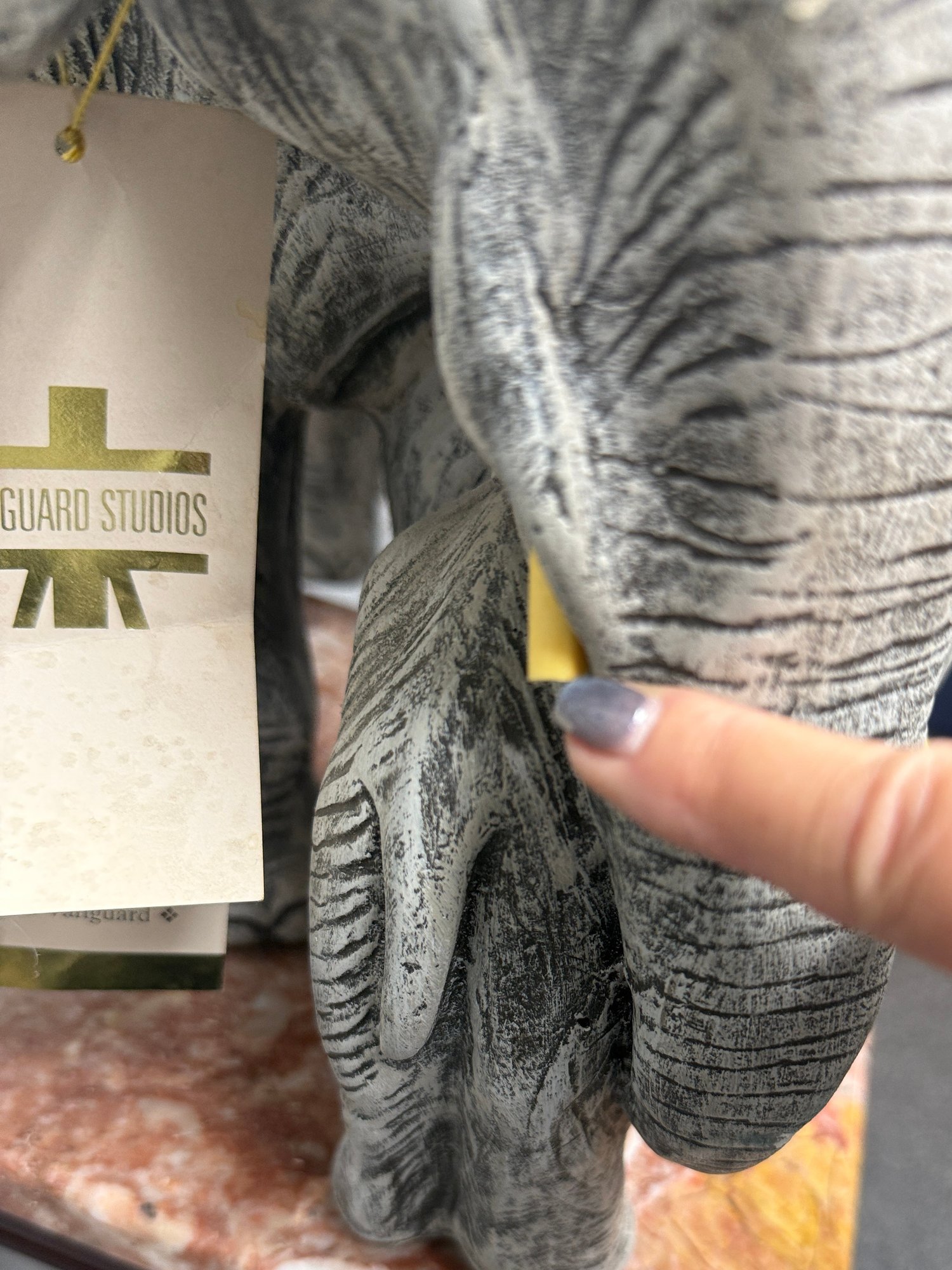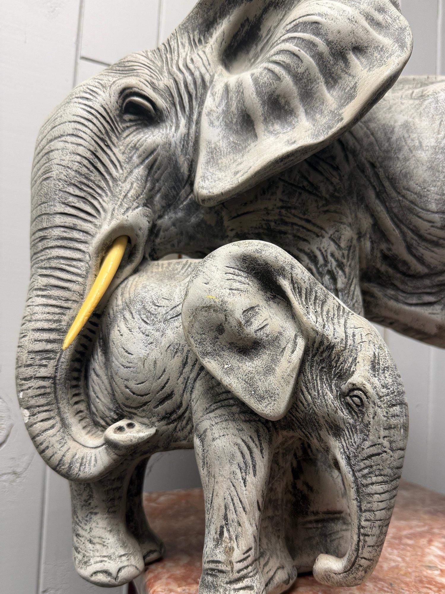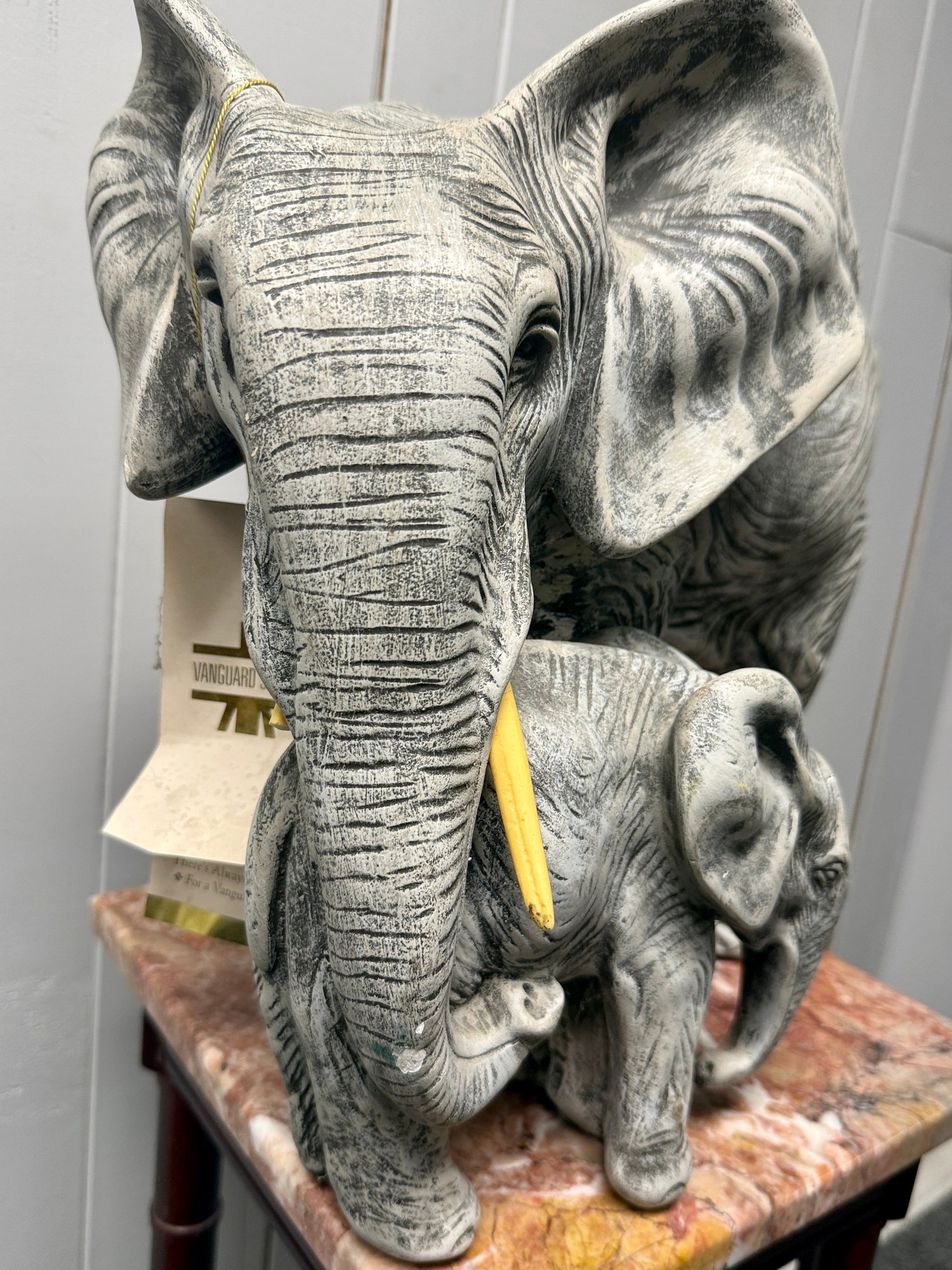 (P-71) VINTAGE MOTHER & CALF ELEPHANTS RESIN SCULPTURE BY VANGUARD STUDIOS - SEE BROKEN TUSK - 18" BY 16"