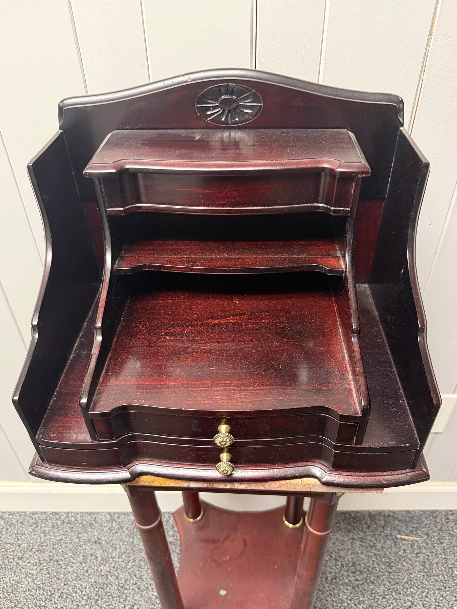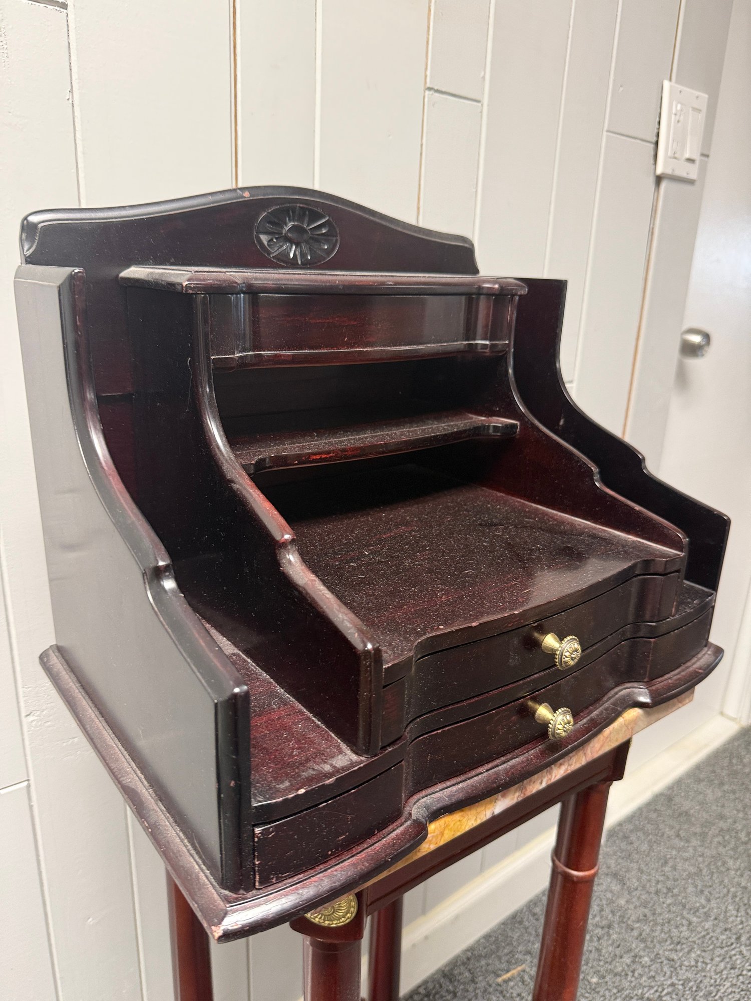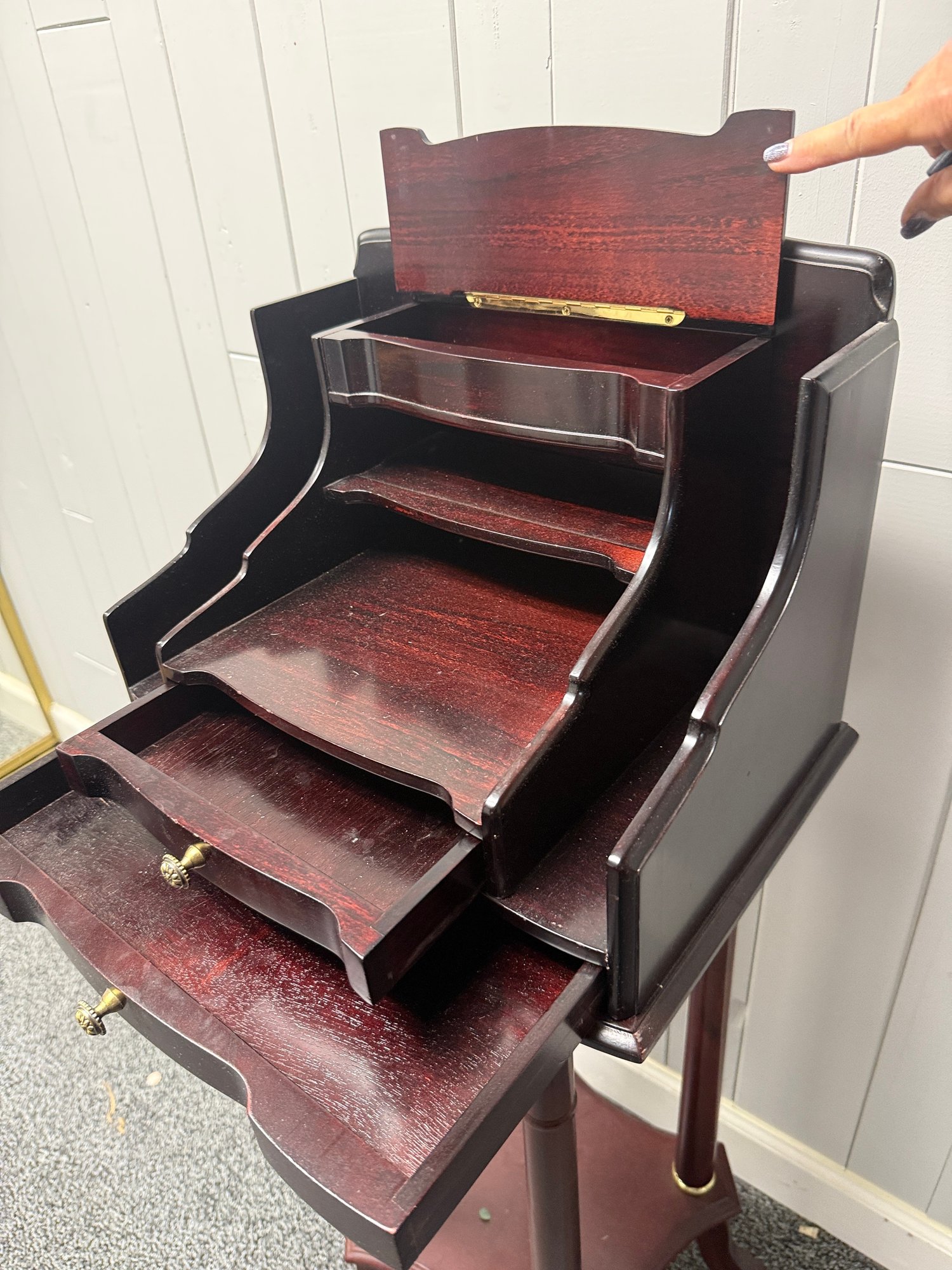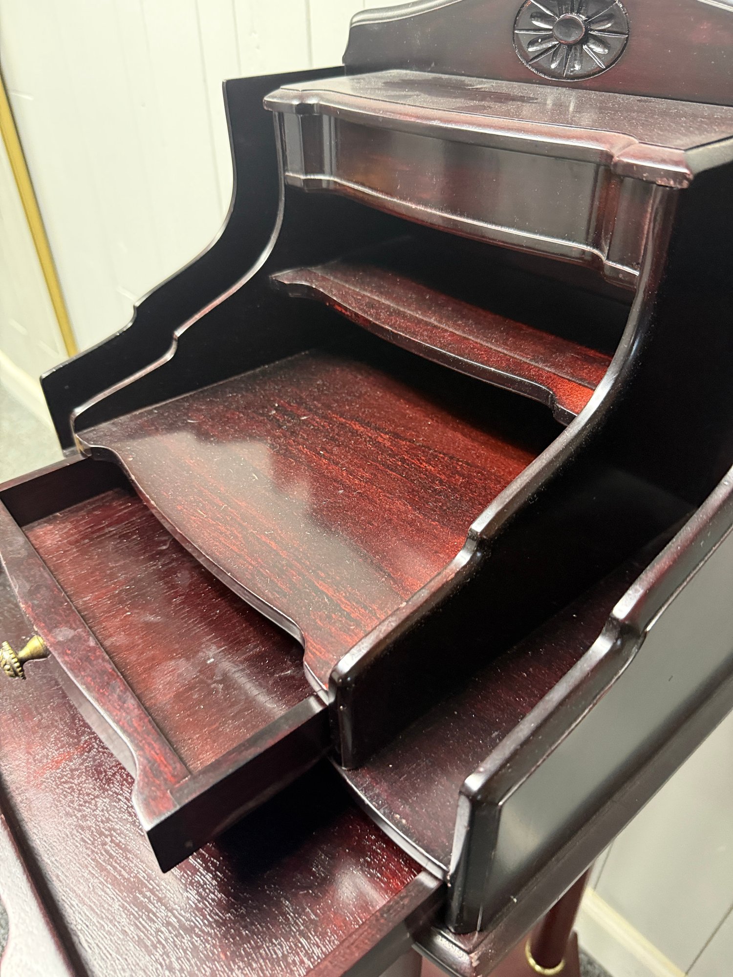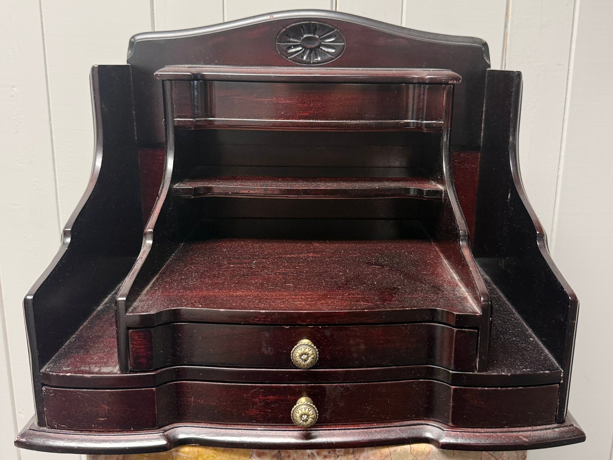 (P-75) VINTAGE WOOD DESK ORGANIZER WITH STORAGE - 16" BY 11"