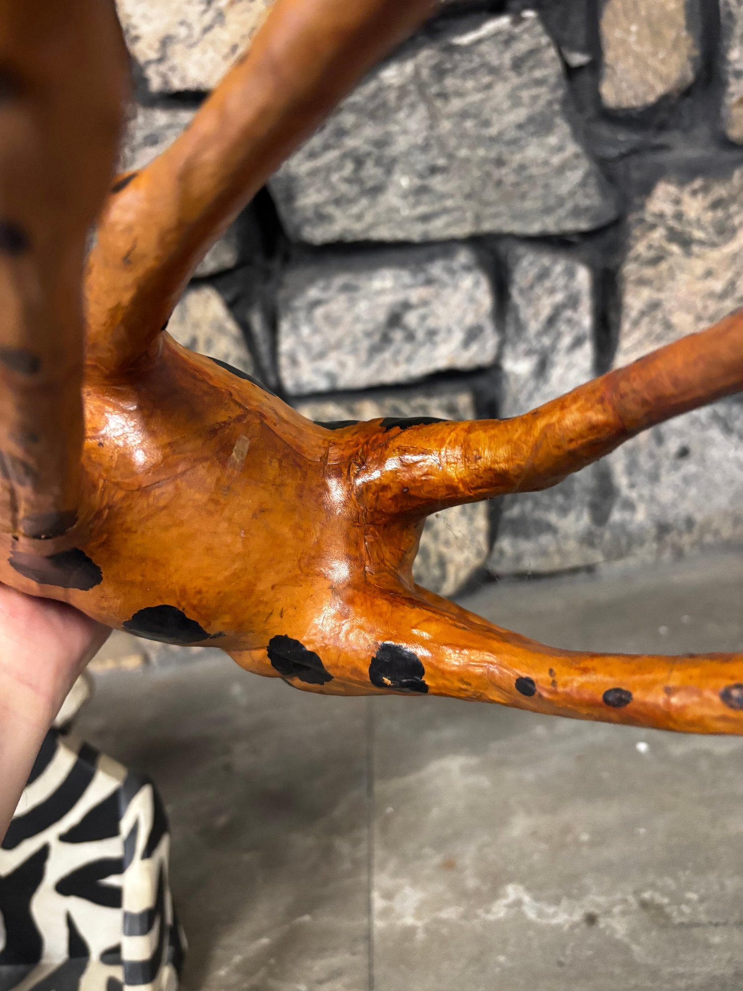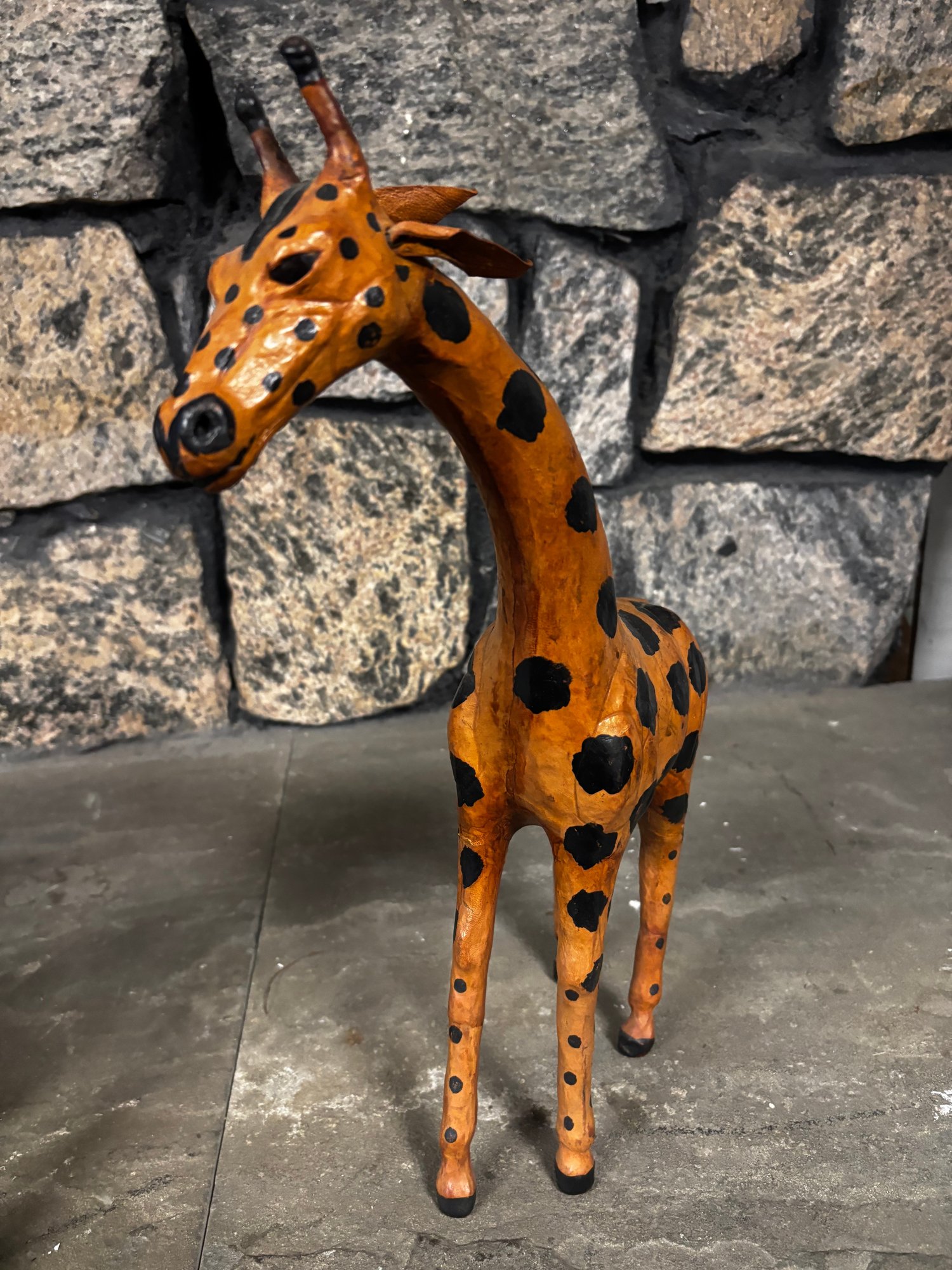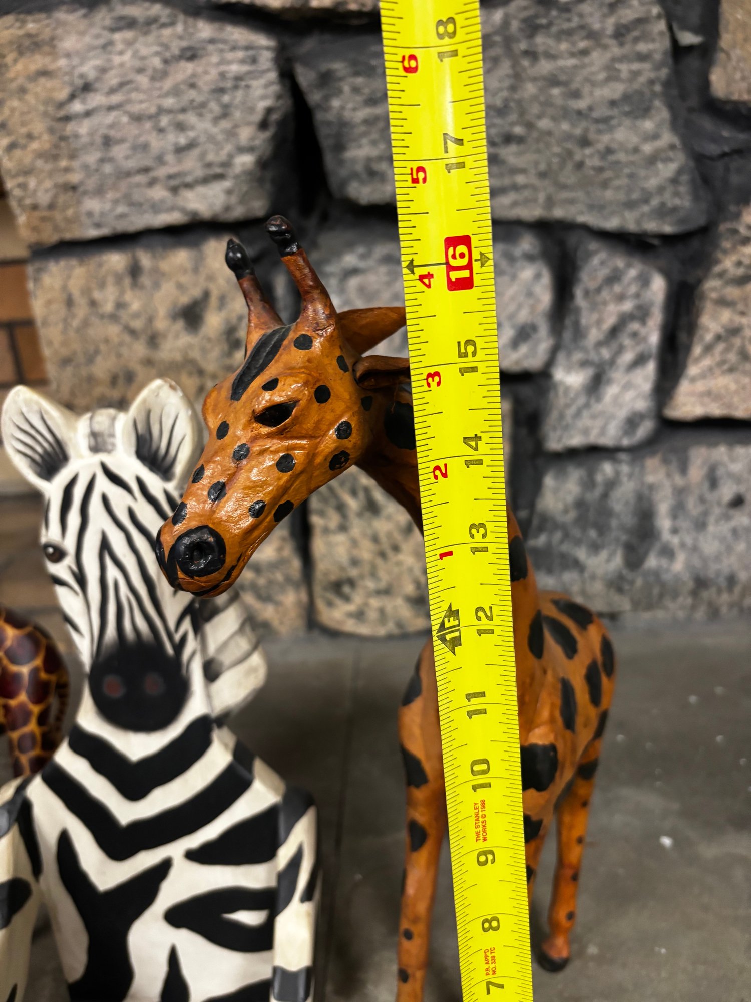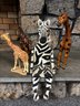(P-80) HERD OF ASSORTED JUNGLE ANIMAL SCULPTURES, 3 GIRAFFES & A ZEBRA - WOOD, PAPER MACHE & COMPOSITE