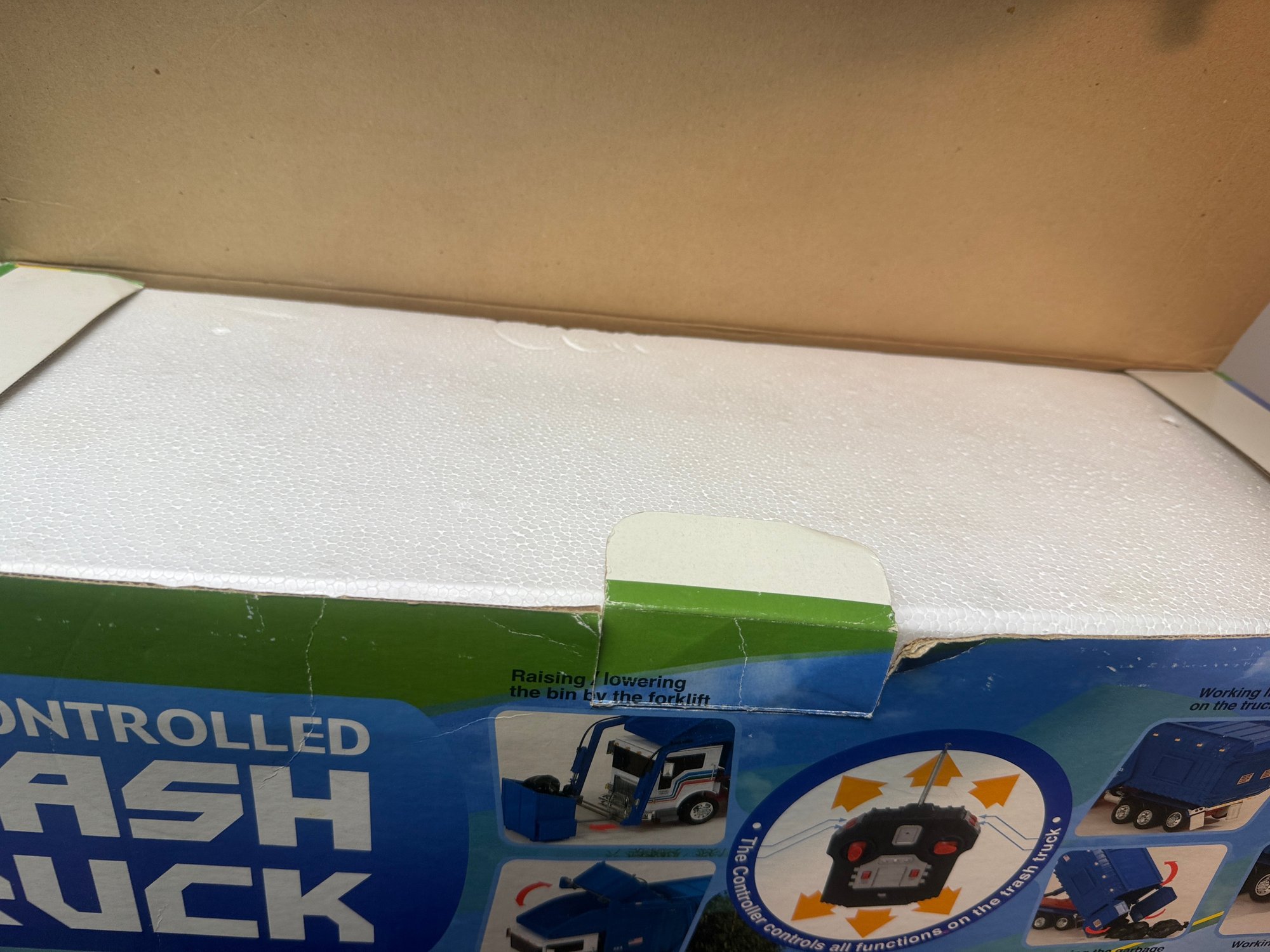 (P-97) NEW OLD STOCK IN BOX RADIO CONTROLLED TRASH TRUCK - GARBAGE TRUCK, MANNY TRASH TRUCKS