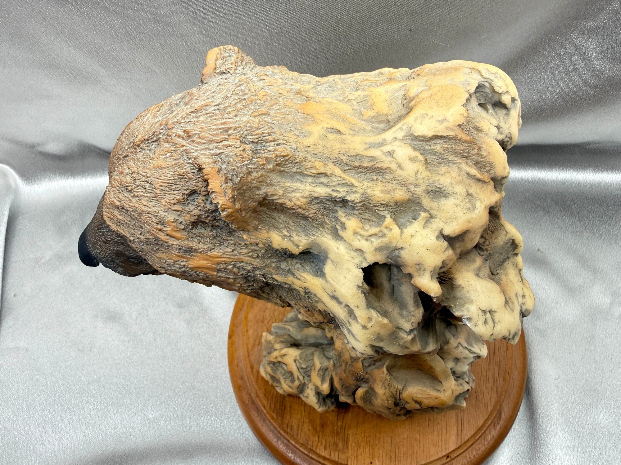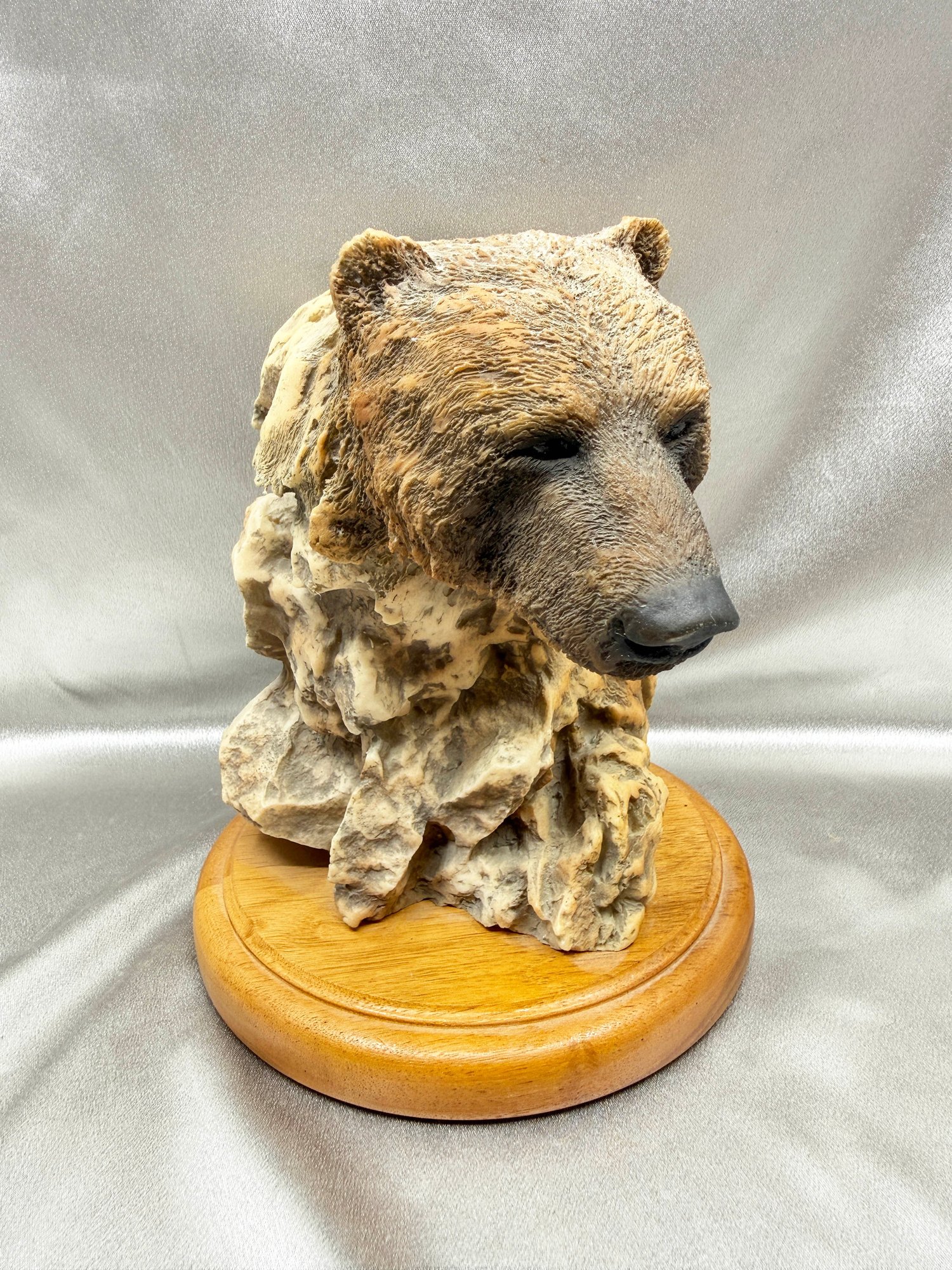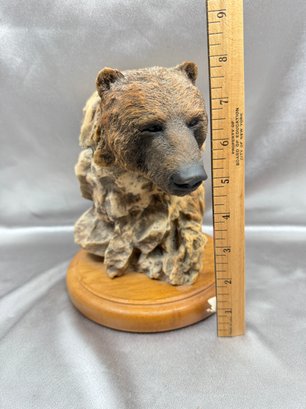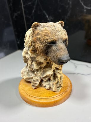 (A-13) VINTAGE CAST RESIN HAND PAINTED BUST GRIZZLY BEAR-SOUTHPAW-SIGNED RANDY READING