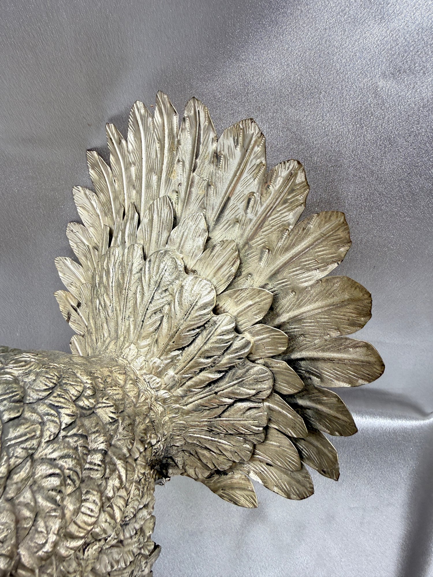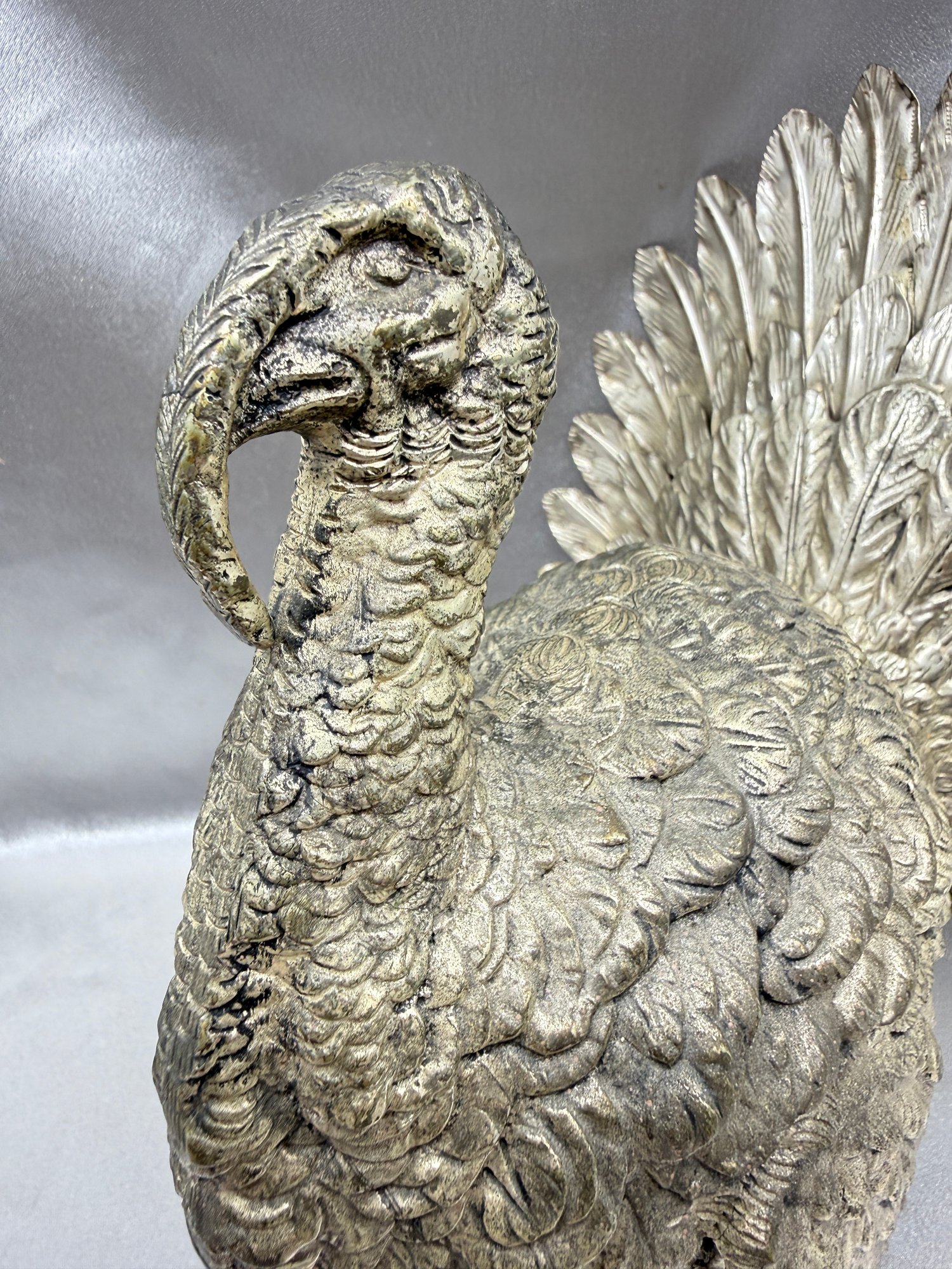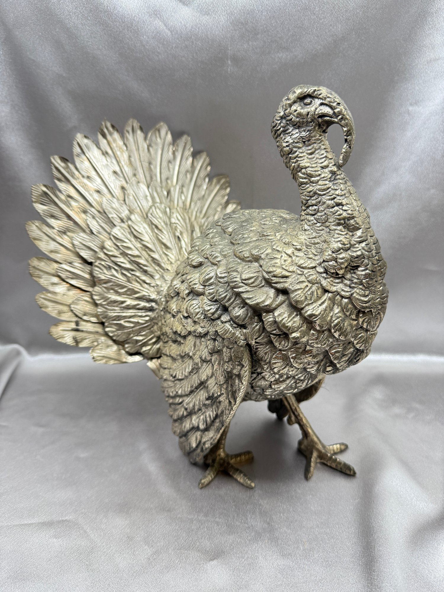 (A-14) VINTAGE SILVER PLATE PEWTER TURKEY SCULPTURE - APPROX. 11" T X 10" W - MADE IN ITALY