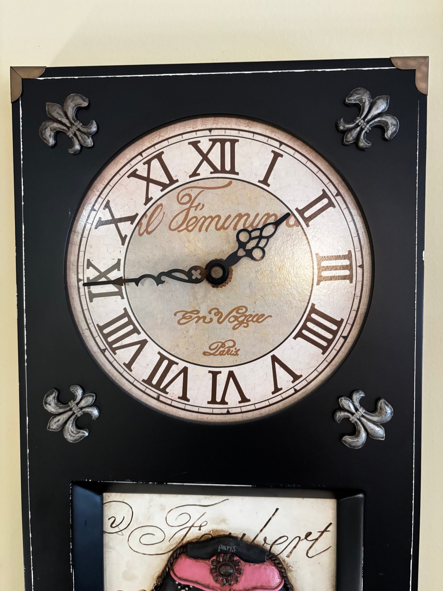 (A-193) BATTERY OPERATED WALL CLOCK WITH FLEUR DE LIS DETAIL - 18" BY 9"