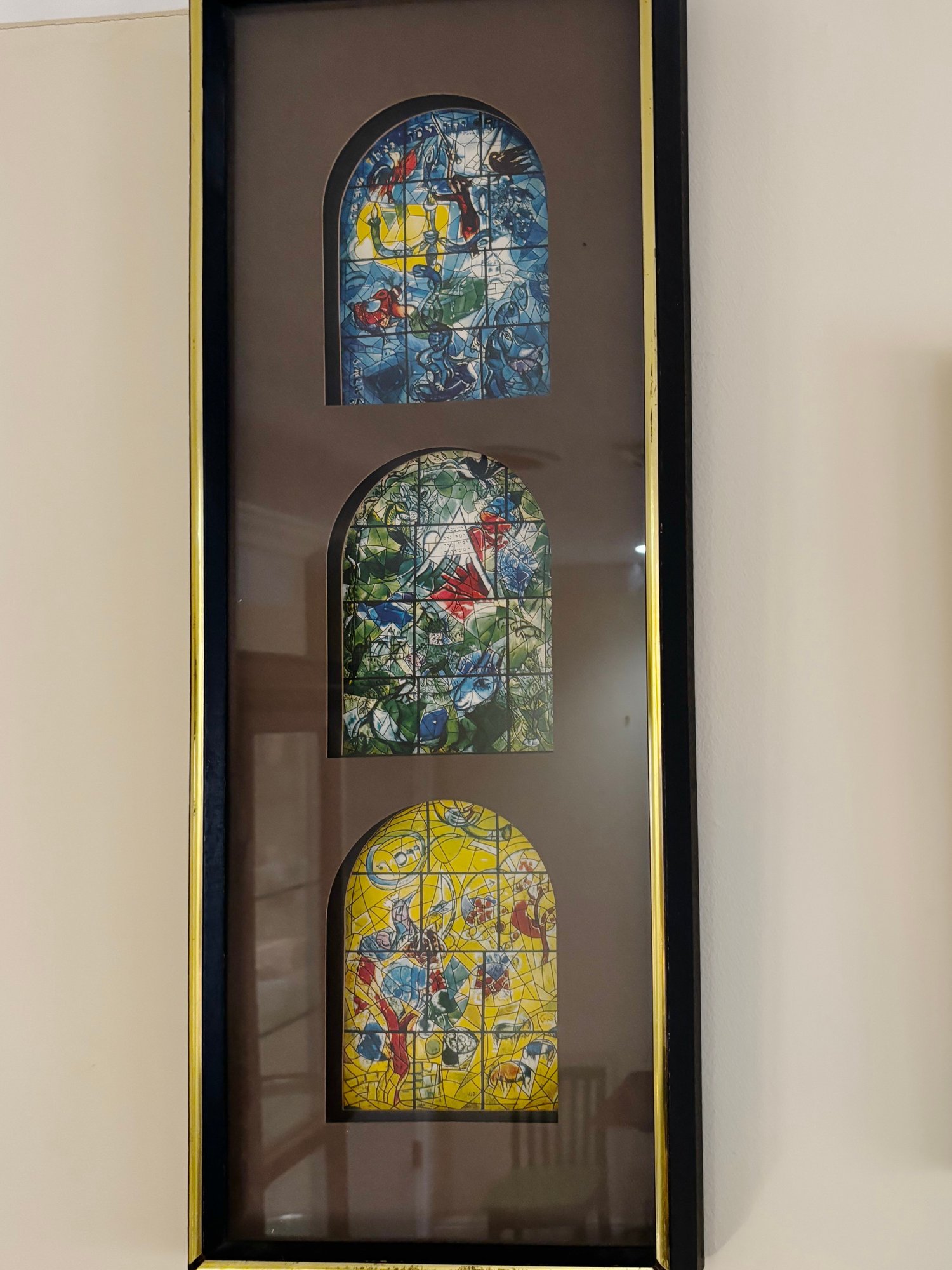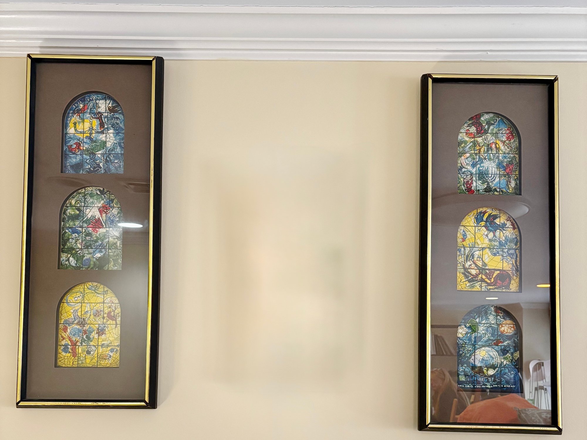 (A-194) PAIR OF VINTAGE MARC CHAGALL WINDOWS PRINTS - FRAMED- 29" BY 11"