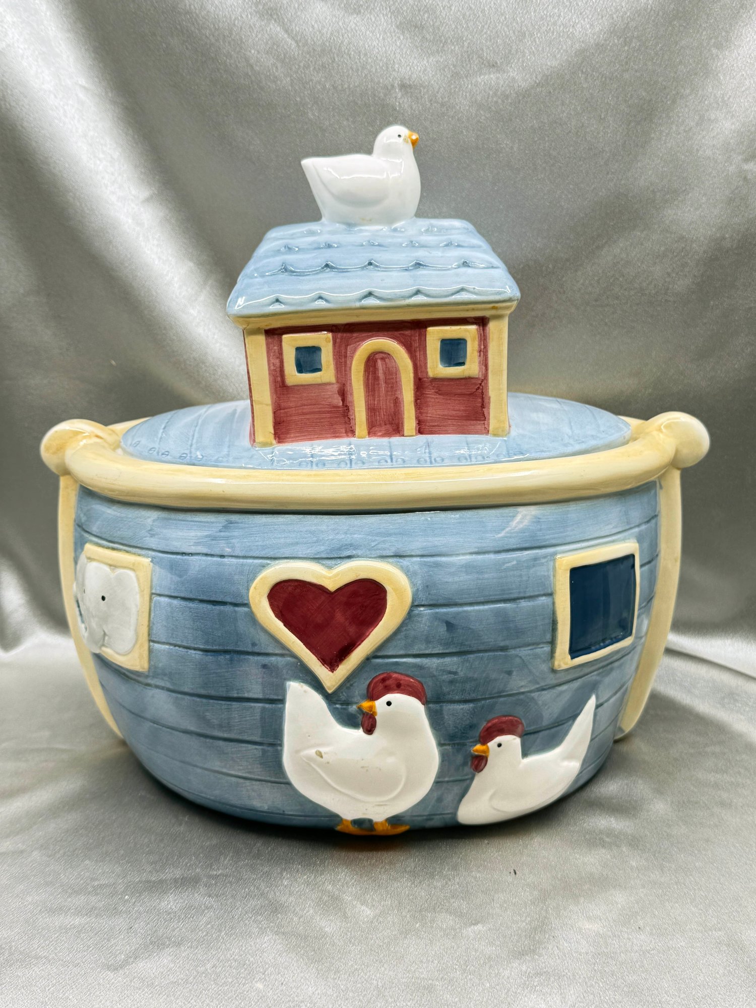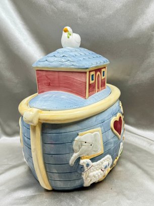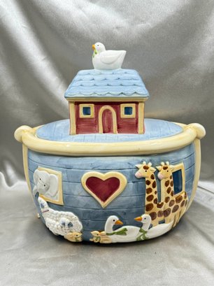 (A-22) VINTAGE CERAMIC HAND PAINTED CERTIFIED INTERNATIONAL SUSAN WINGET NOAH'S ARK-COOKIE JAR-11 1/2" X 11" X 7" APPROX.