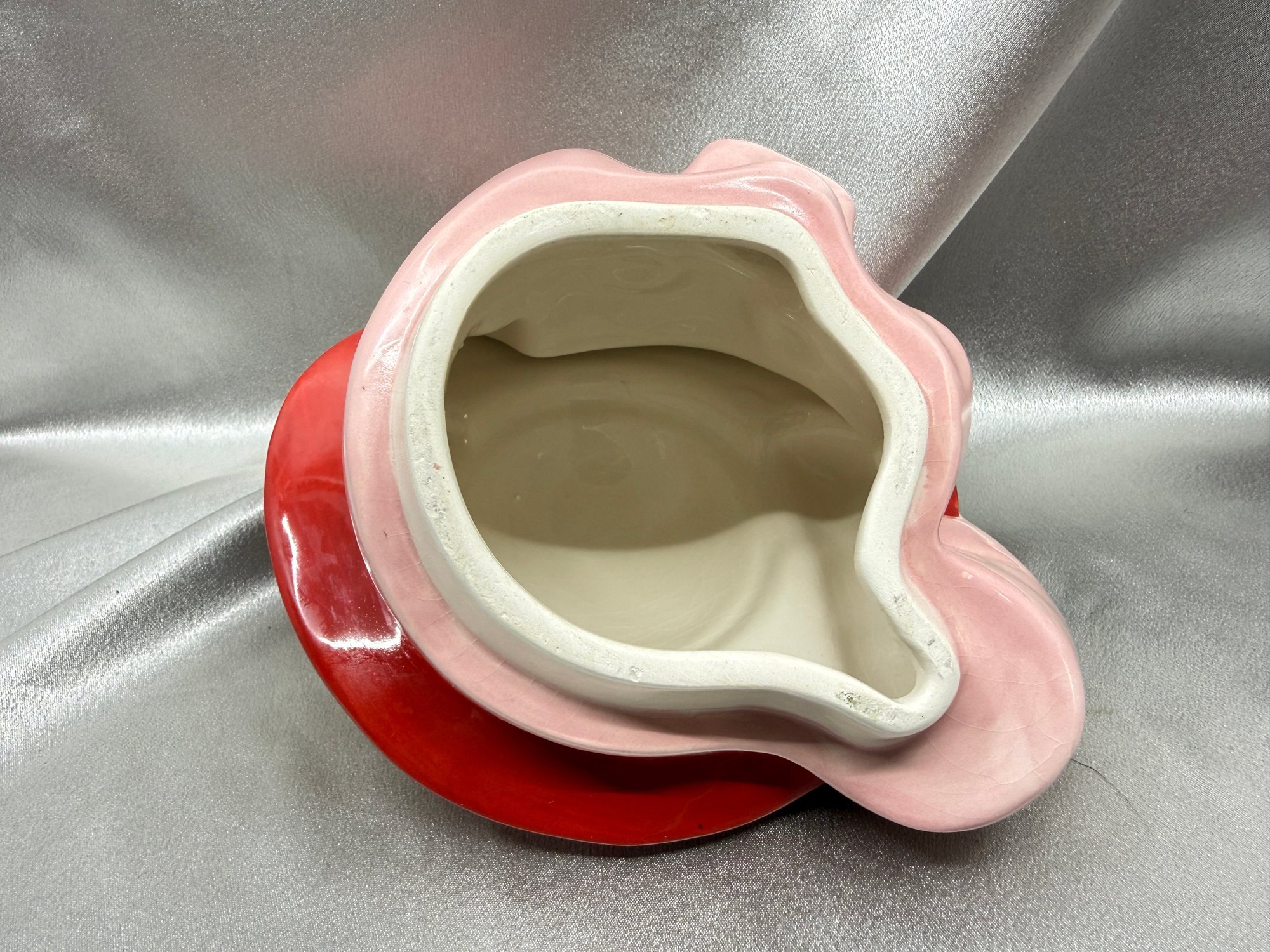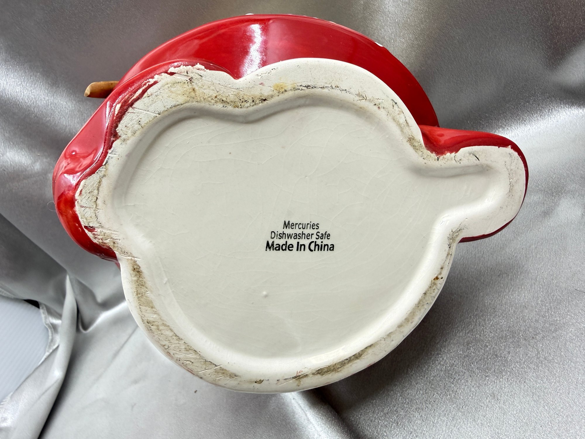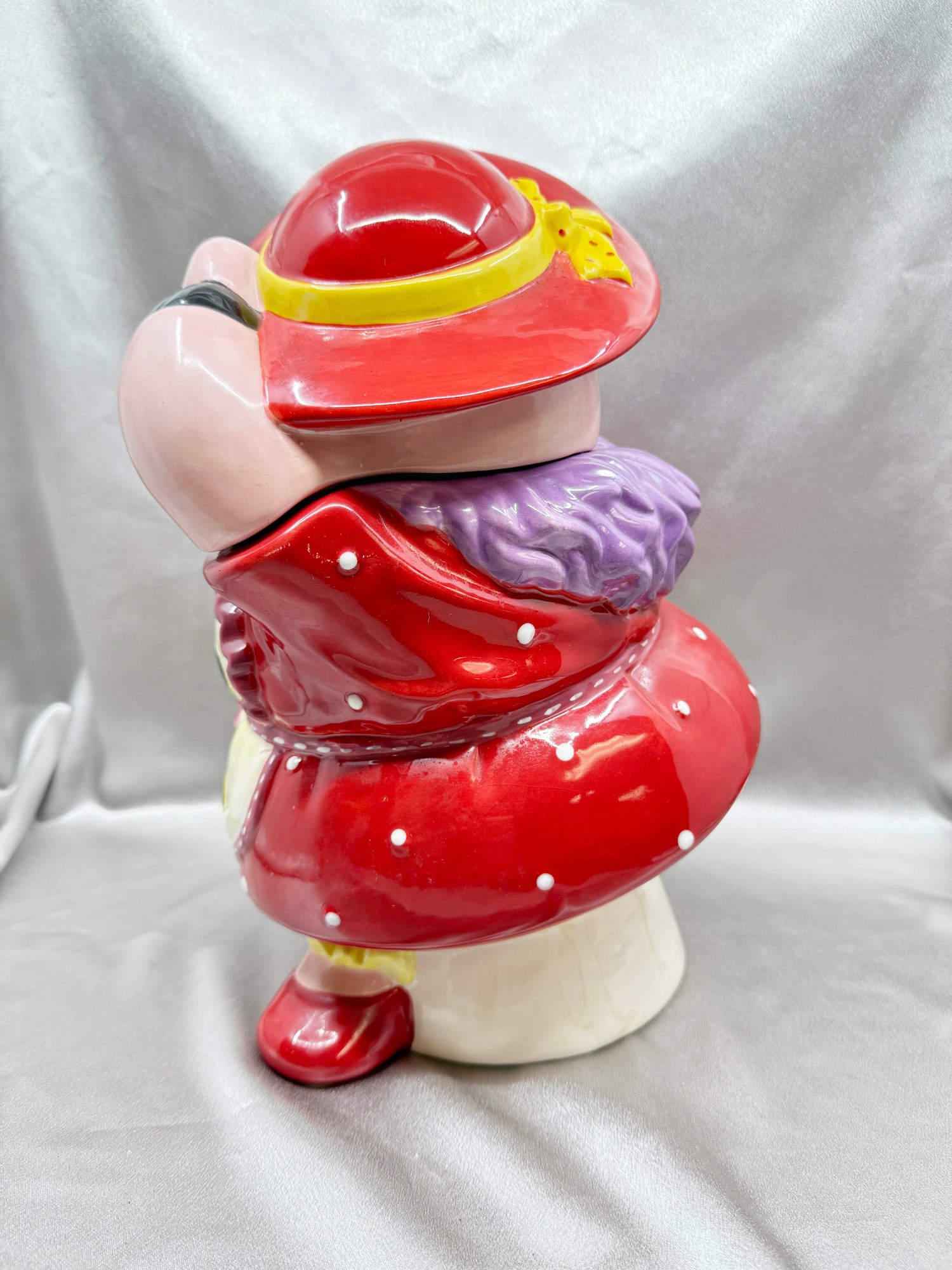 (A-23) VINTAGE CERAMIC HAND PAINTED "KITCHEN DIVA" PIG THEMED COOKIE JAR W/WOODEN SPOON-12 1/2" X 8"-MERCURIES