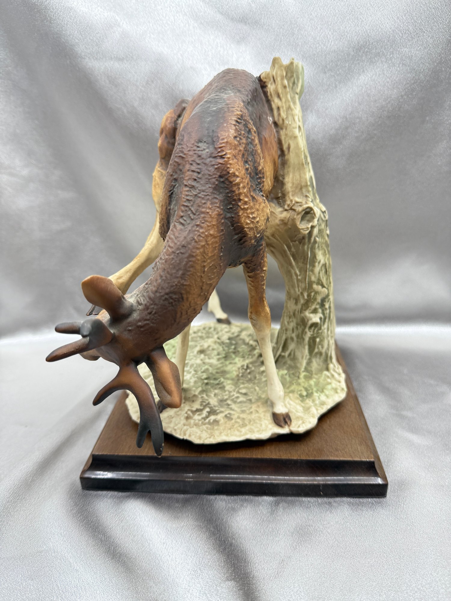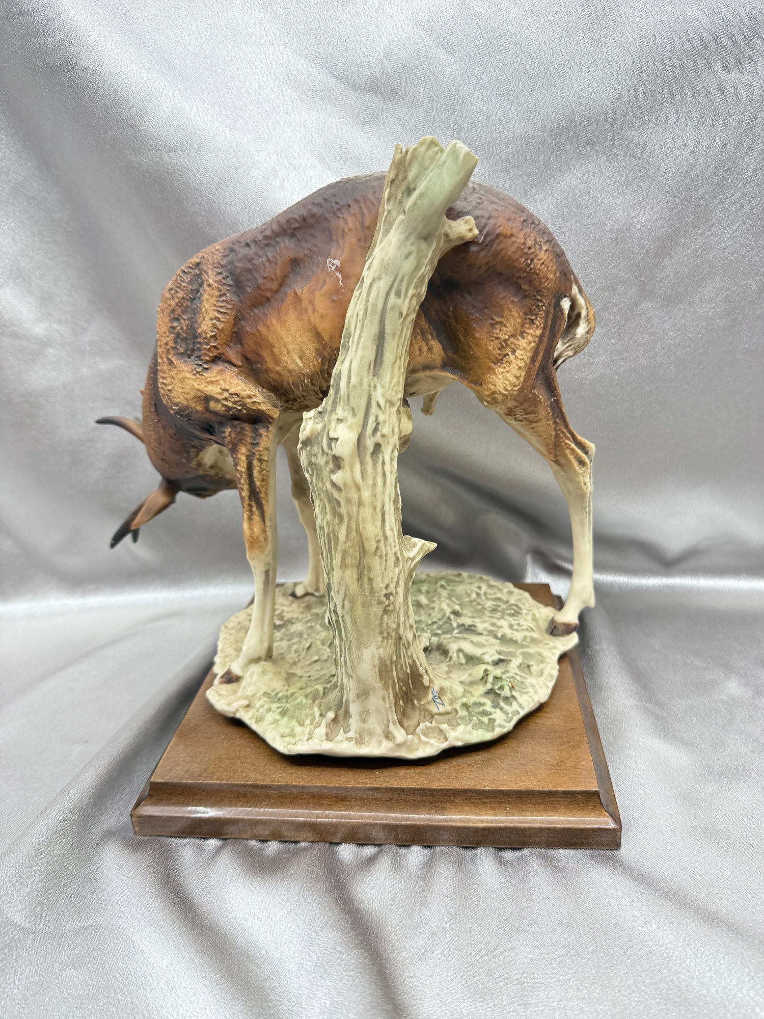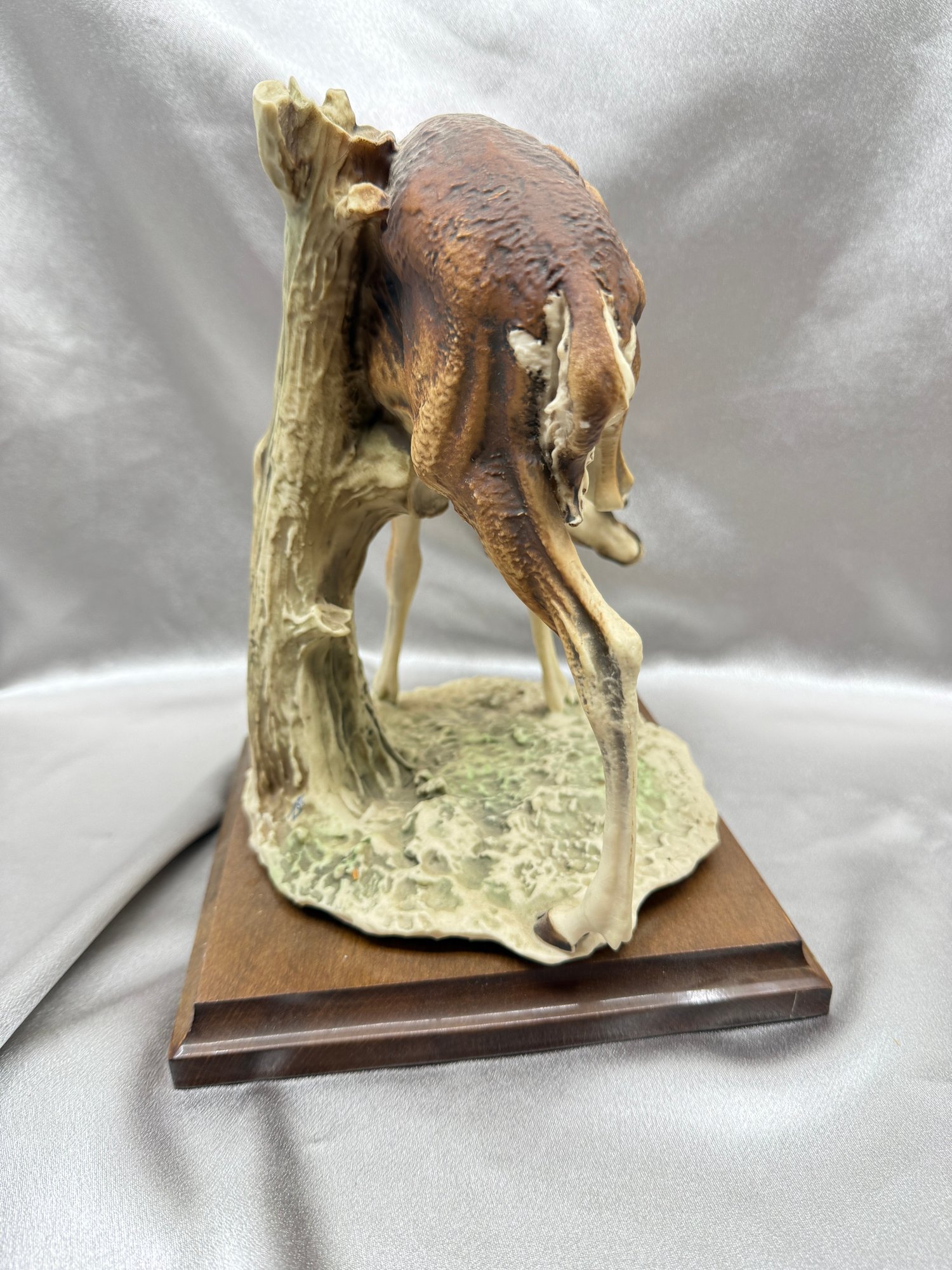 (A-3) VINTAGE SIGNED RESIN & WOOD SCULPTURE-GIUSEPPE ARMANI-"FALLOW DEER"