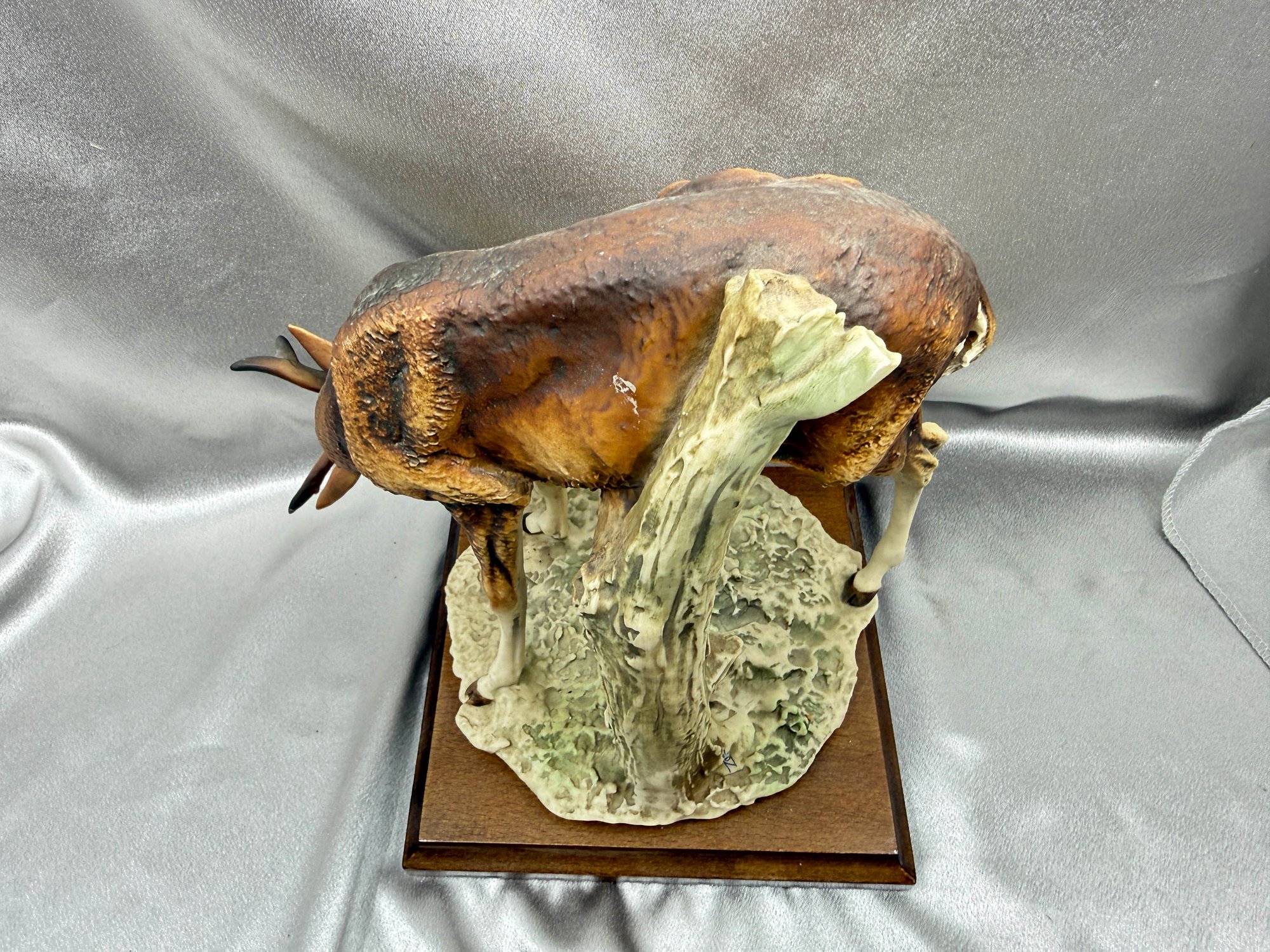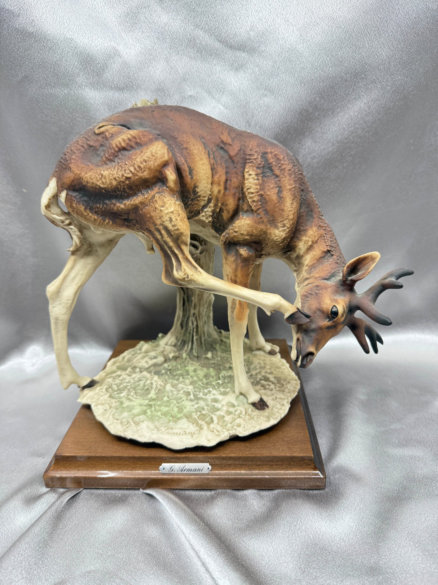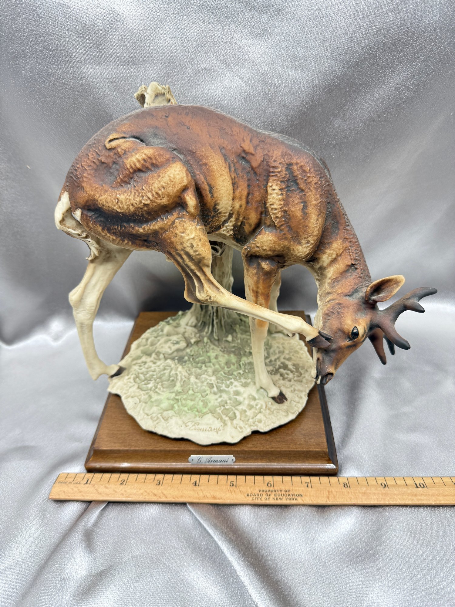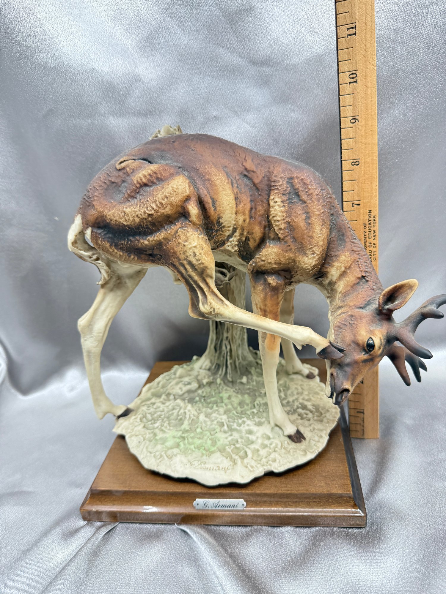 (A-3) VINTAGE SIGNED RESIN & WOOD SCULPTURE-GIUSEPPE ARMANI-"FALLOW DEER"