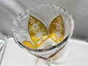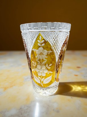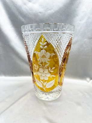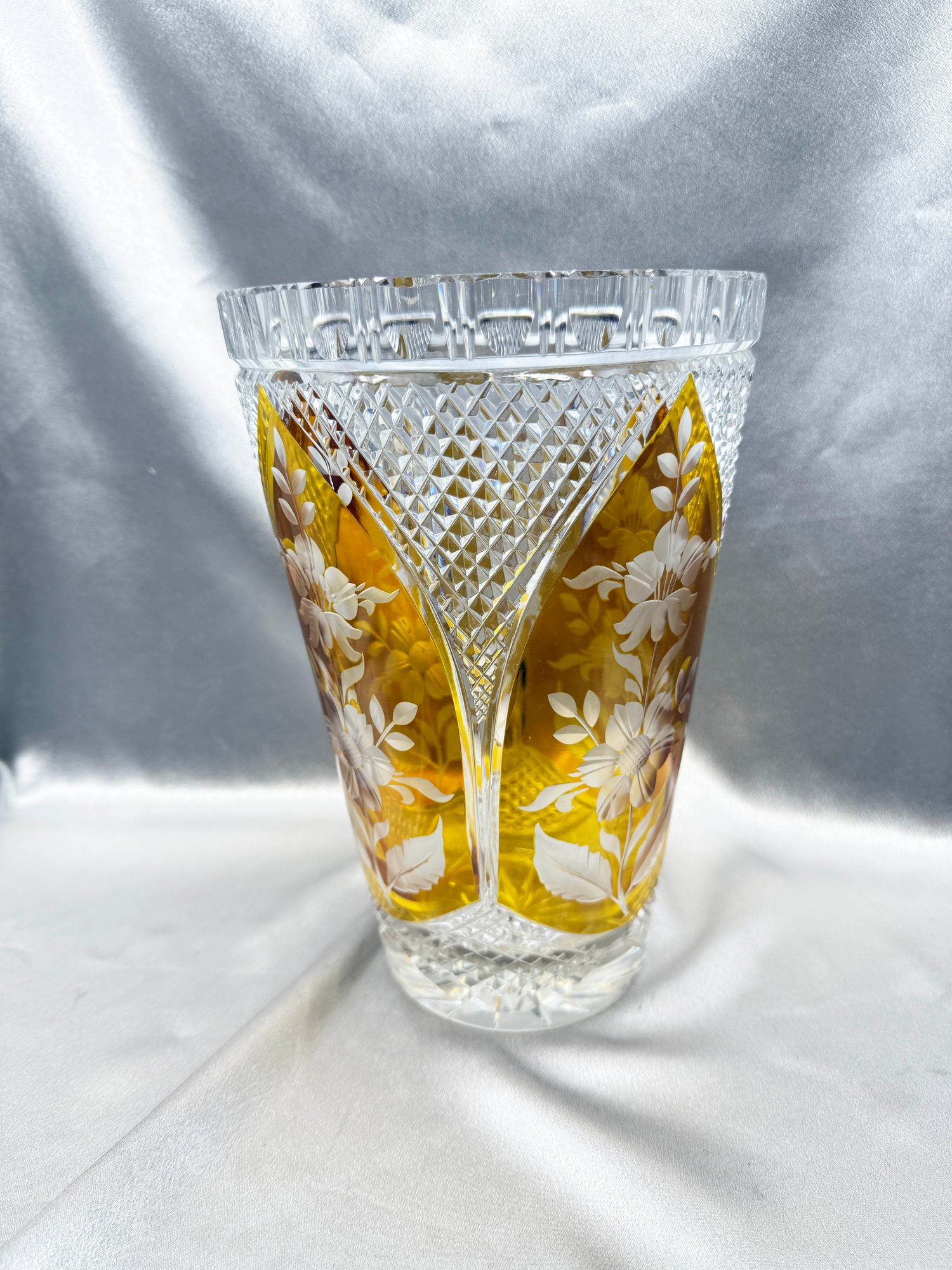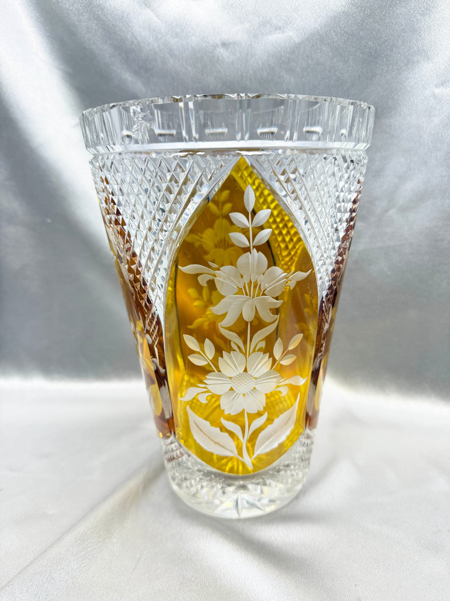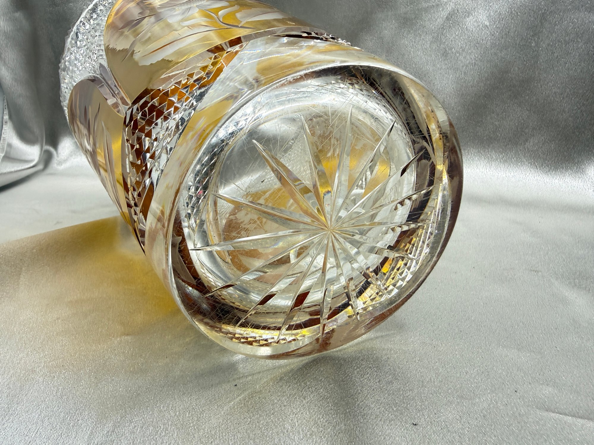 (A-34) VINTAGE BOHEMIAN OR POLISH AMBER CUT TO CLEAR 10" CRYSTAL VASE