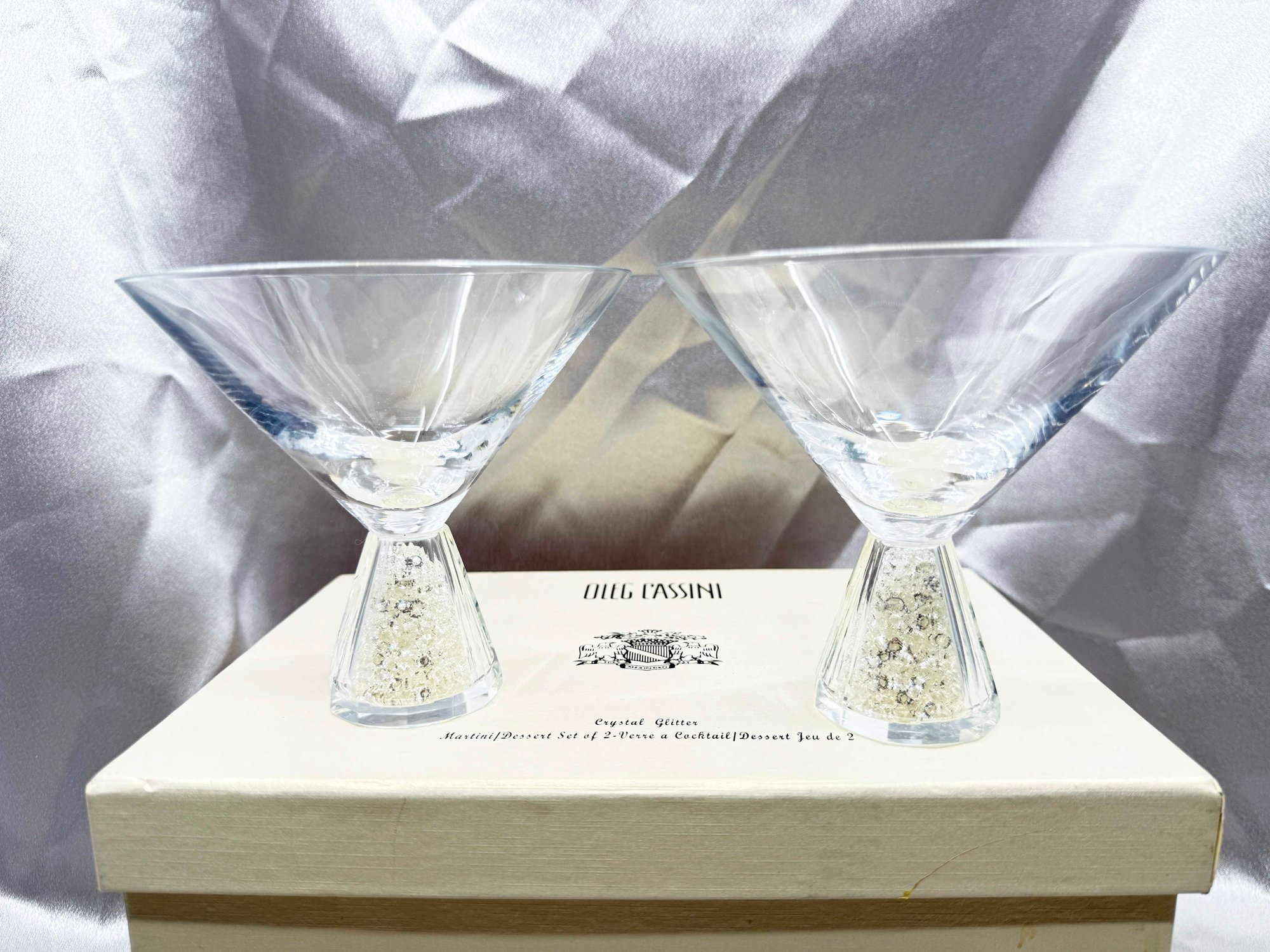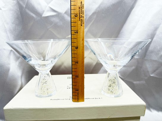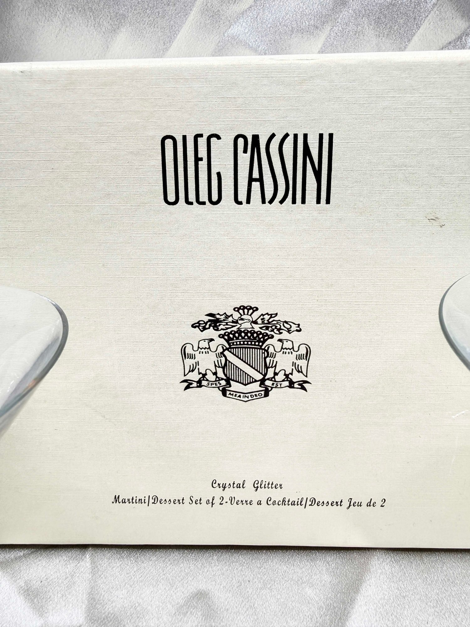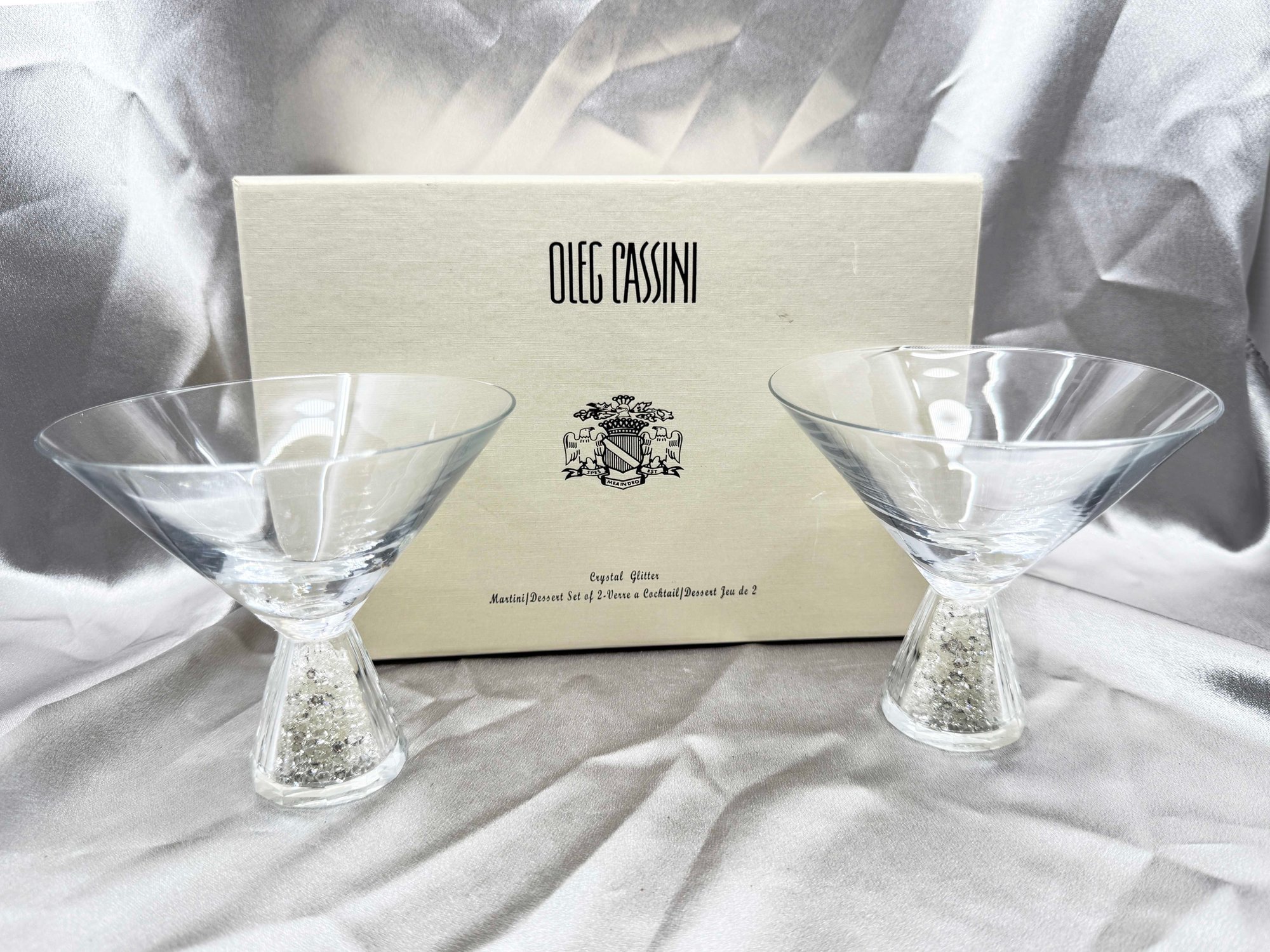 (A-35) NEW IN BOX "OLEG CASSINI" PAIR OF CRYSTAL GLITTER MARTINI/DESSERT GLASSES