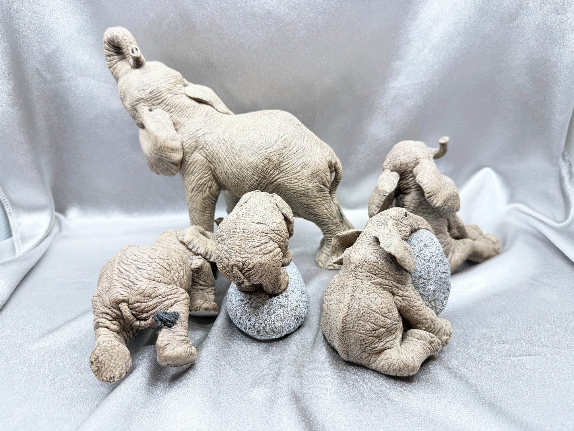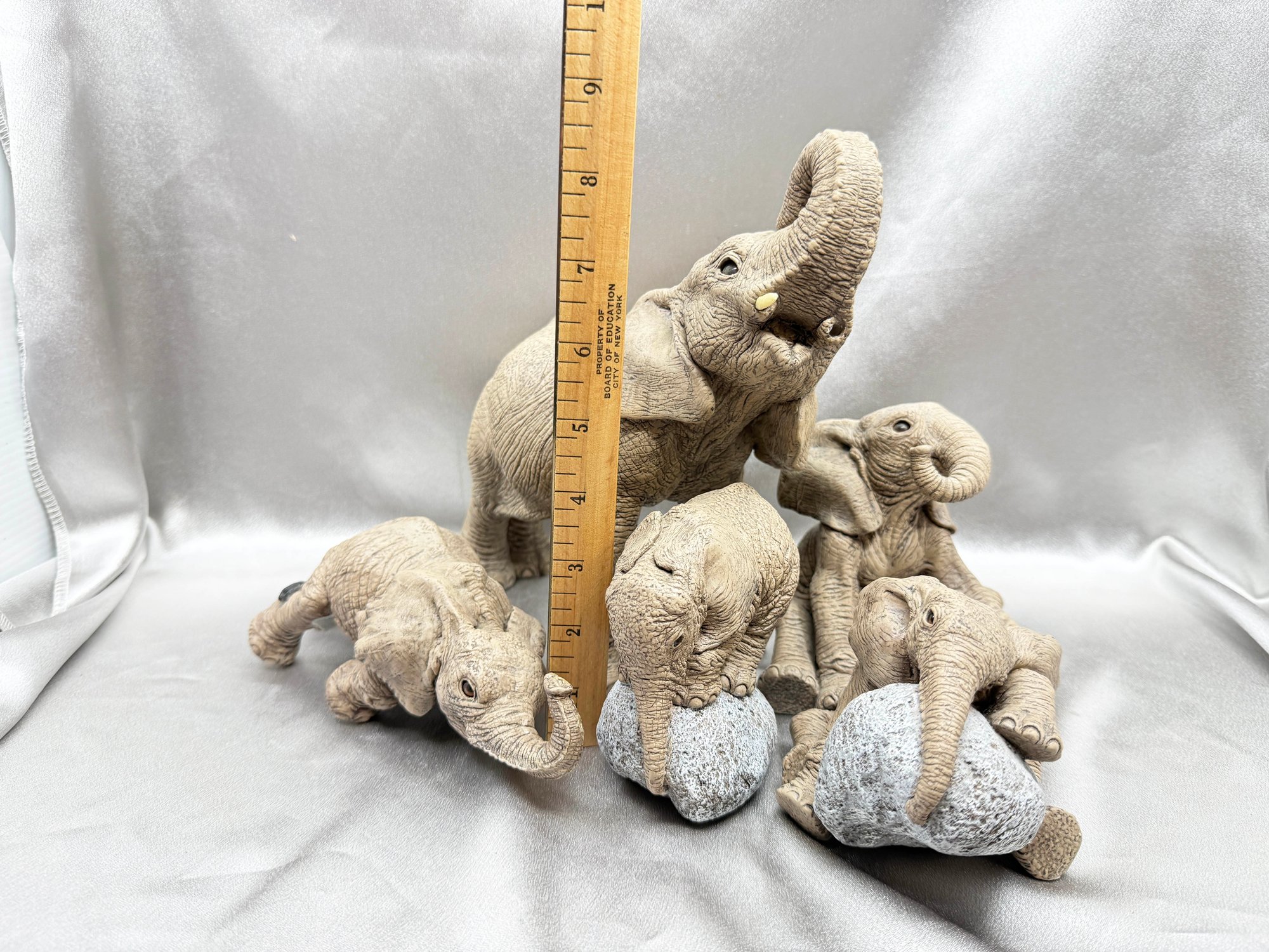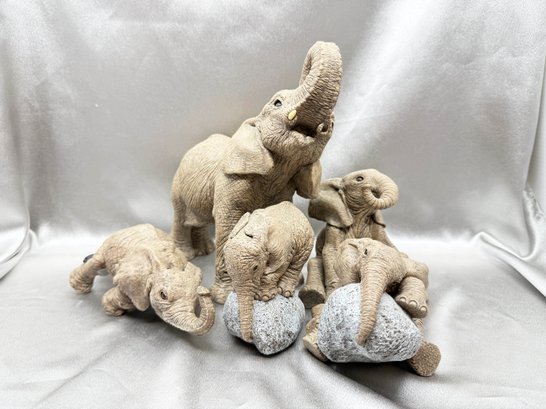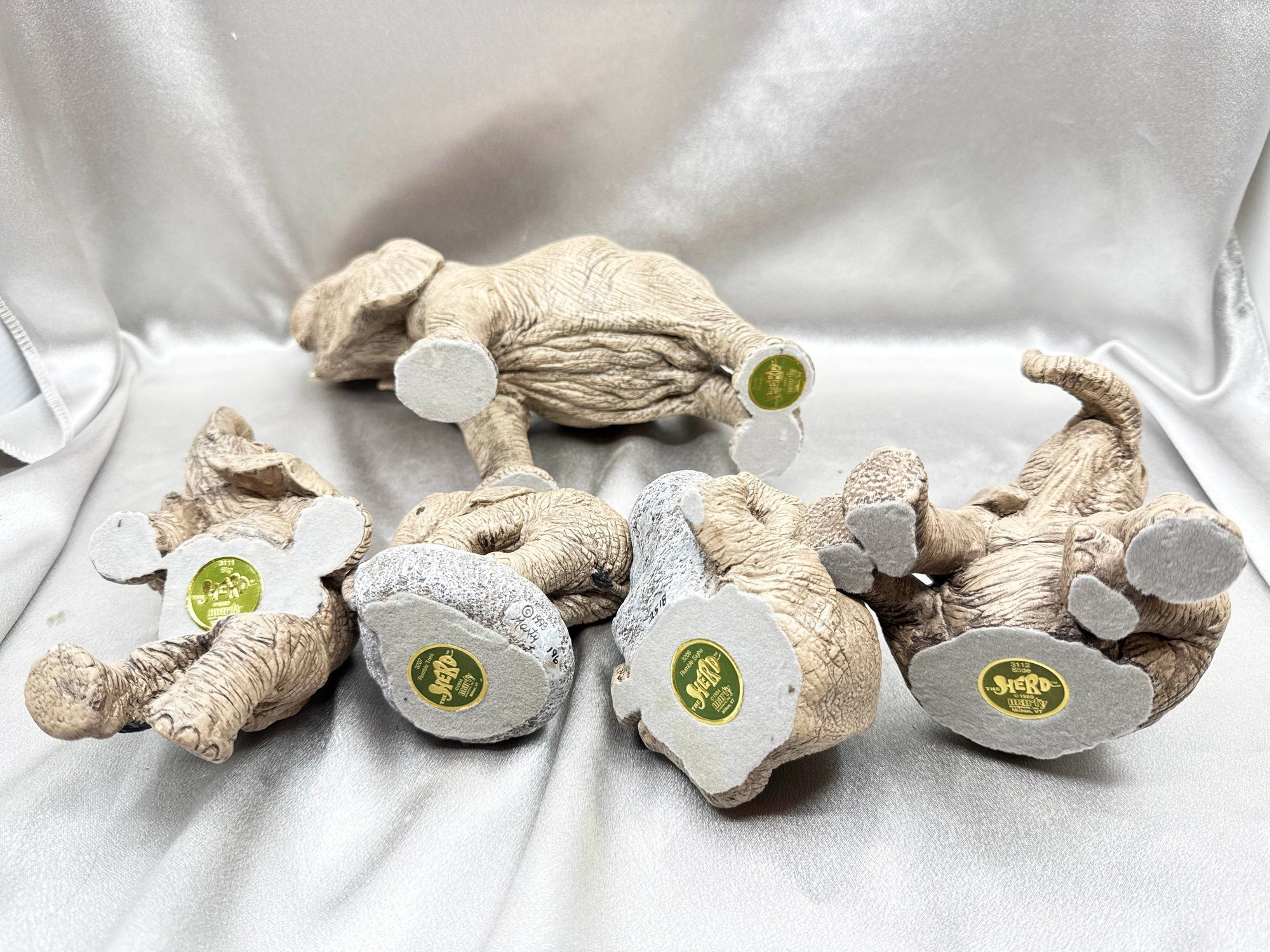 (A-38) VINTAGE SET OF 5 RESIN HAND PAINTED ELEPHANT FIGURINES-HERD