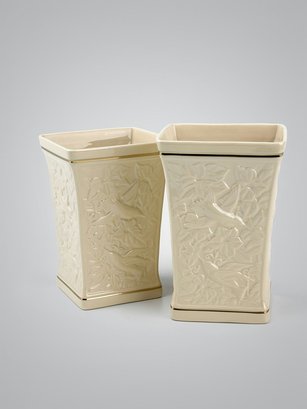 (A-39) VINTAGE PAIR LENOX FINE PORCELAIN W/24KT TRIM-SPRING GARDEN CELERY DISH-HUMMINGBIRD VASE