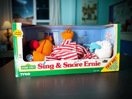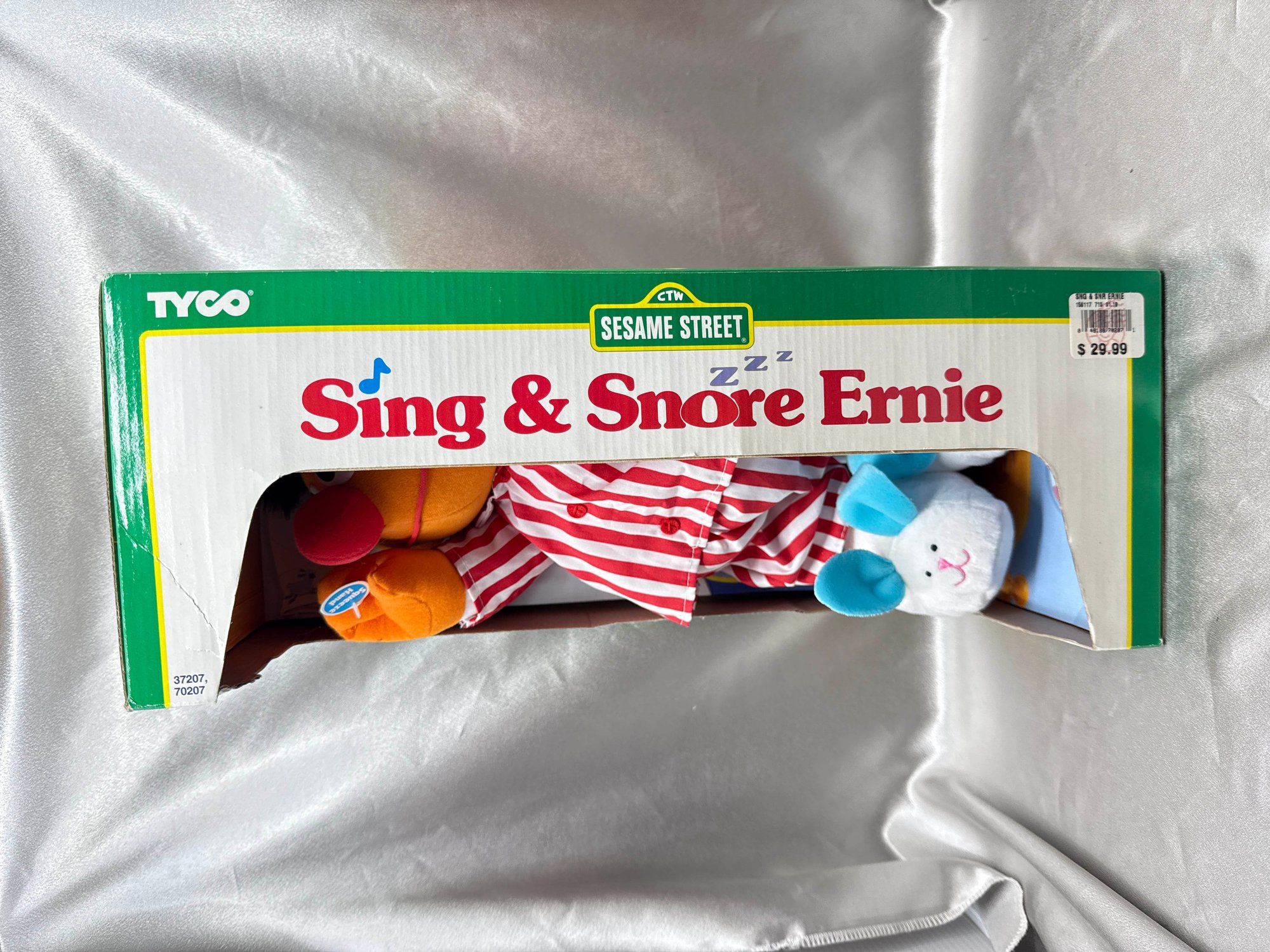 (A-43) VINTAGE NEW IN BOX 1996 TYCO SESAME STREET SING AND SNORE ERNIE TALKING PLUSH TOY