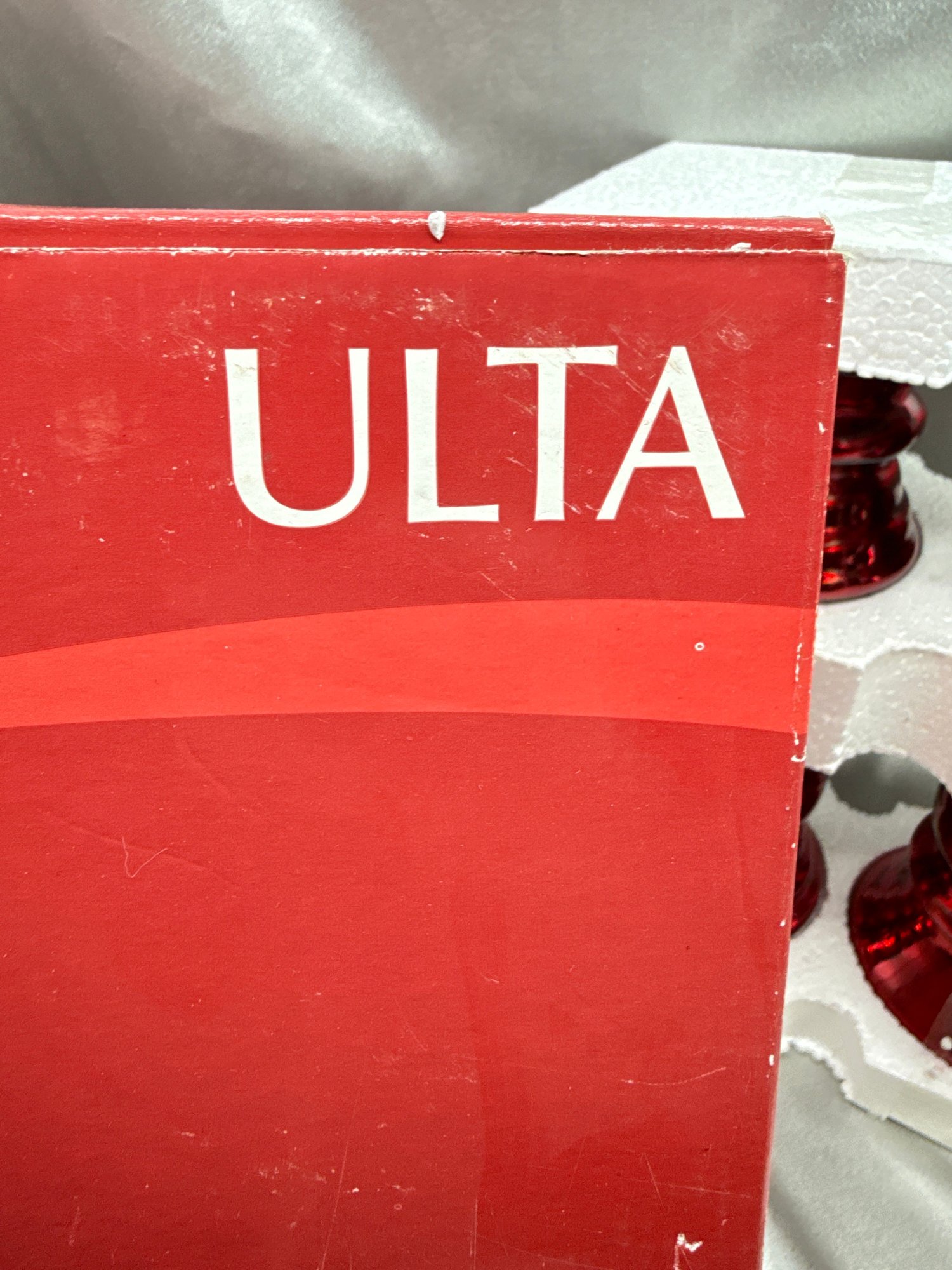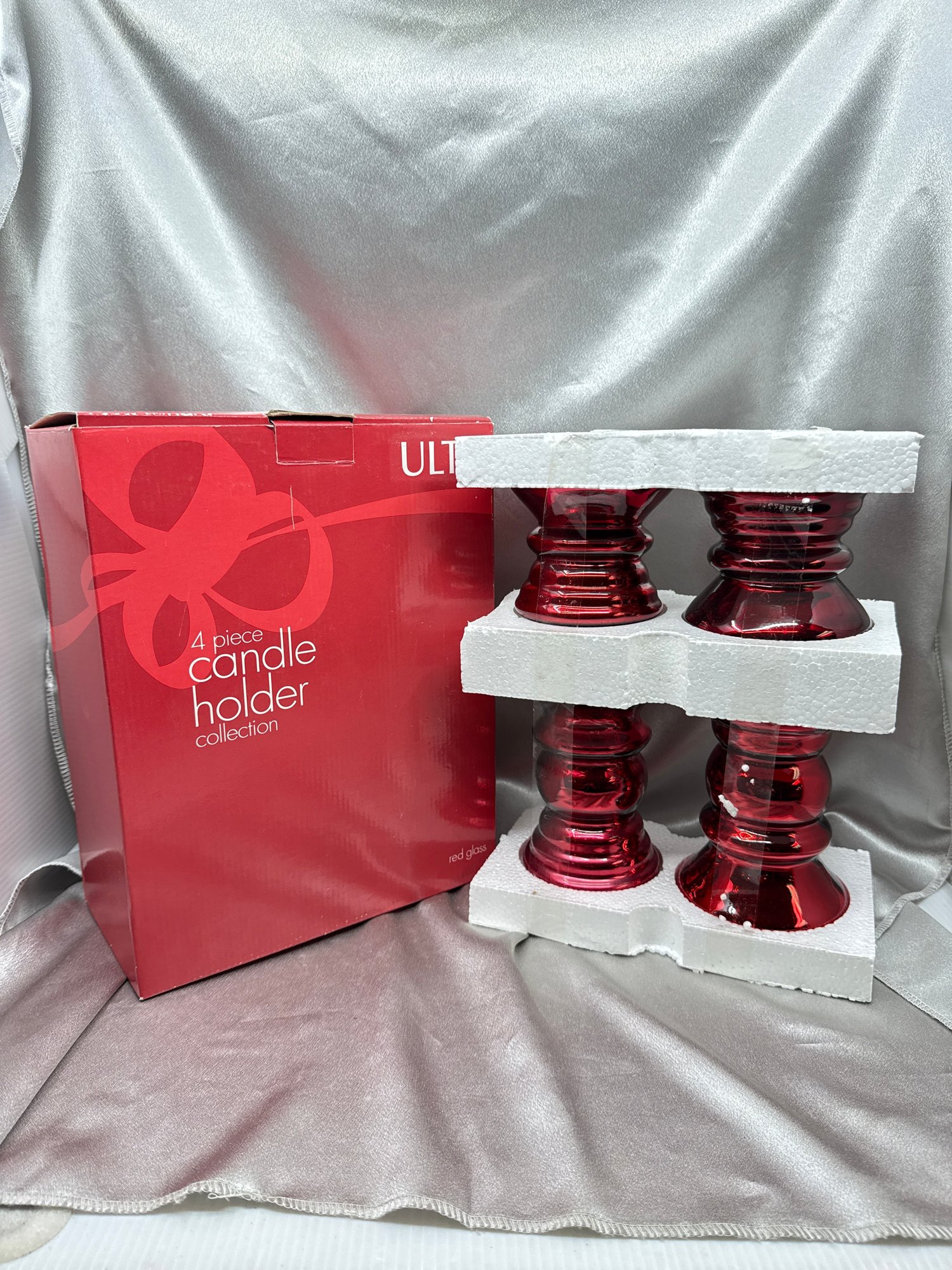 (A-45) NEW IN BOX 4 PIECE ULTA RED CANDLE HOLDERS