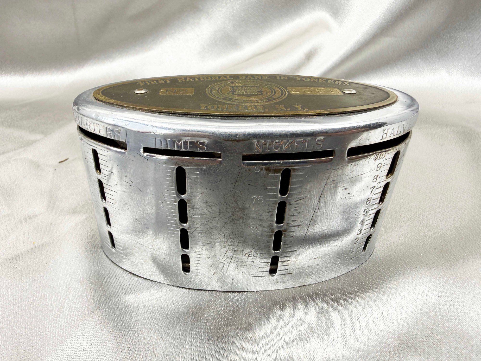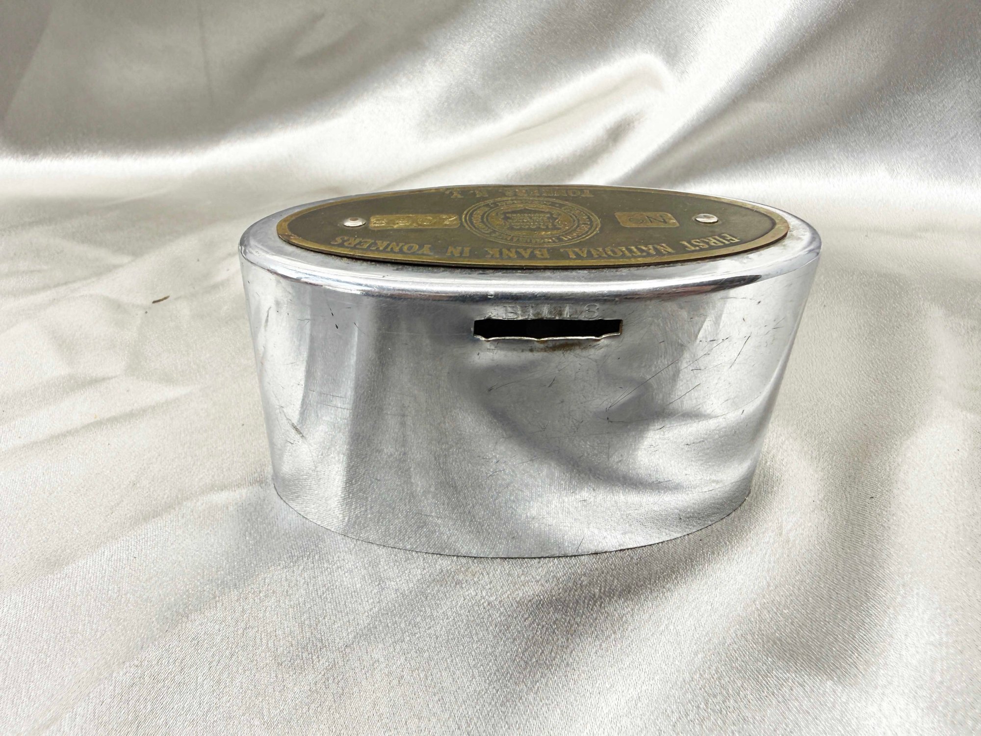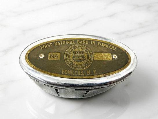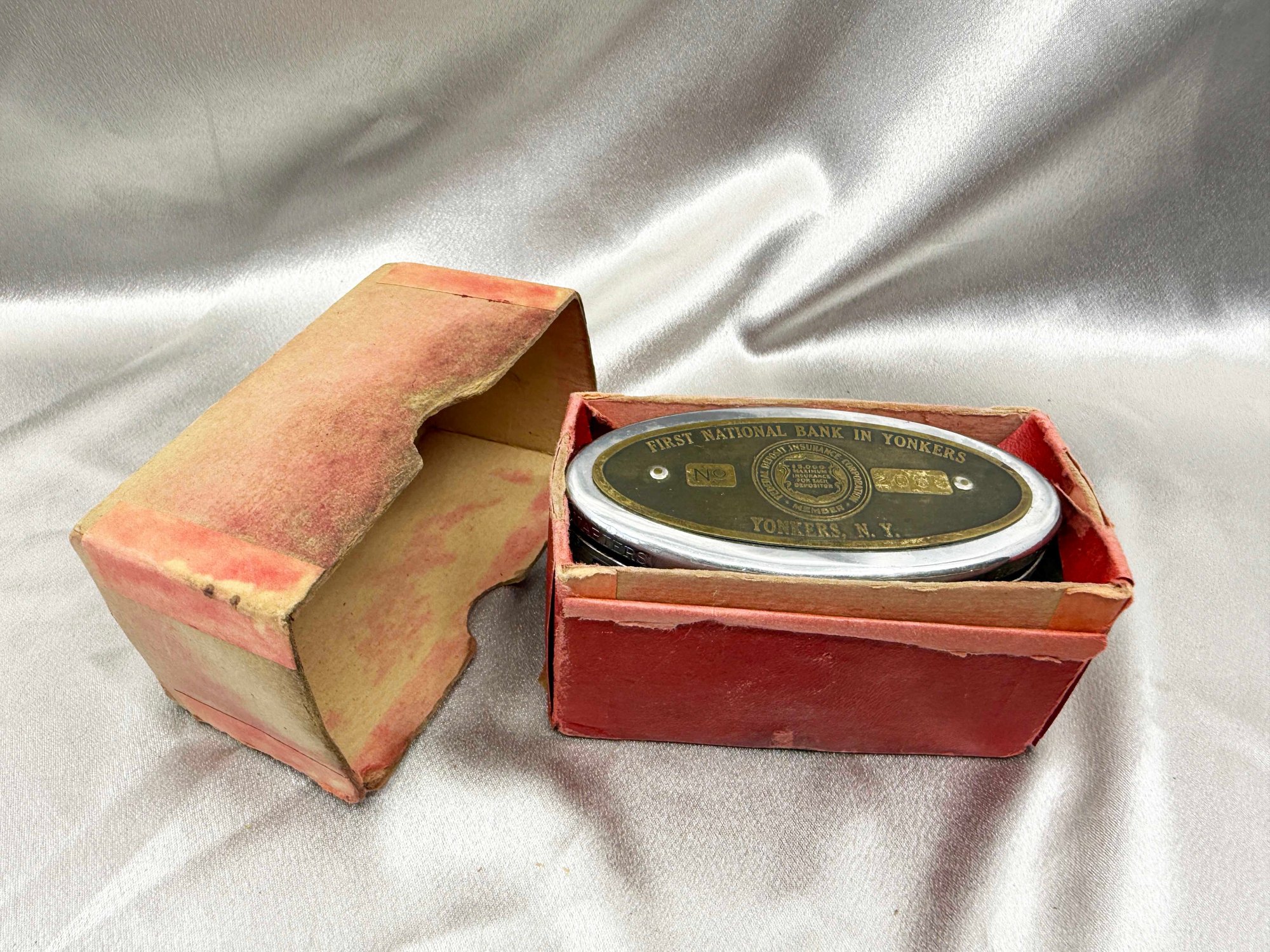 (A-47) VINTAGE FIRST NATIONAL BANK IN YONKERS NY-COIN BANK W/ORIGINAL CASE