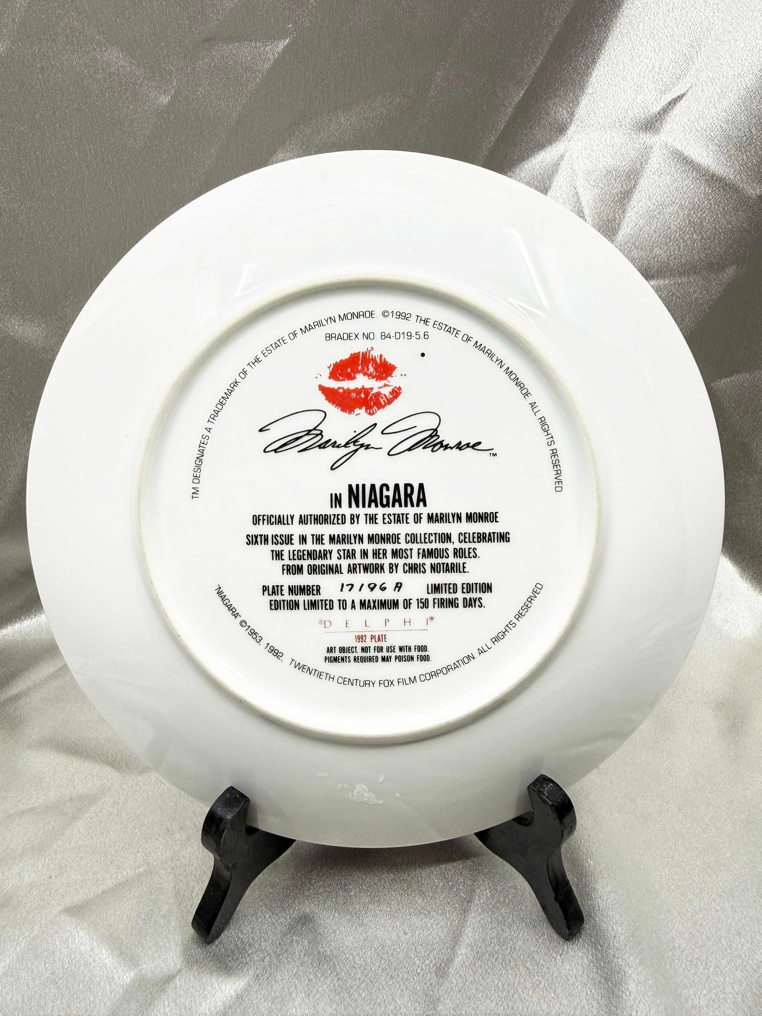 (A-48) VINTAGE DELPHI LIMITED EDITION COLLECTOR PLATE-MARILYN MONROE-NIAGRA-EASEL NOT INCLUDED