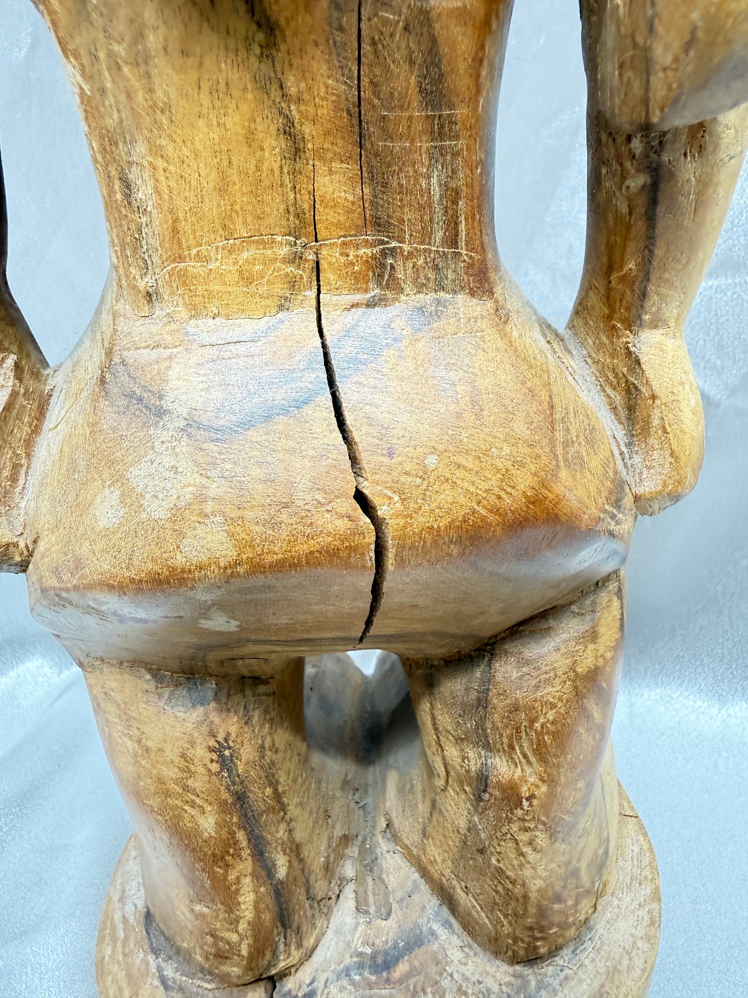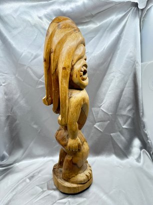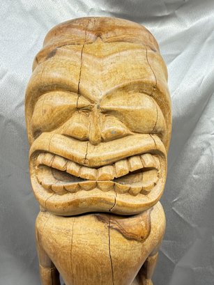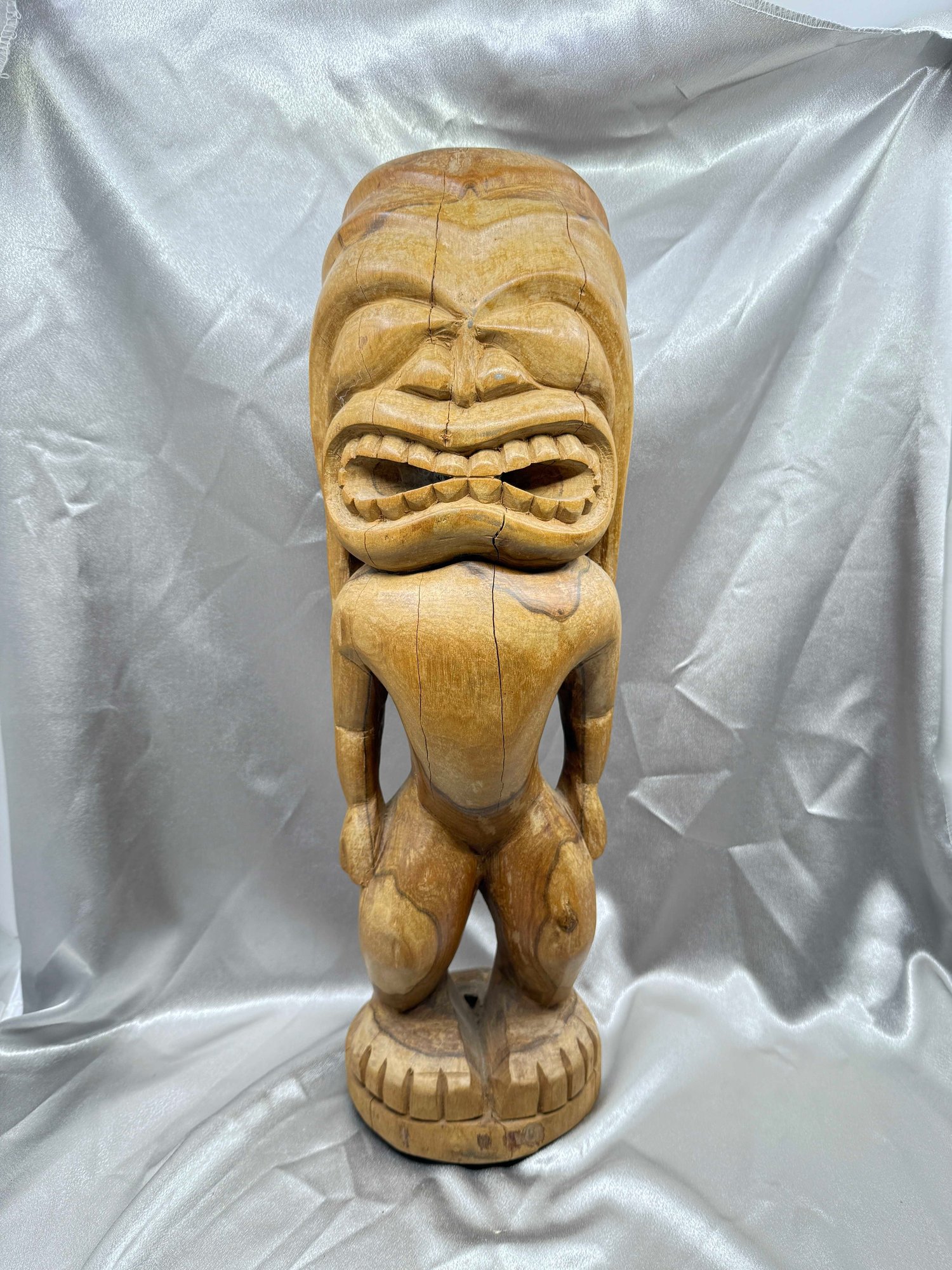 (A-50) VINTAGE HAND CARVED WOODEN TIKI STATUE-19" TALL- SEE IMAGES FOR CONDITION