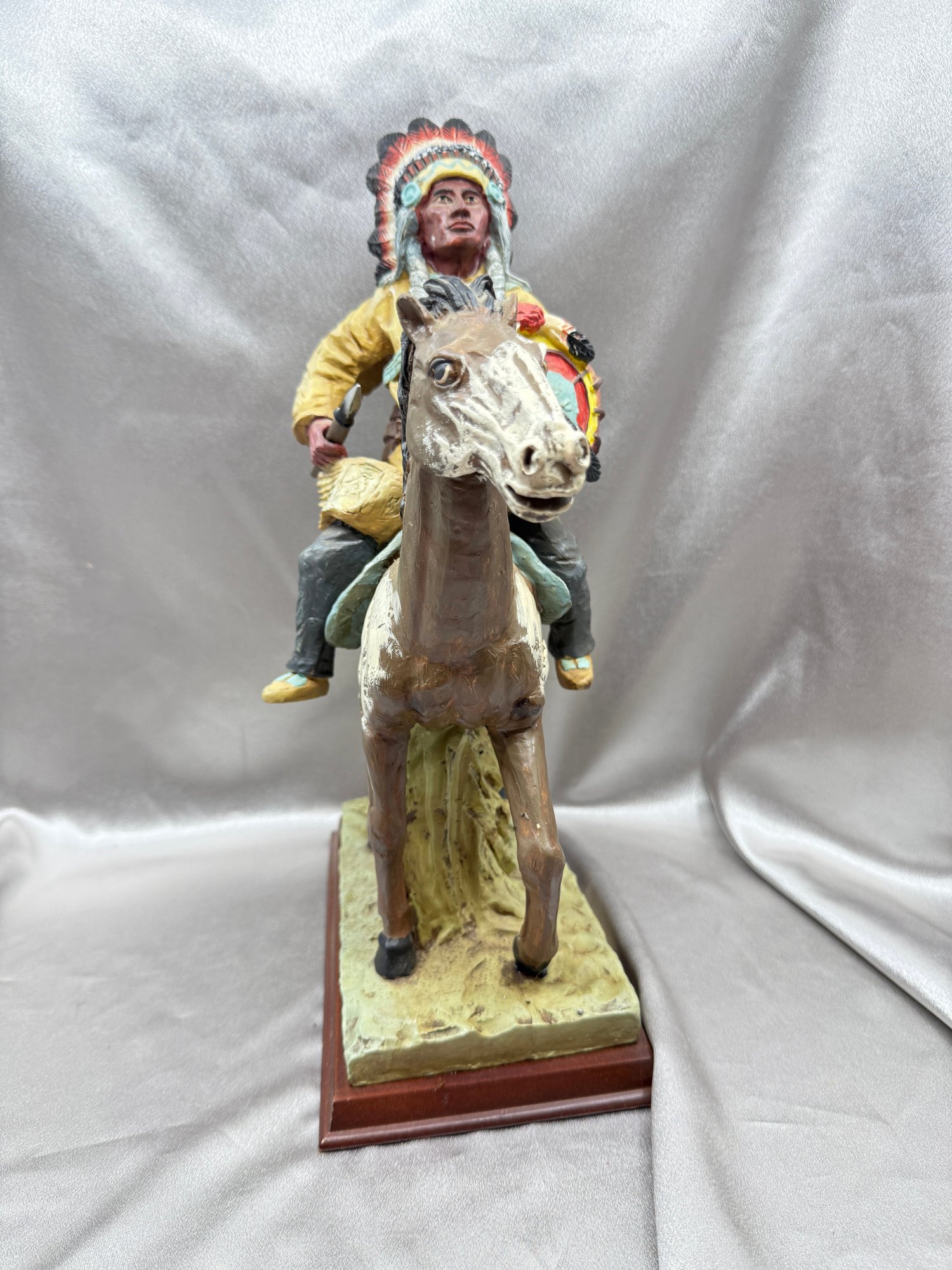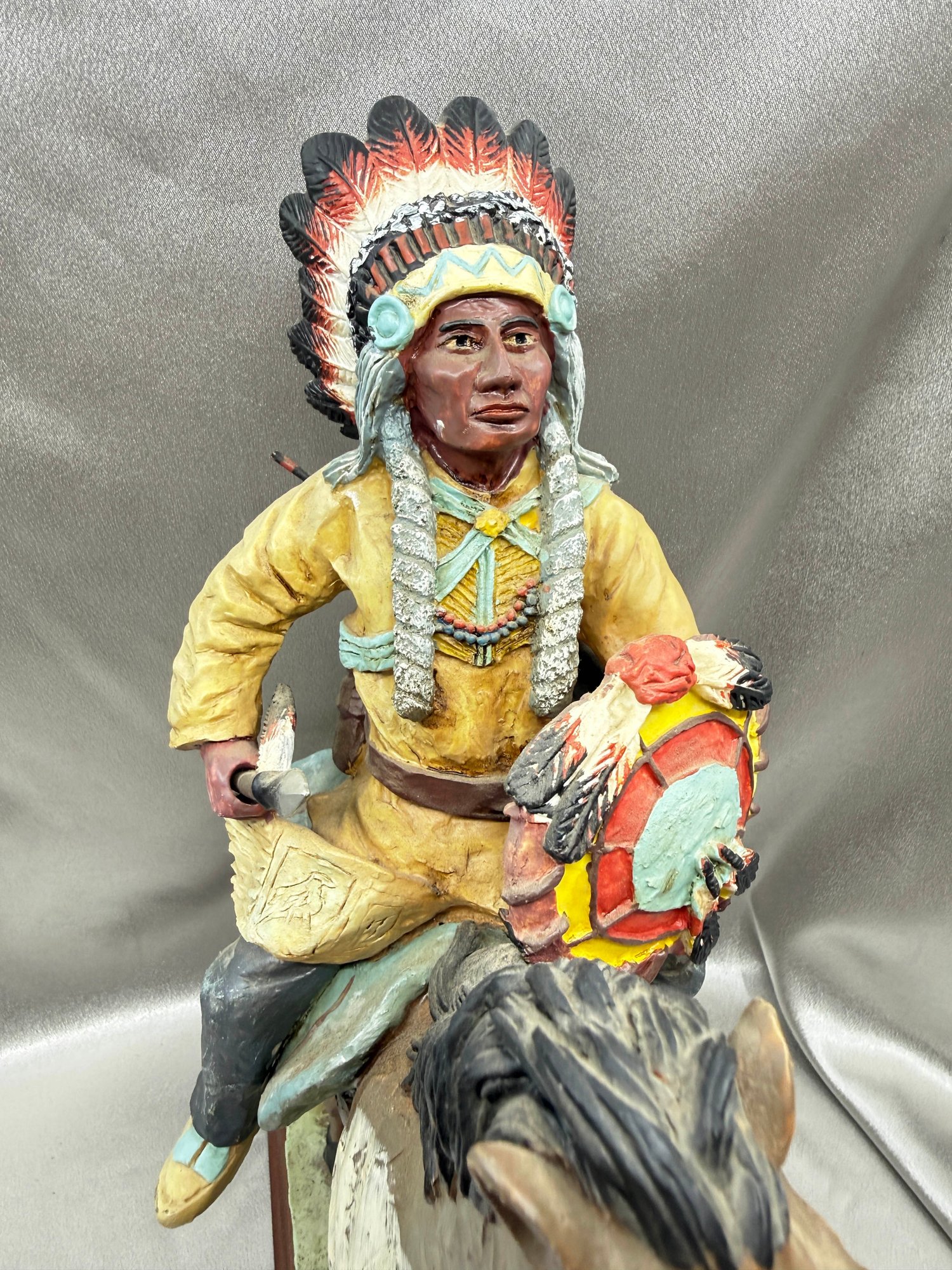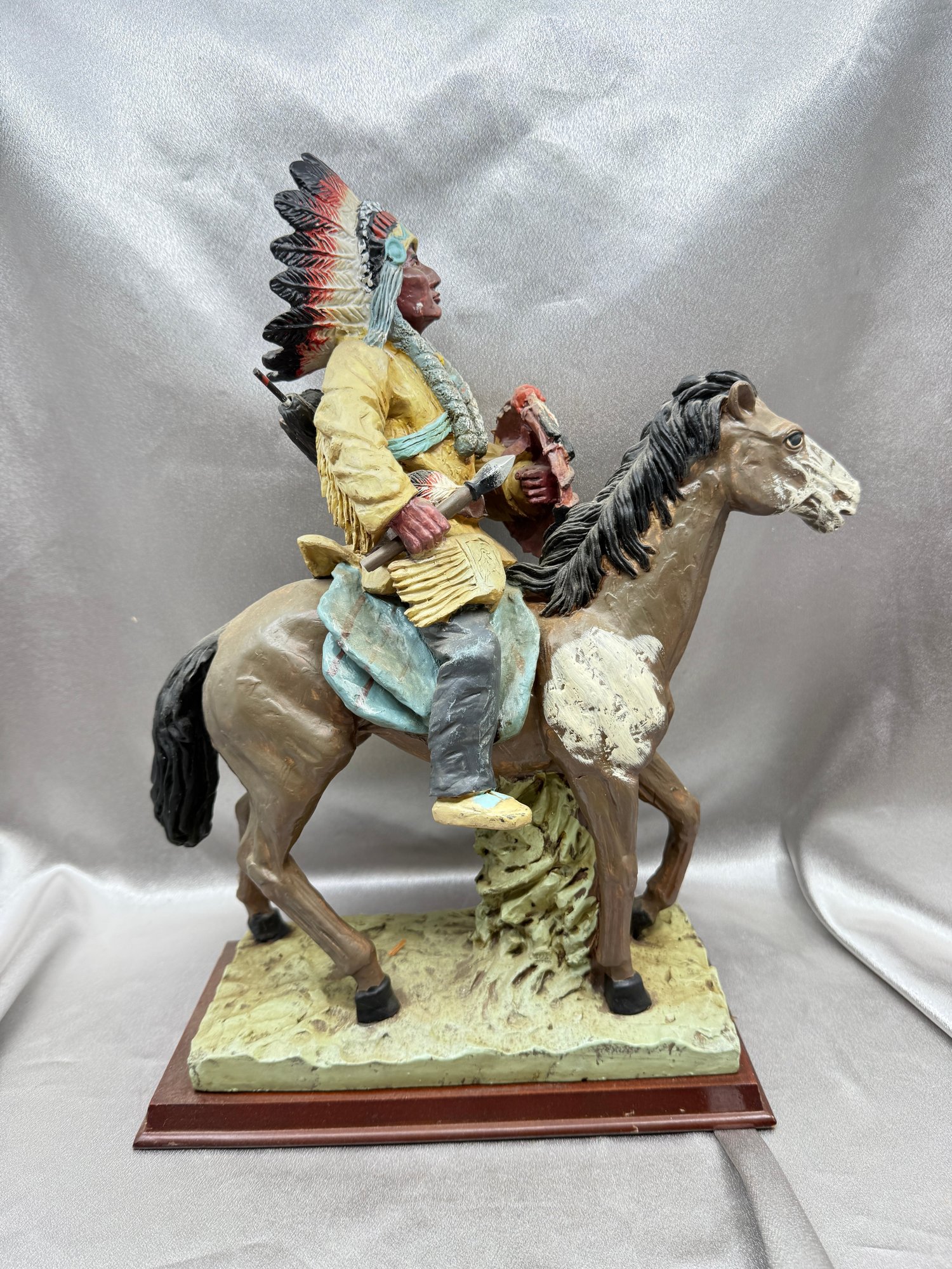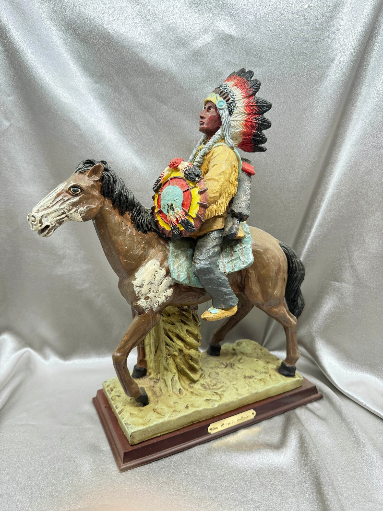 (A-50) VINTAGE MERCURIES COLLECTION-RESIN CARVED HAND PAINTED NATIVE AMERICAN CHIEF ON HORSEBACK