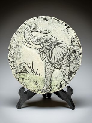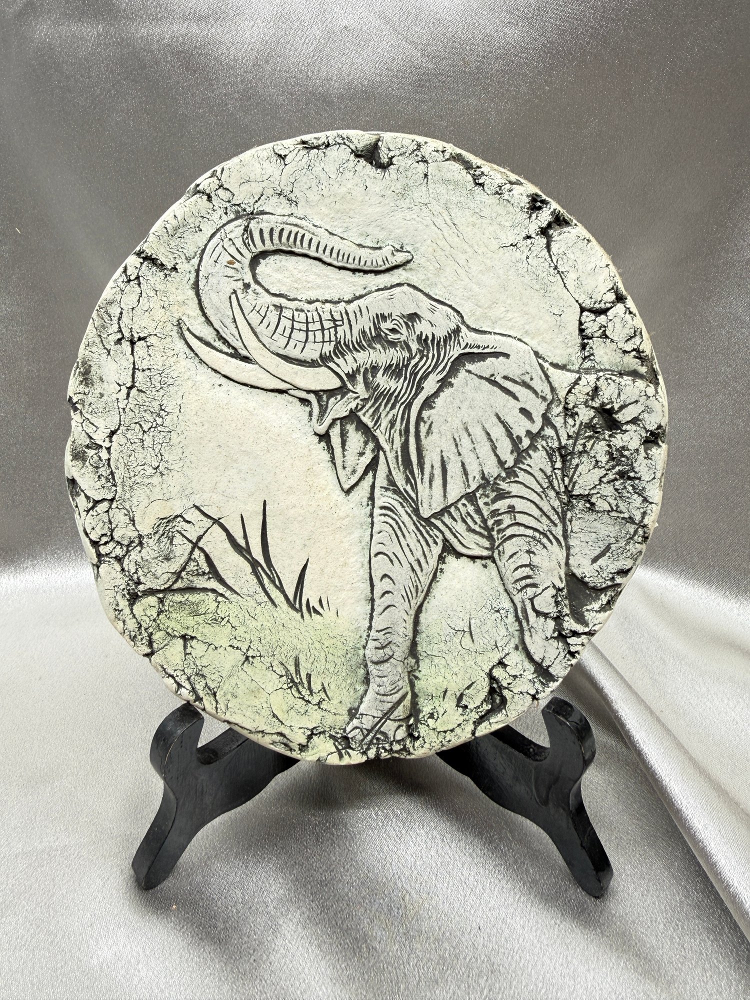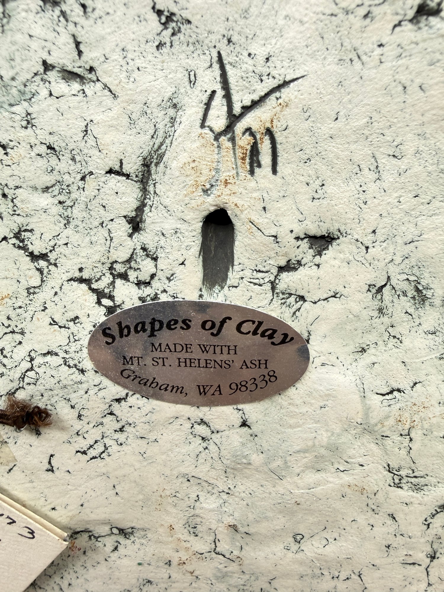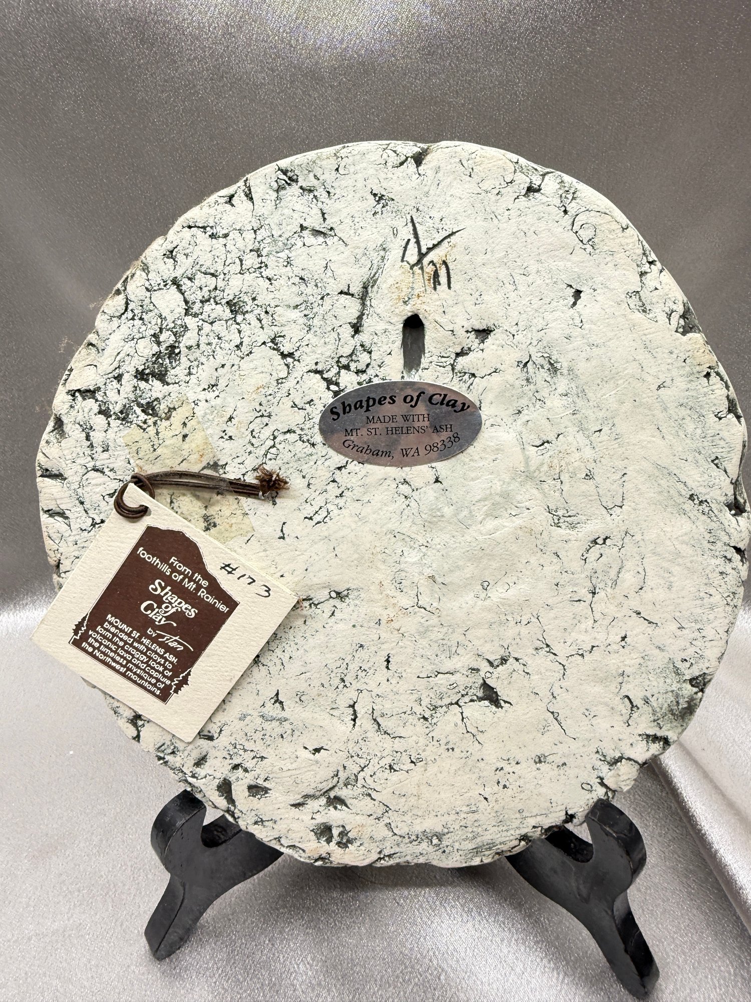 (A-52) VINTAGE MOUNT ST HELENS ASH SHAPES OF CLAY BY STAN LANGTWAIT-ELEPHANT WALL HANGING-7" ROUND