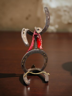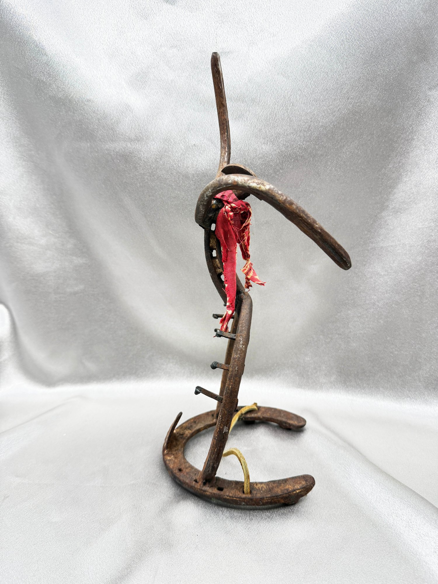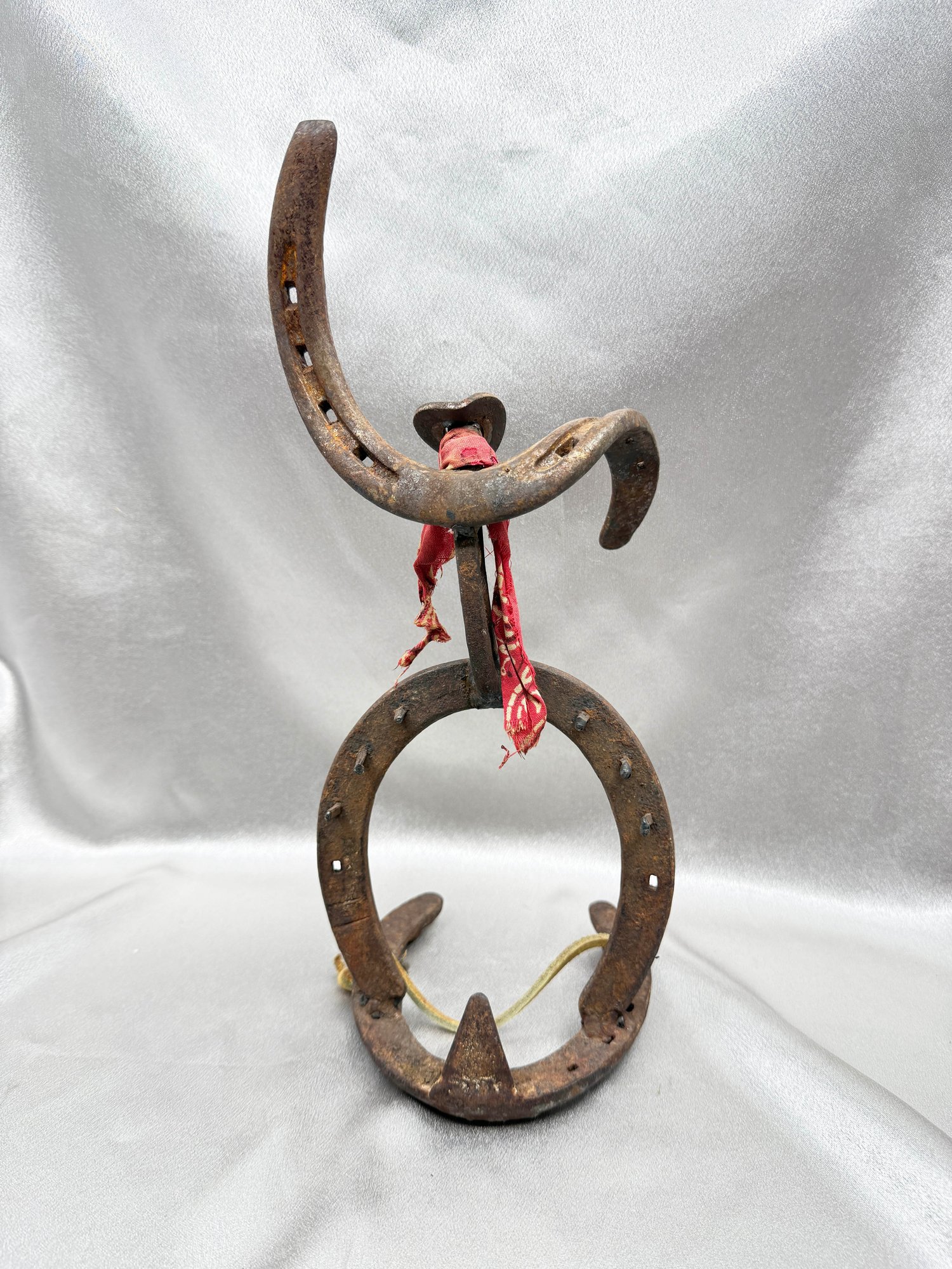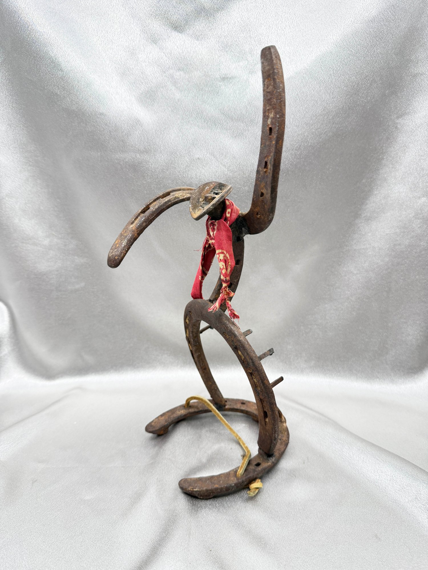 (A-53) VINTAGE HANDMADE METAL HORSESHOE SCULPTURE-RODEO RIDER-FOLK ART