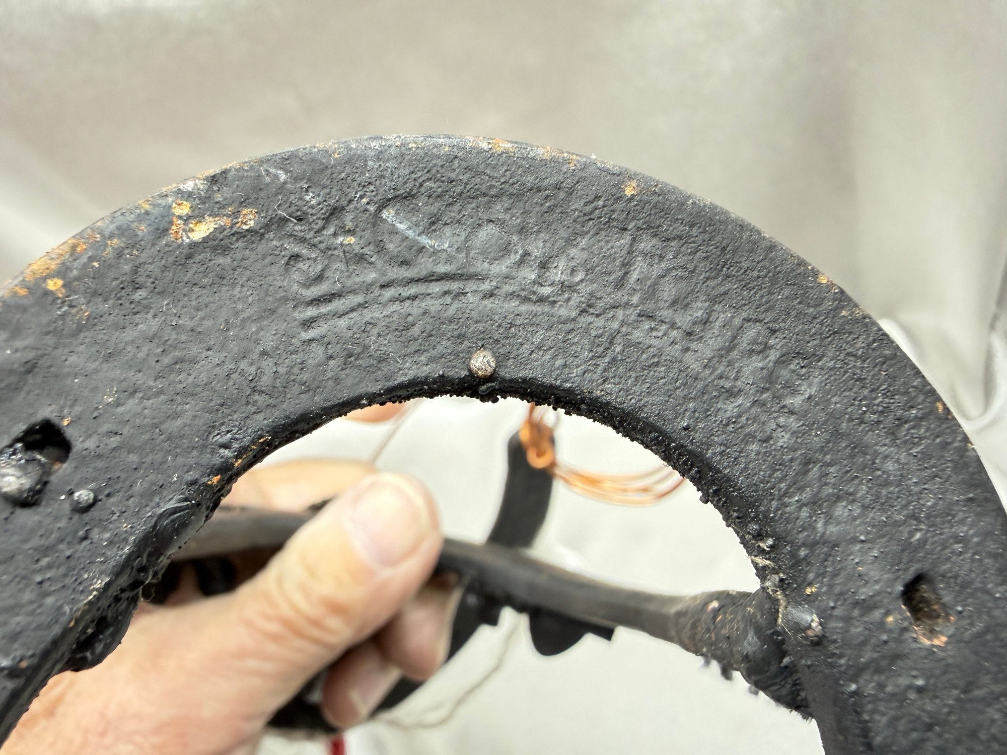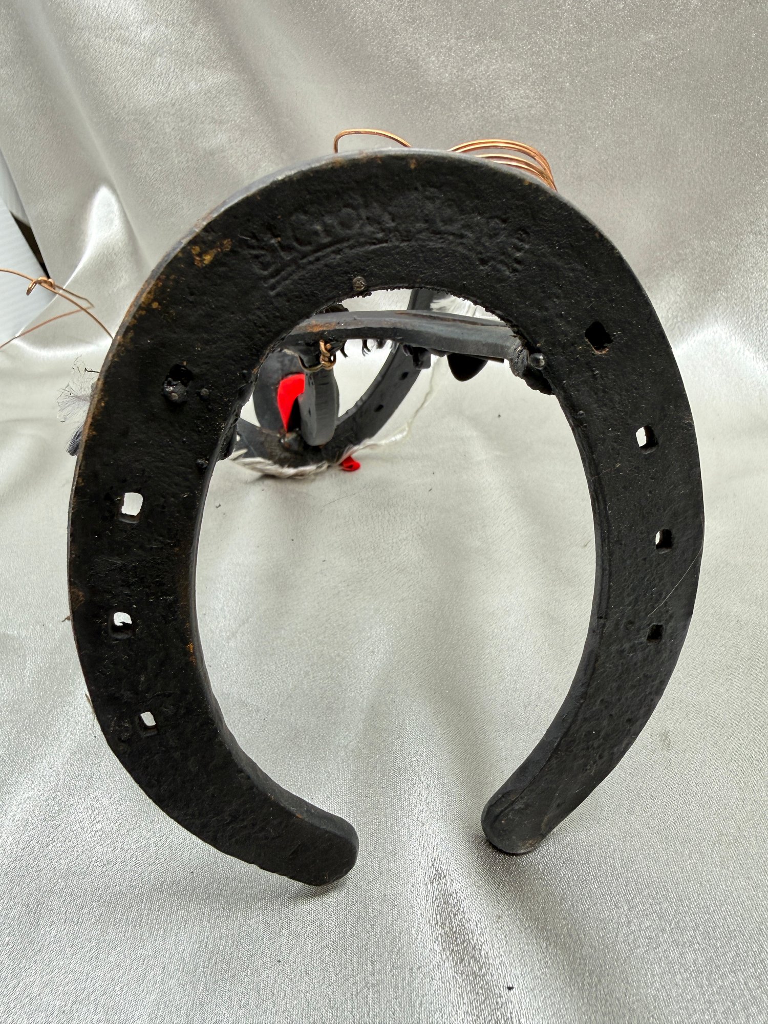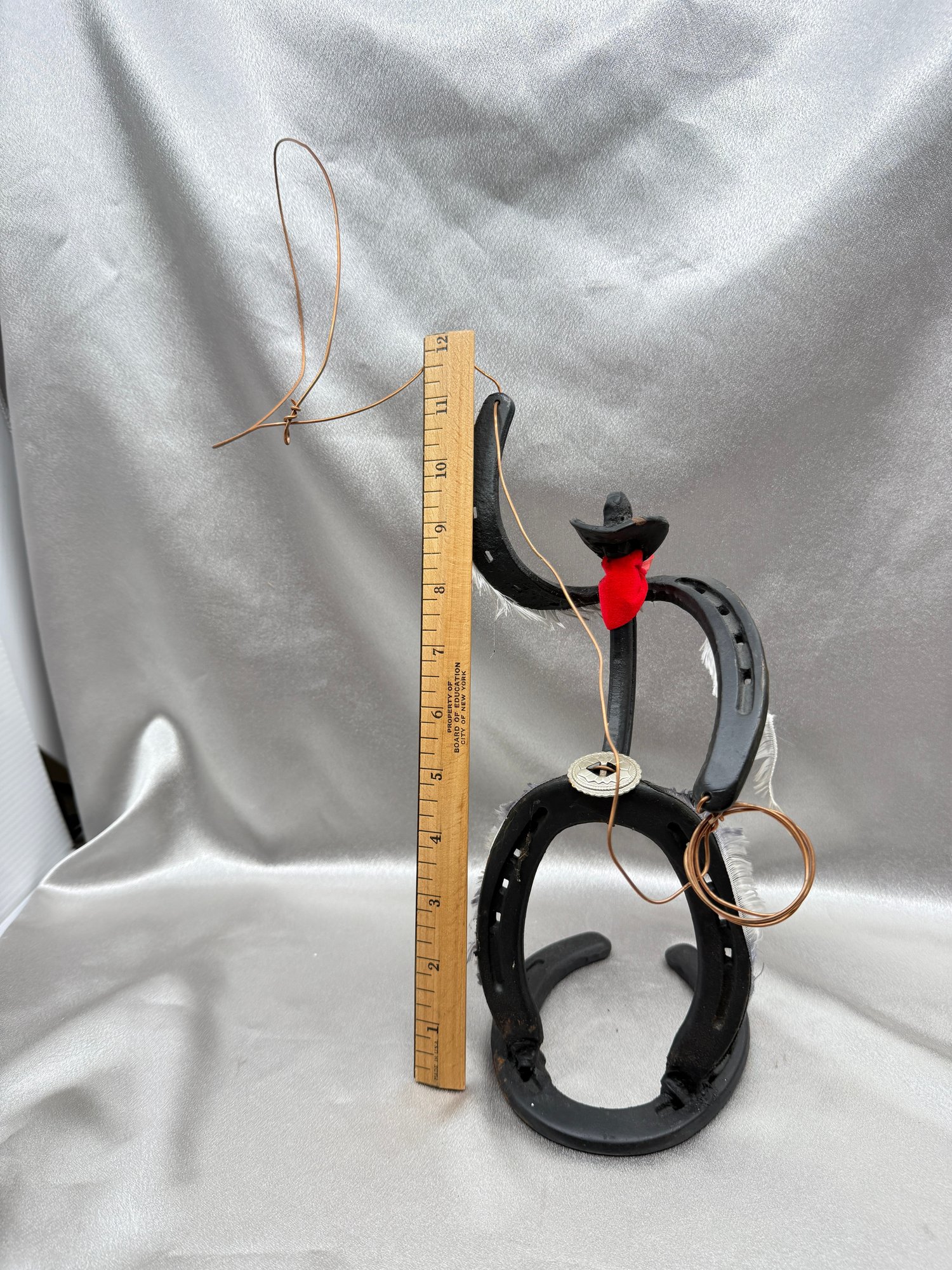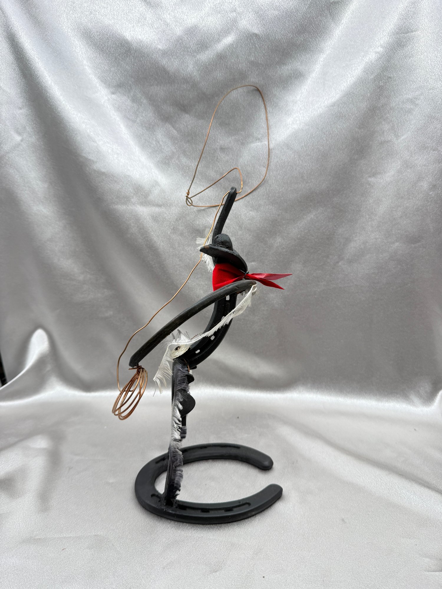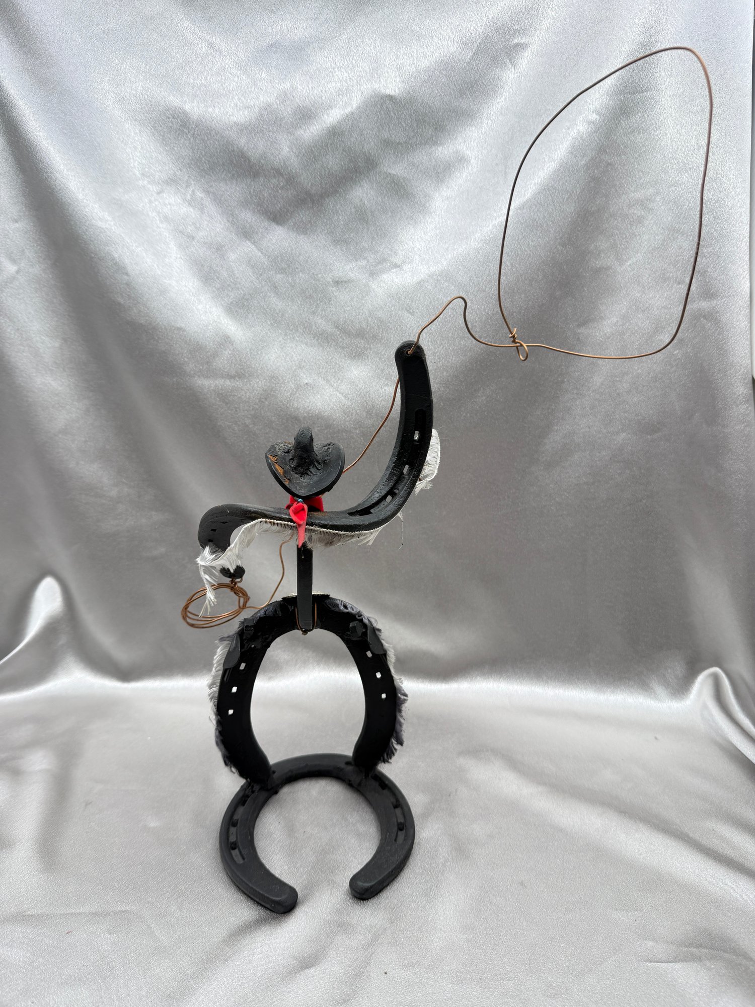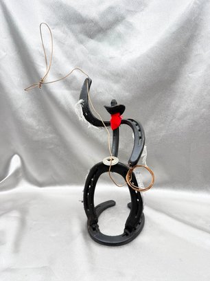 (A-54) VINTAGE HANDMADE METAL HORSESHOE SCULPTURE-LASSO-FOLK ART