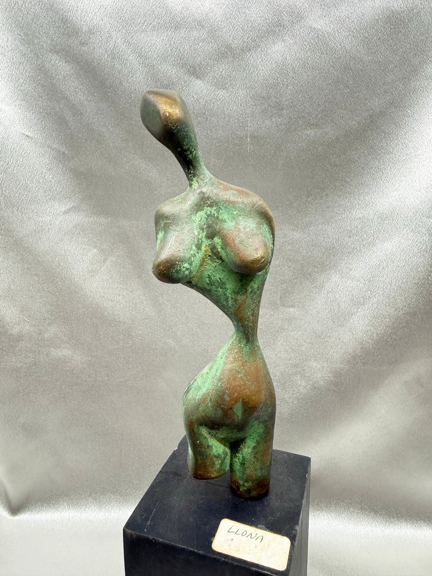 (A-56) VINTAGE BRONZE SCULPTURE WITH THE LABEL "LLONA"-ON BASE