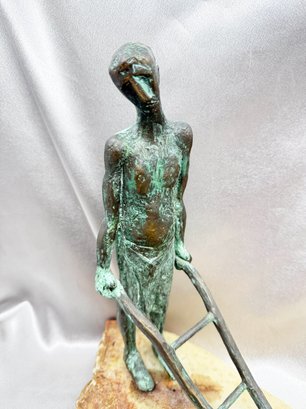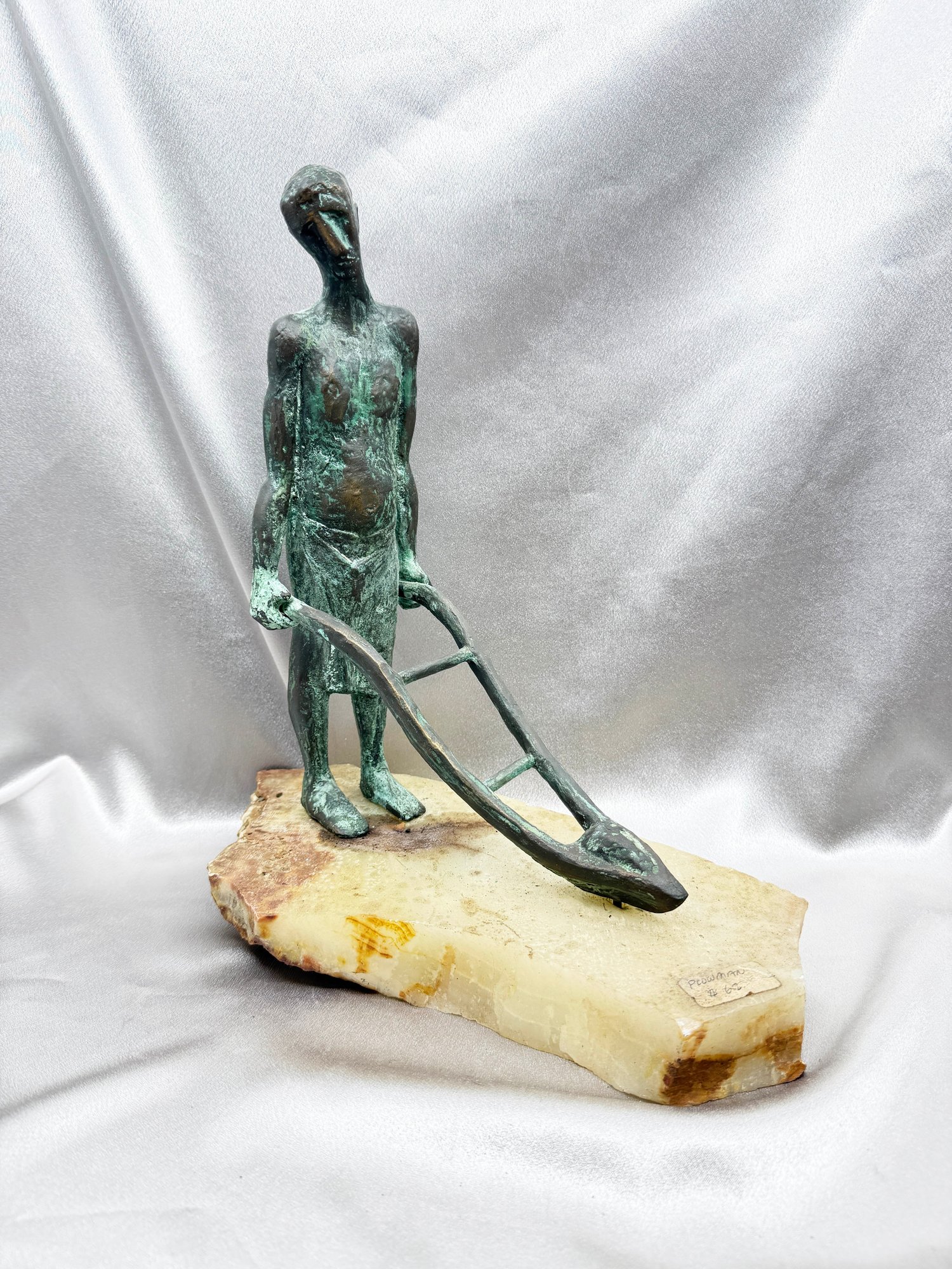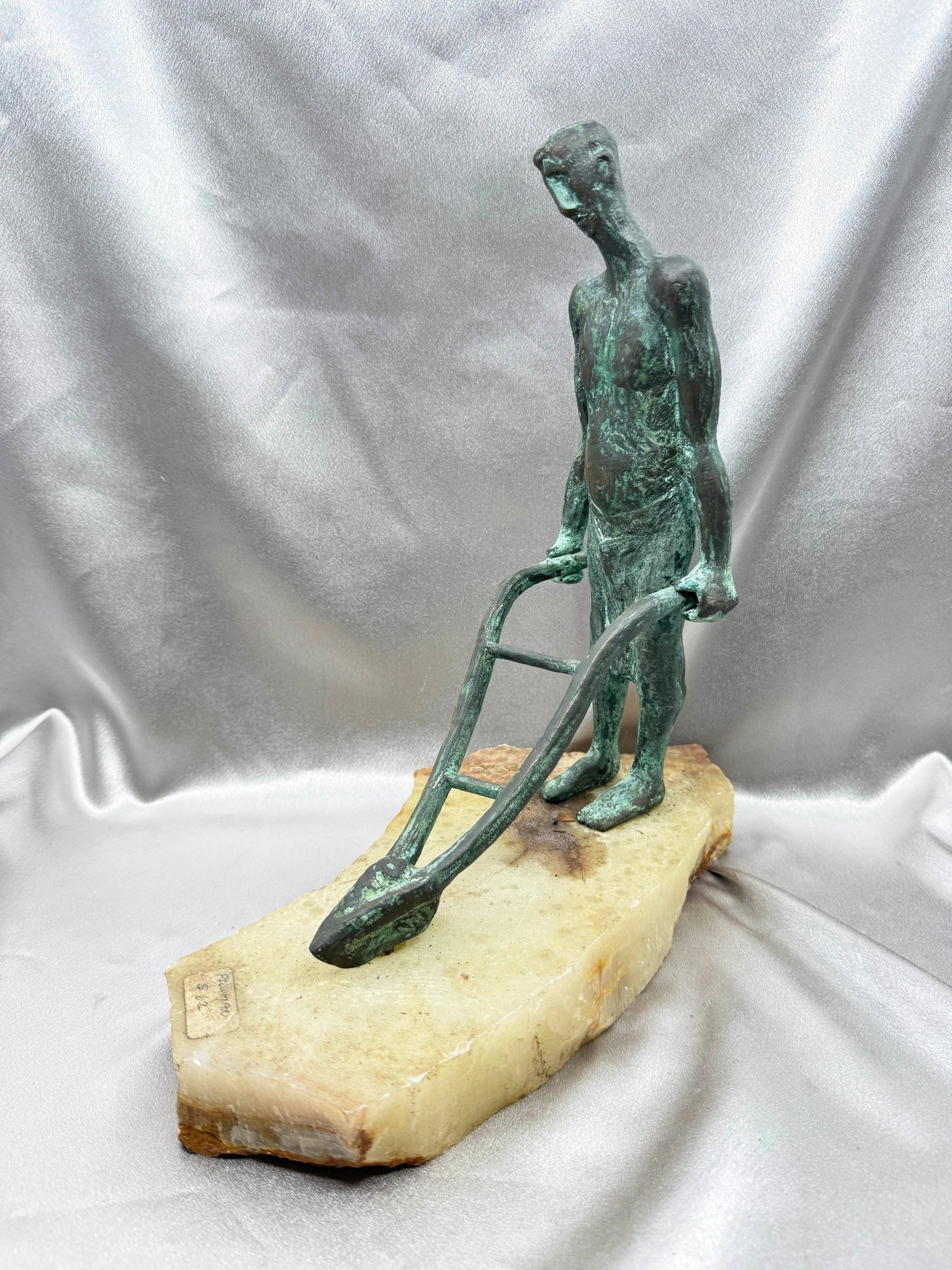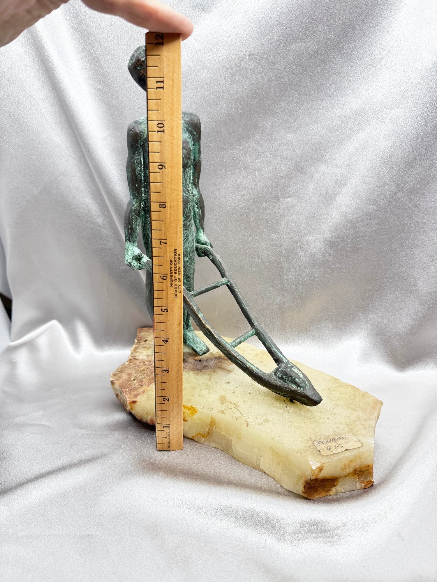 (A-58) VINTAGE BRONZE SCULPTURE TITLED PLOWMAN ON ONYX BASE-POSSIBLY BOUCHARD
