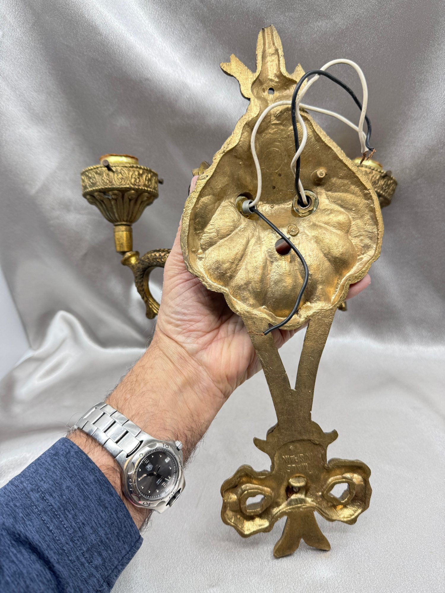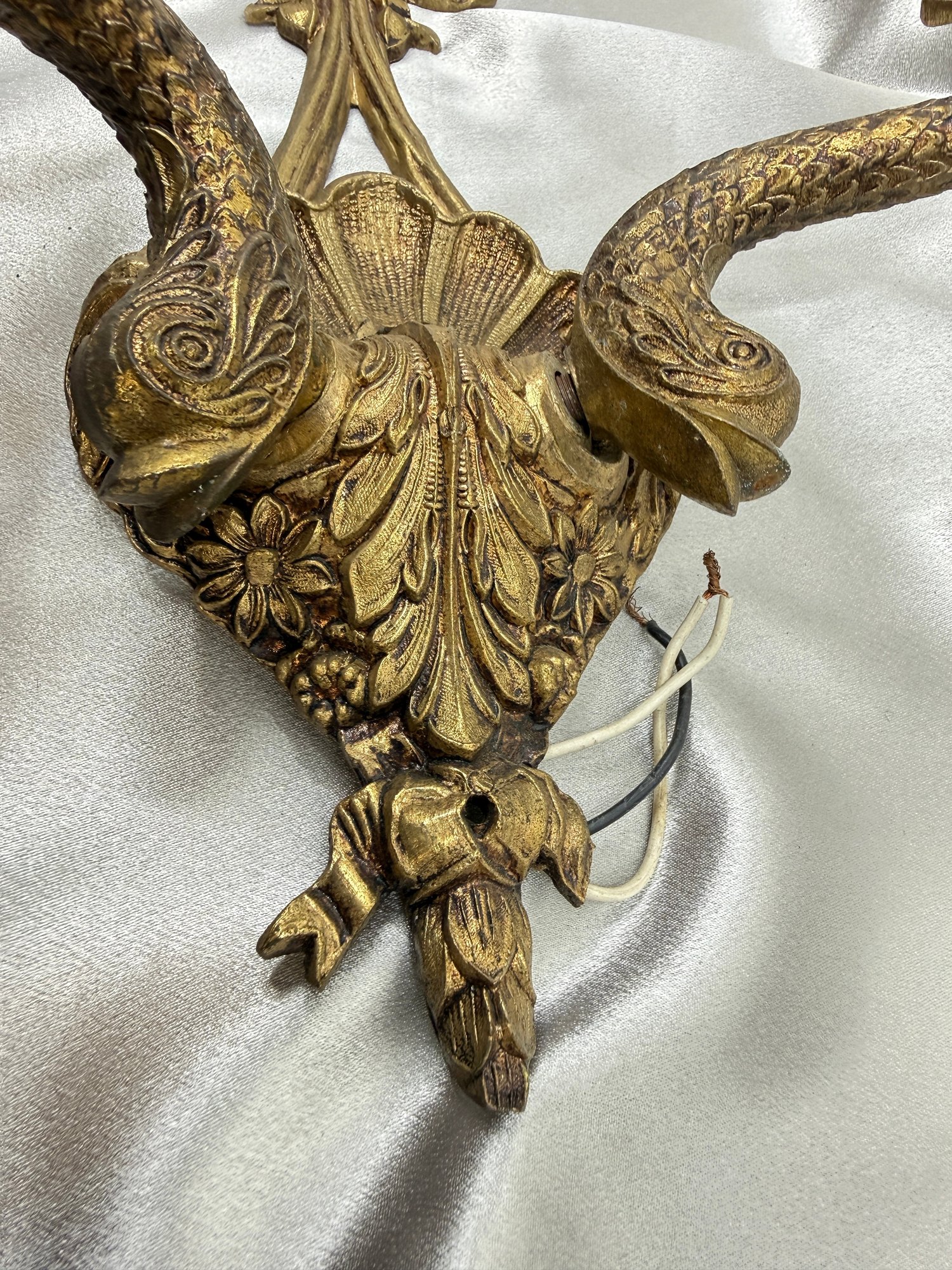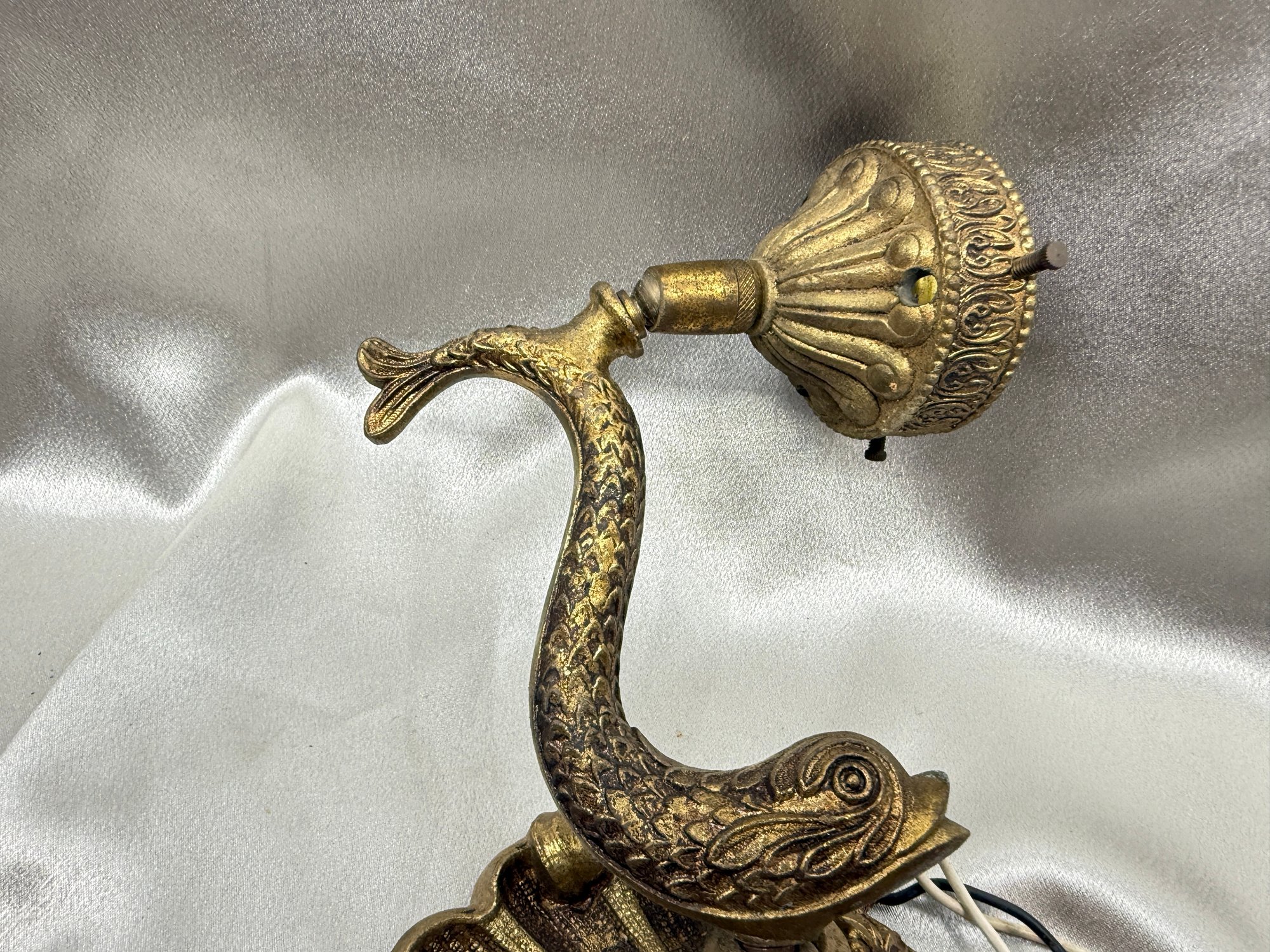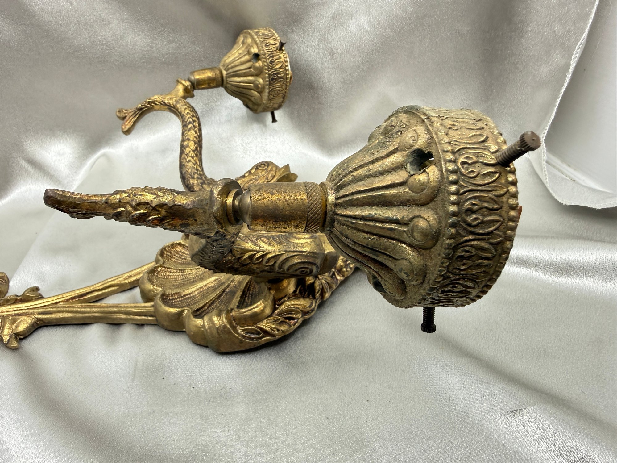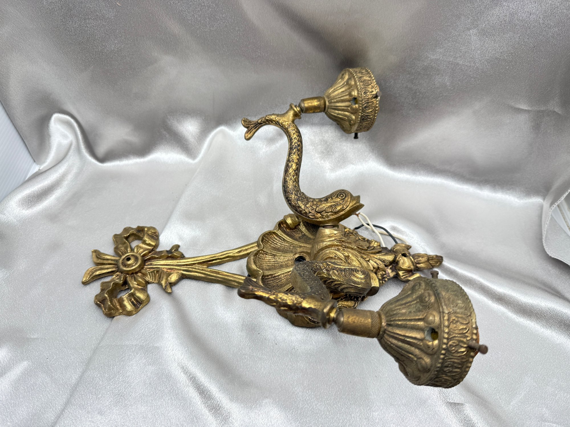 (A-6) SINGLE VINTAGE BRASS WALL SCONCE W/DETAILED CASTINGS- SERPENT OR SWAN -APPROX. 13" X 13"- MADE IN SPAIN