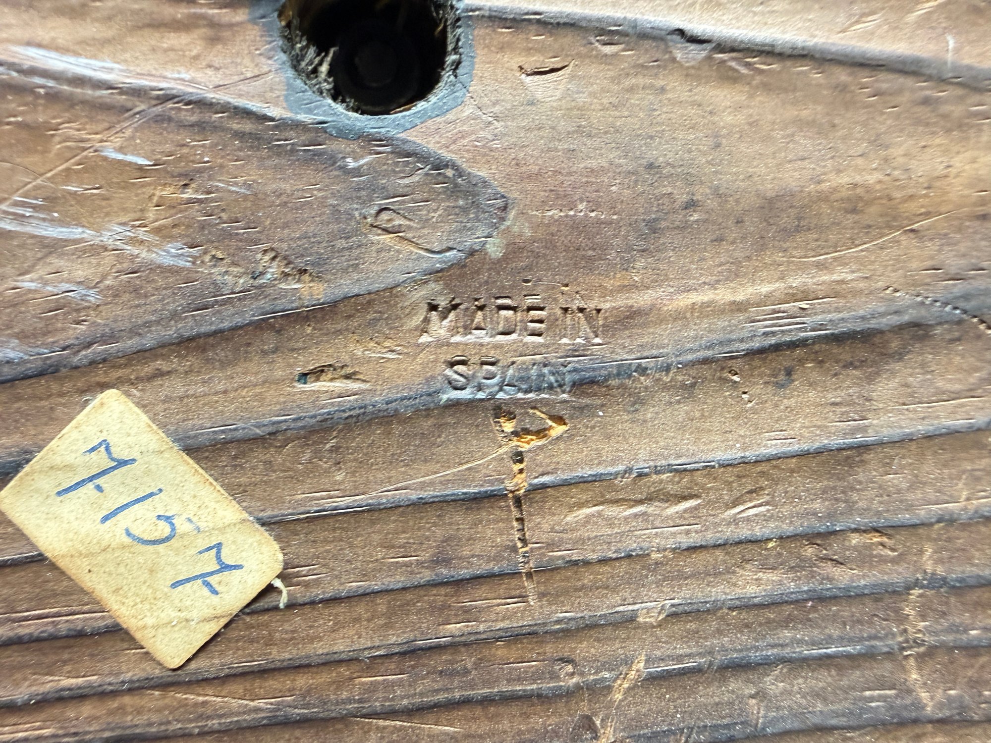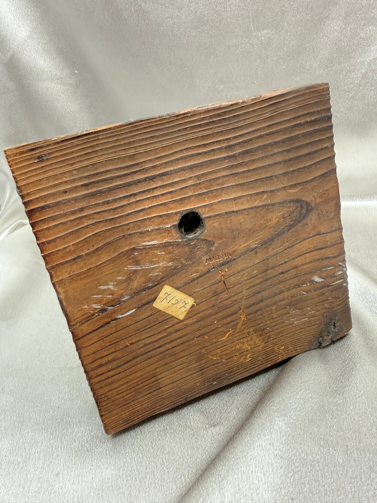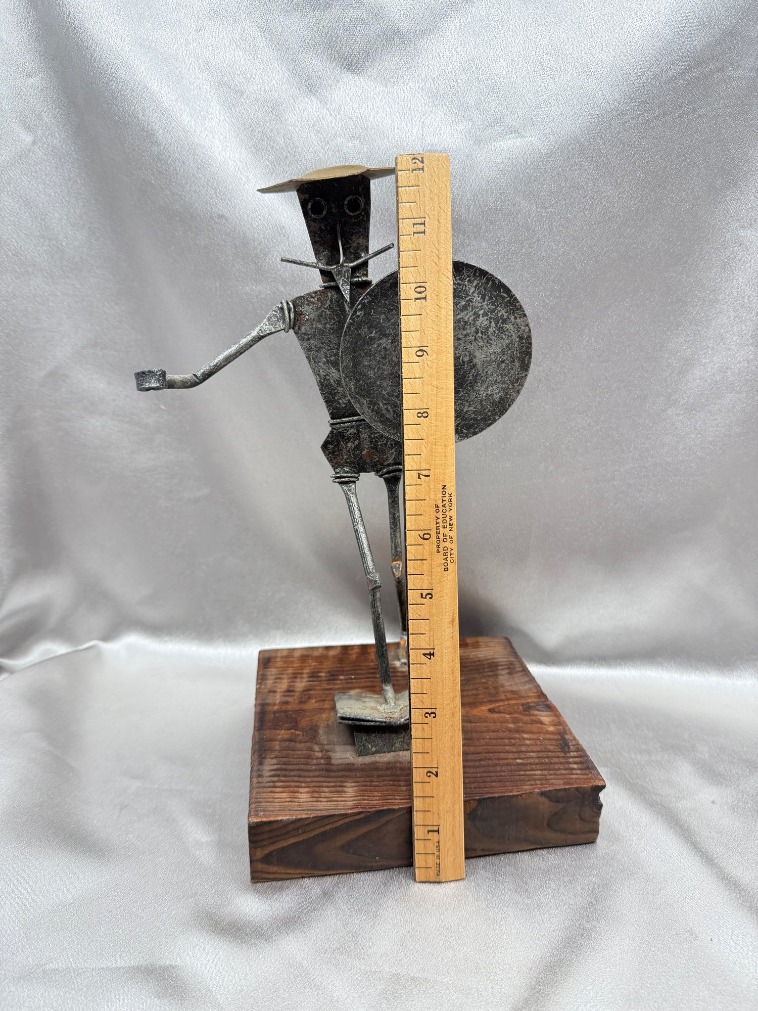 (A-61) VINTAGE MID CENTURY MODERN BRUTALIST DON QUIXOTE SCULPTURE SCRAP METAL-WOOD BASE-SPAIN-MISSING SPEAR