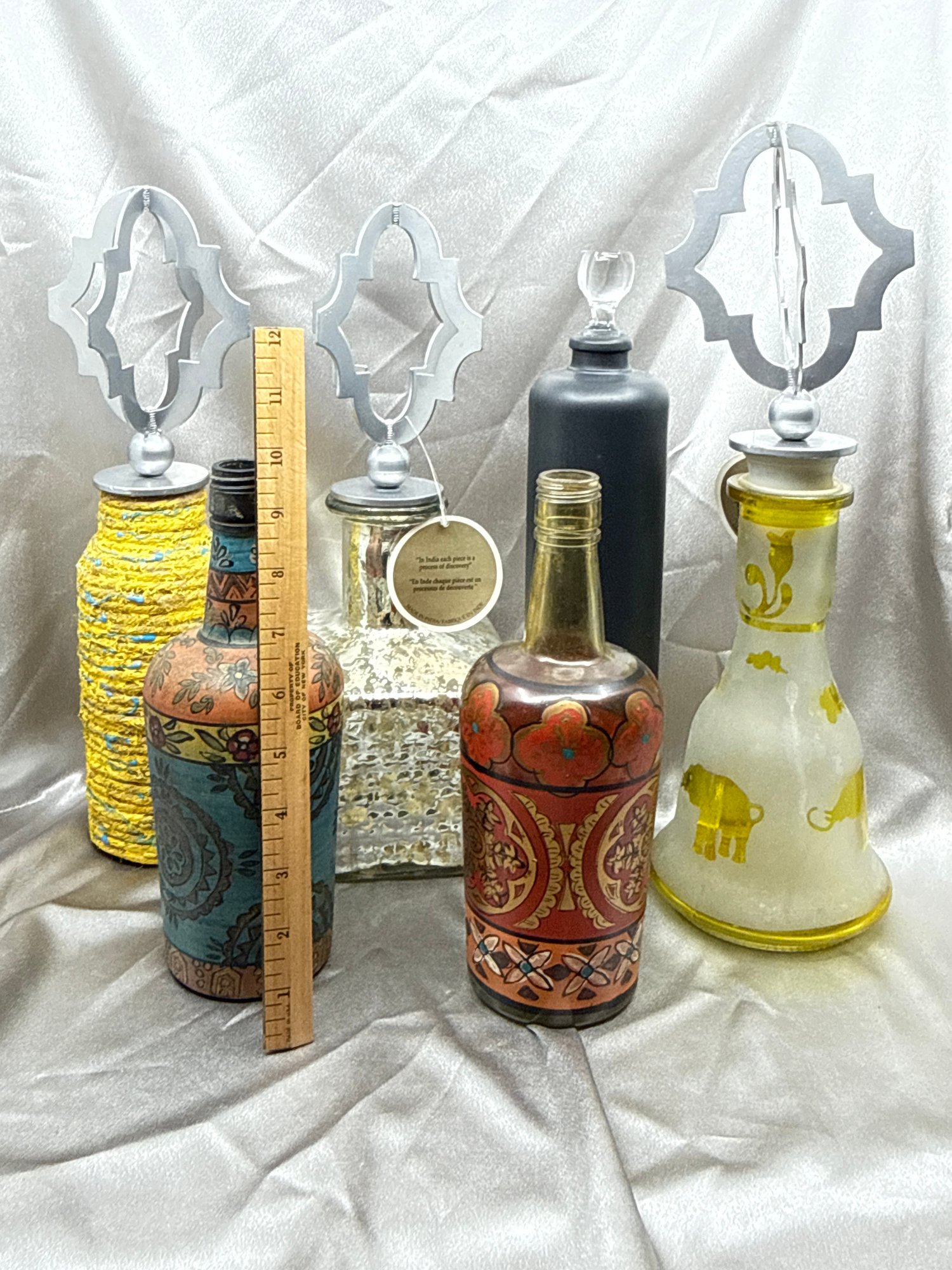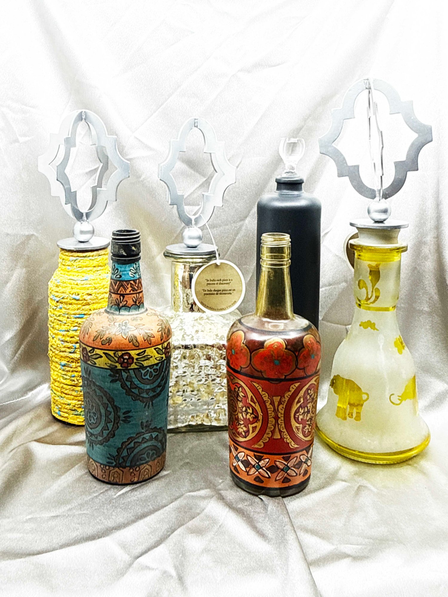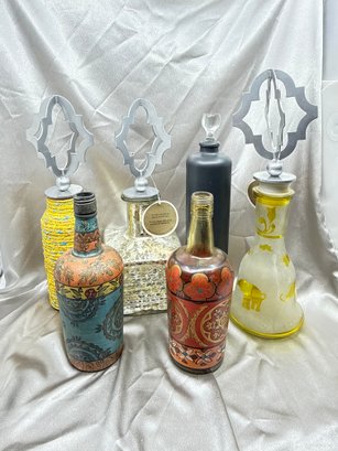 (A-61) VINTAGE SET OF 6 DECORATIVE BOTTLES-SOME WITH LIDS