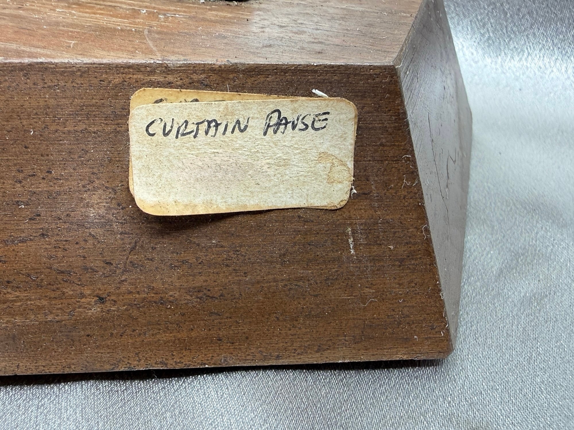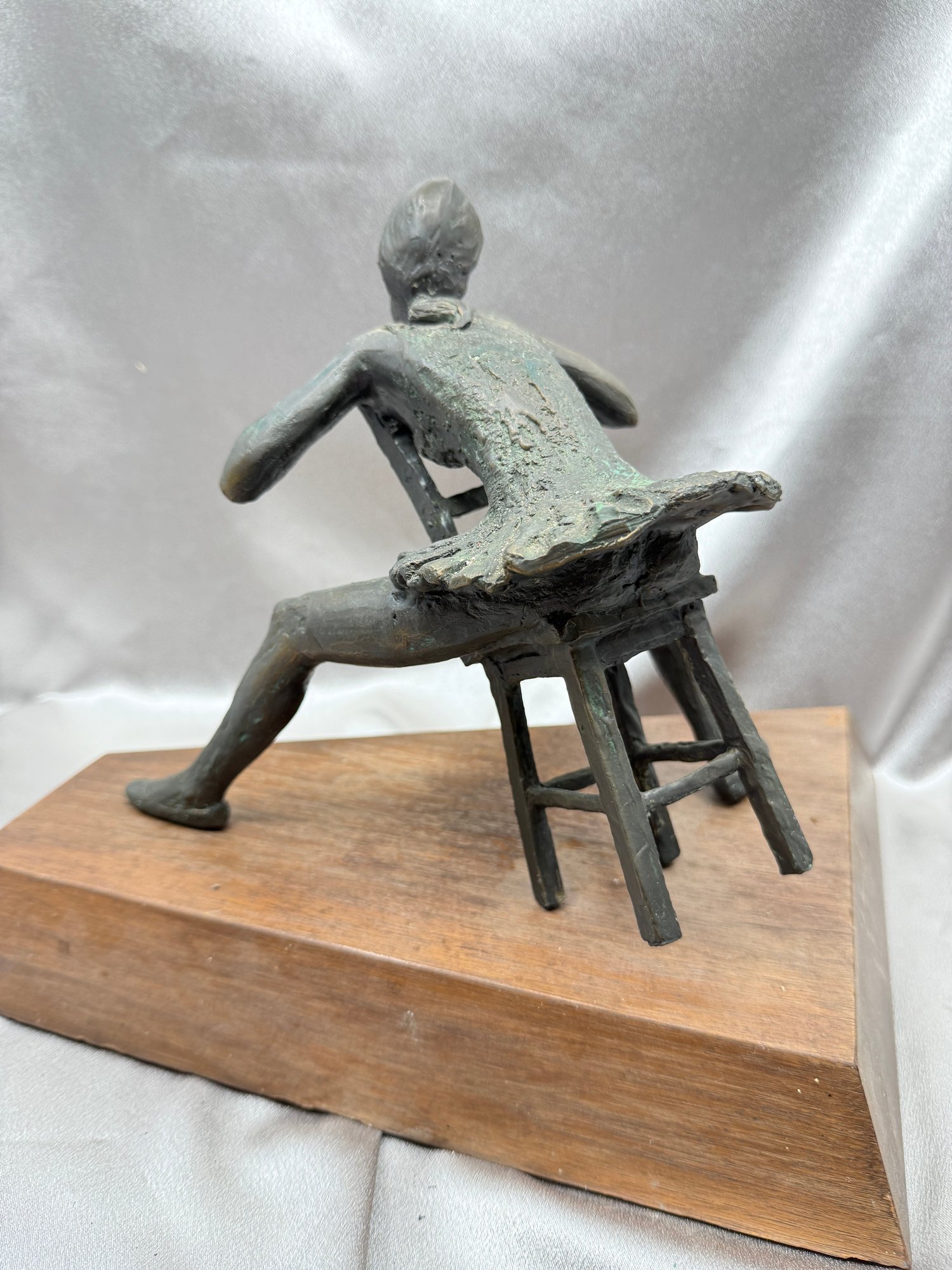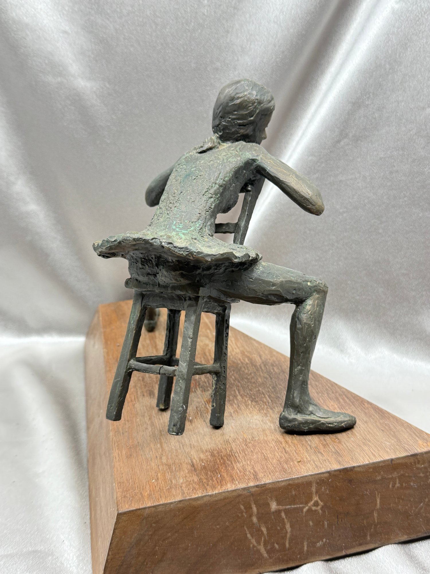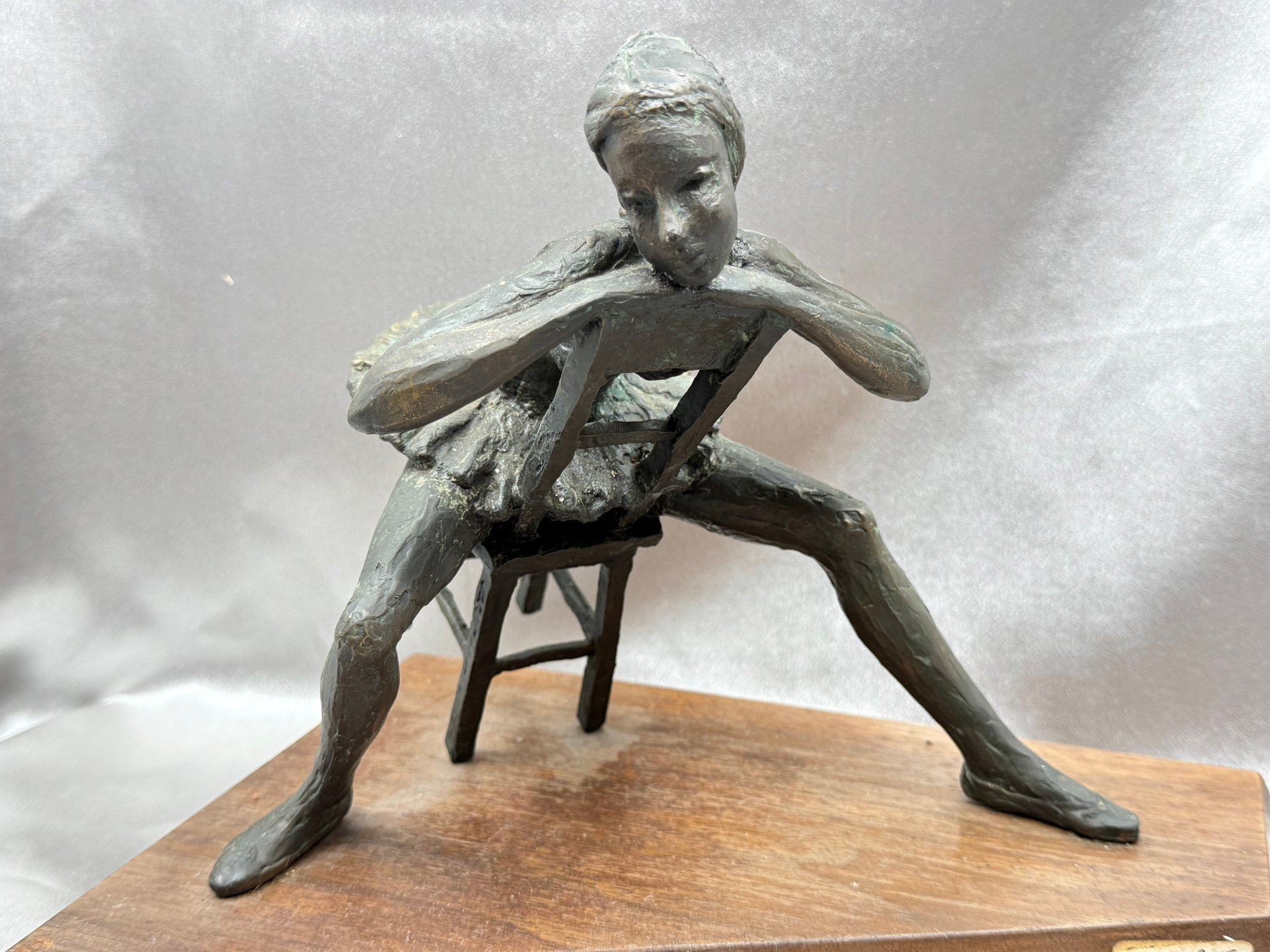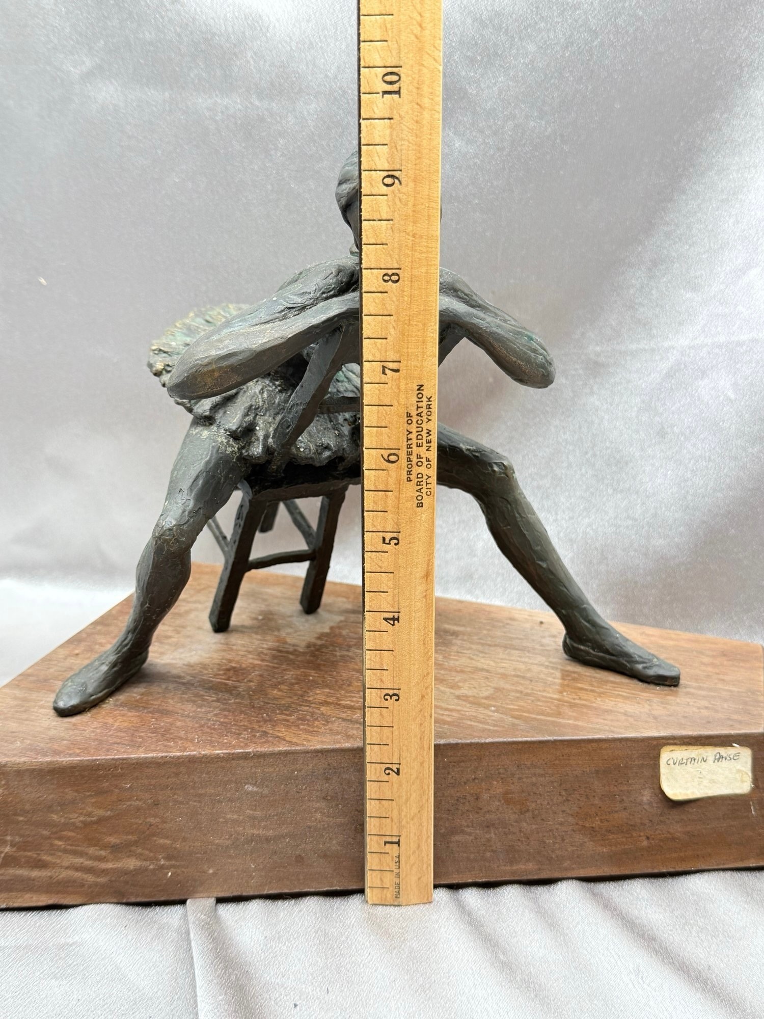 (A-64) VINTAGE BRONZE SCULPTURE BALLARINA SEATED LABELED-"CURTAIN PAUSE"-WOOD BASE
