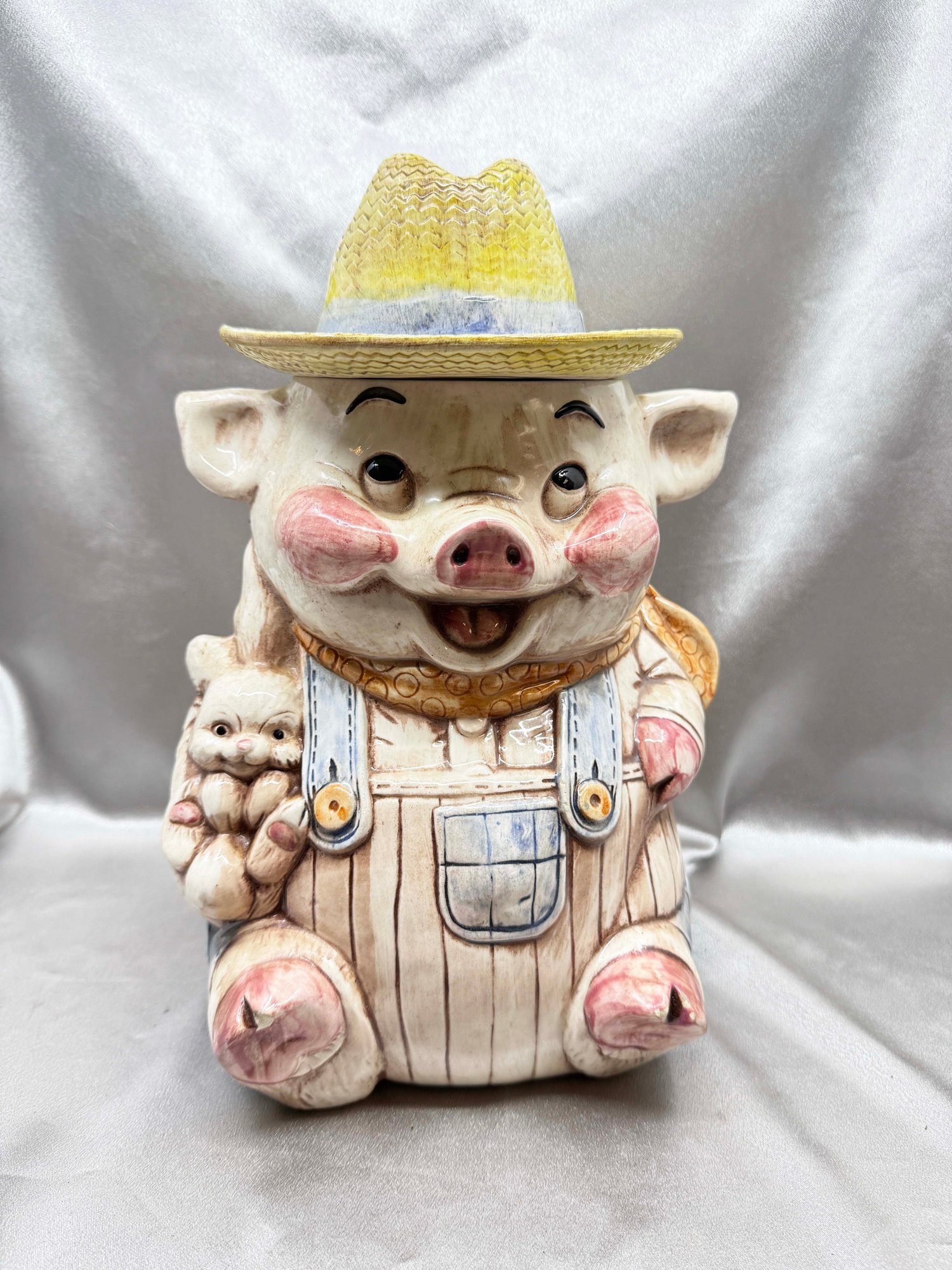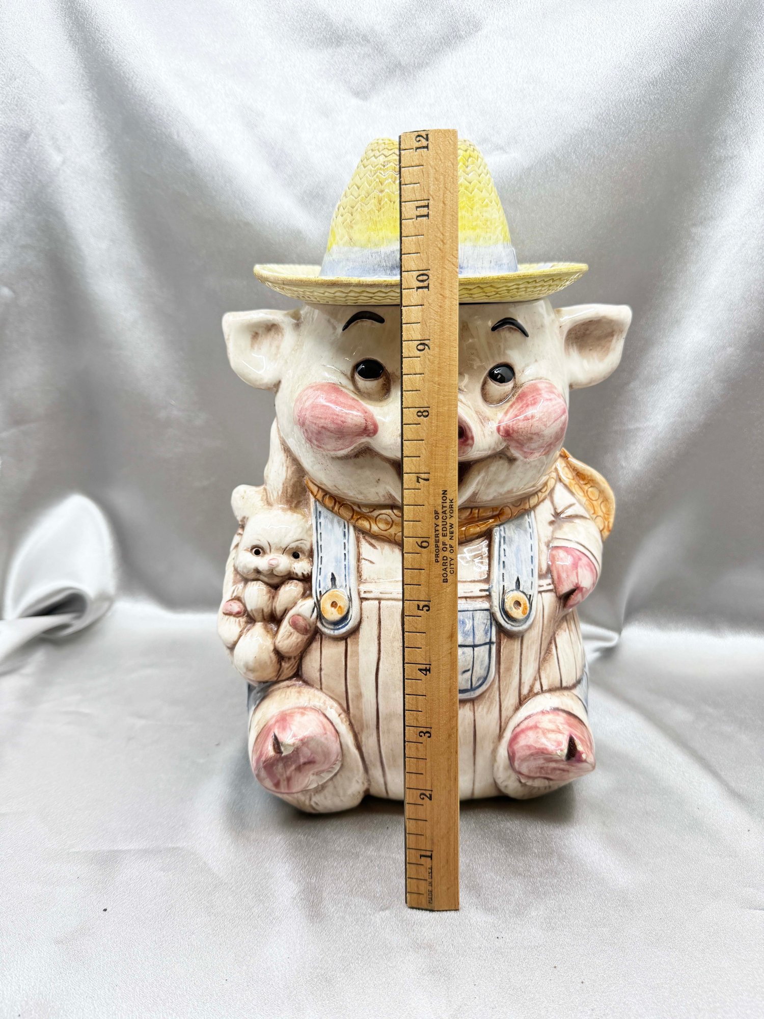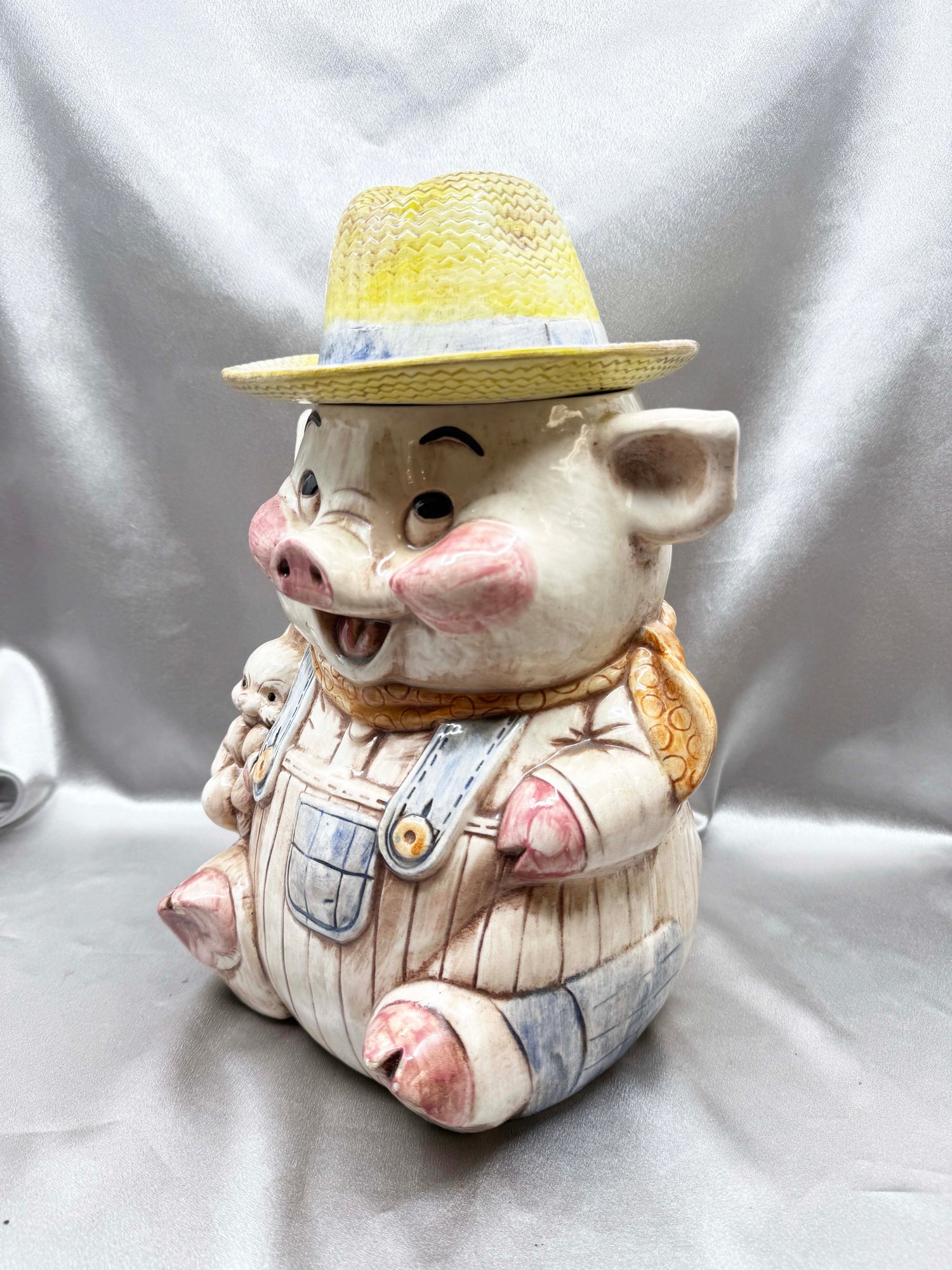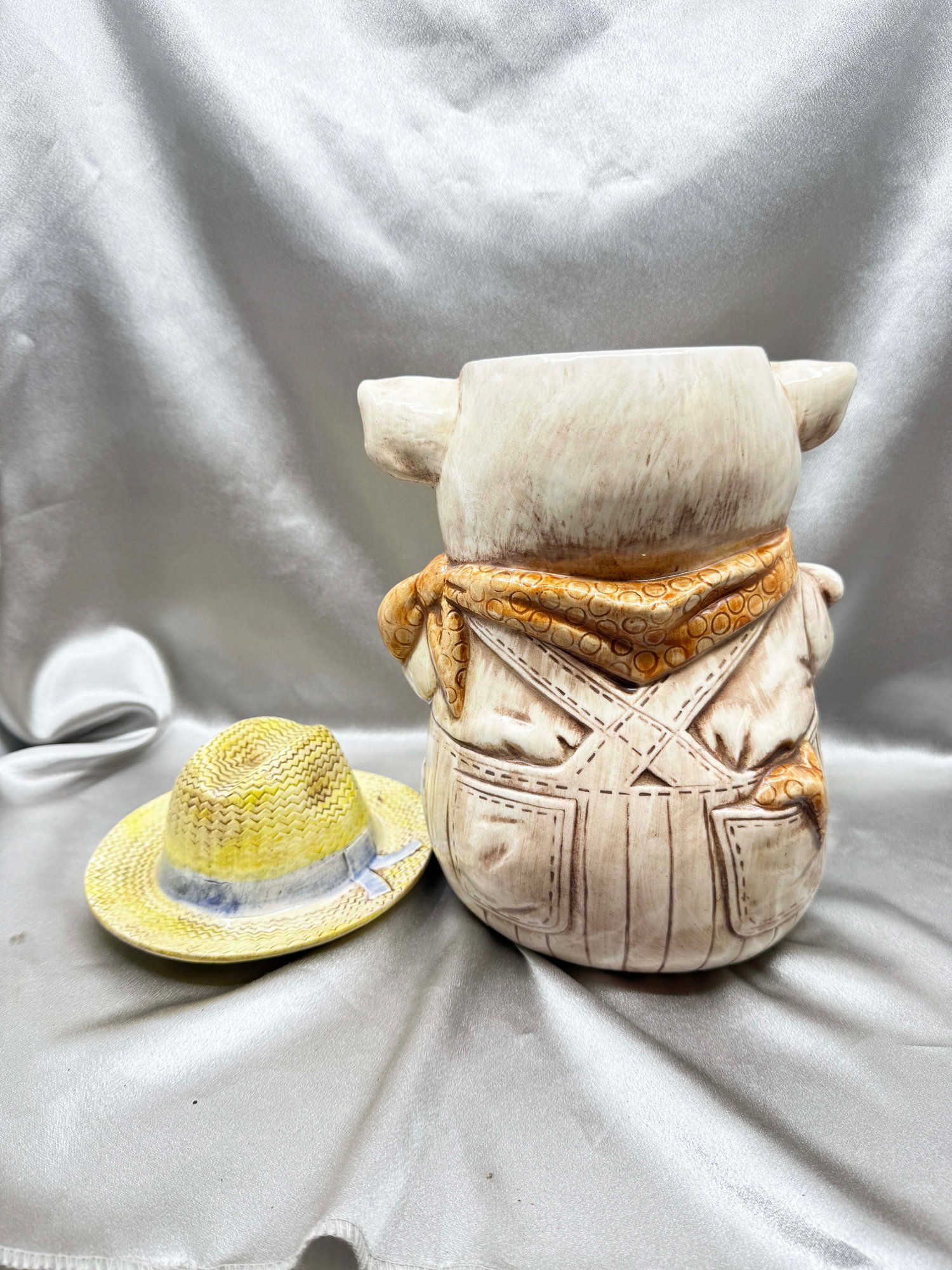(A-67) VINTAGE 1960'S TREASURE CRAFT FARMER PIG CERAMIC COOKIE JAR-USA