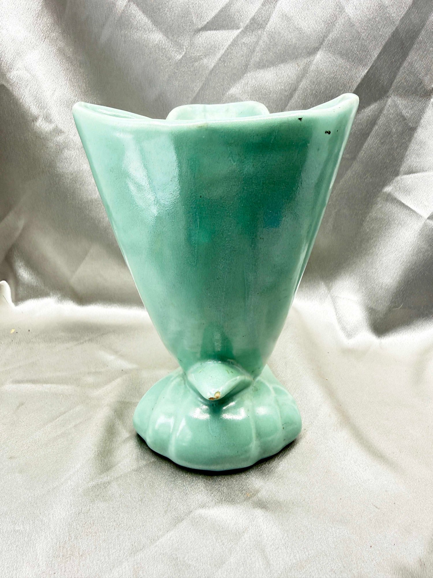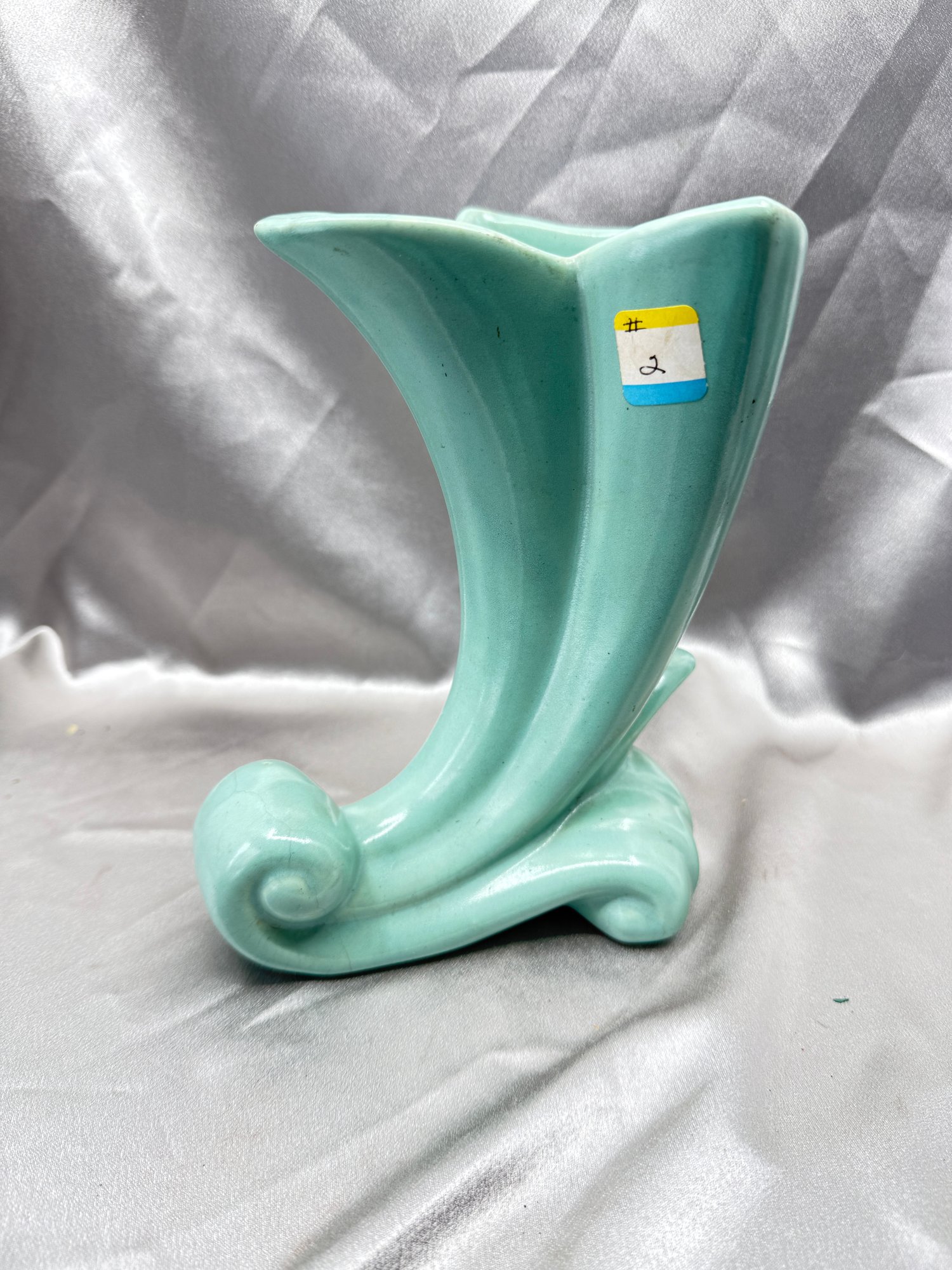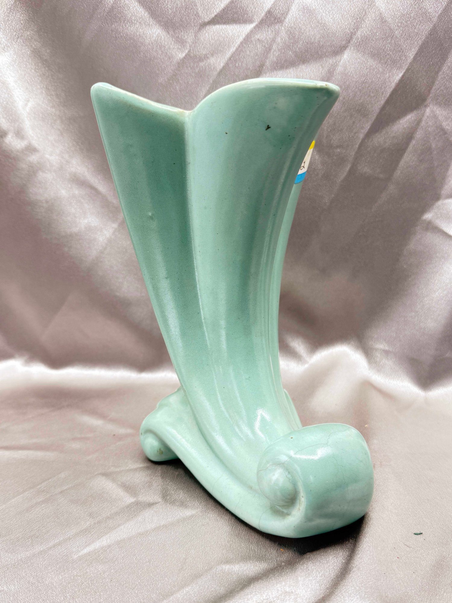 (A-67) VINTAGE CORNUCOPIA CERAMIC VASE-ART DECO-APPROX. 8" TALL