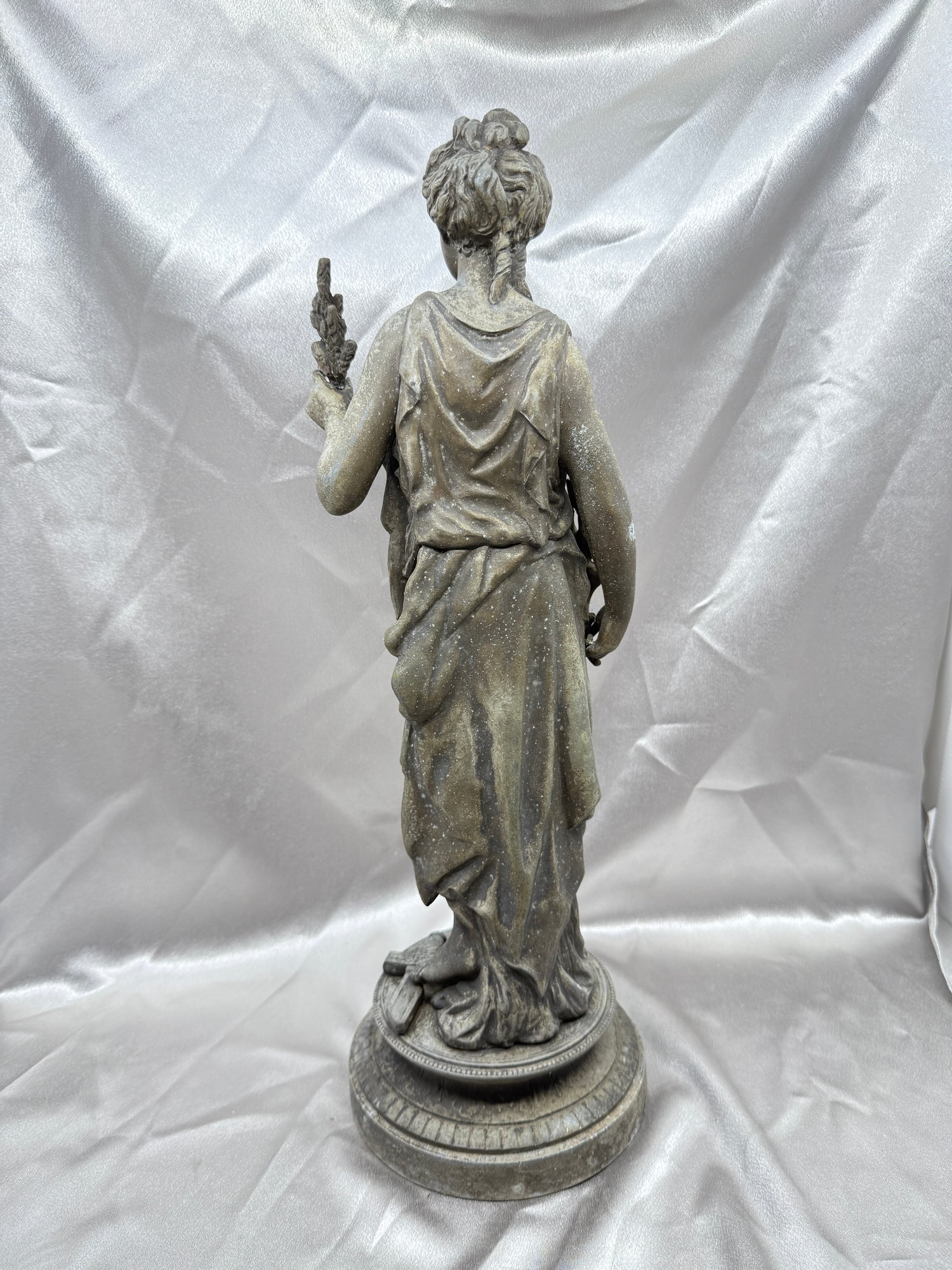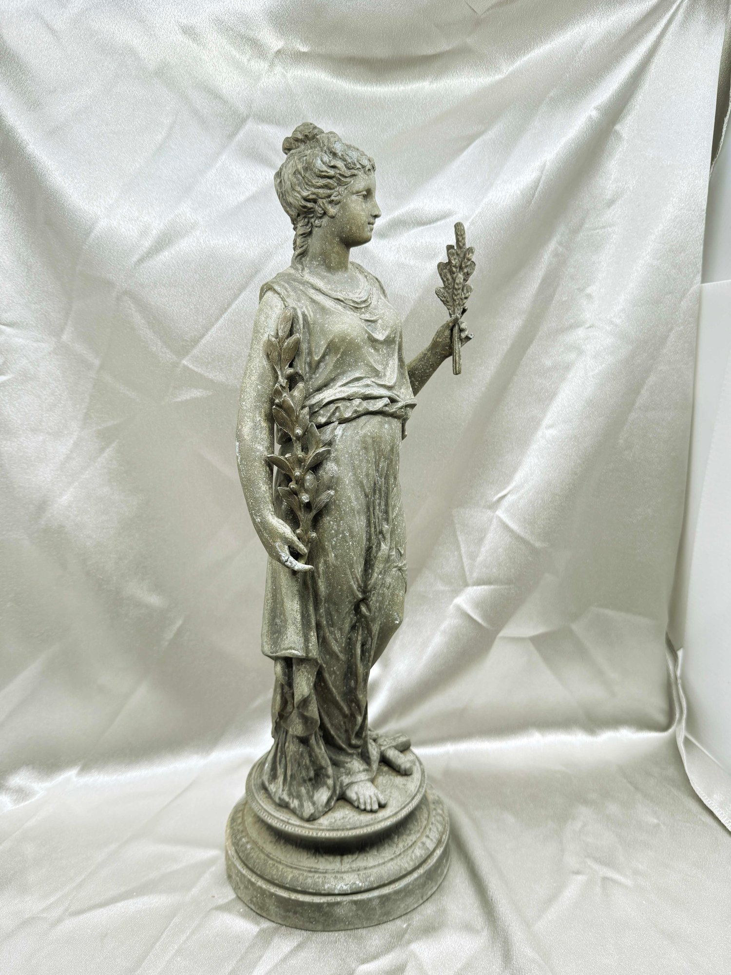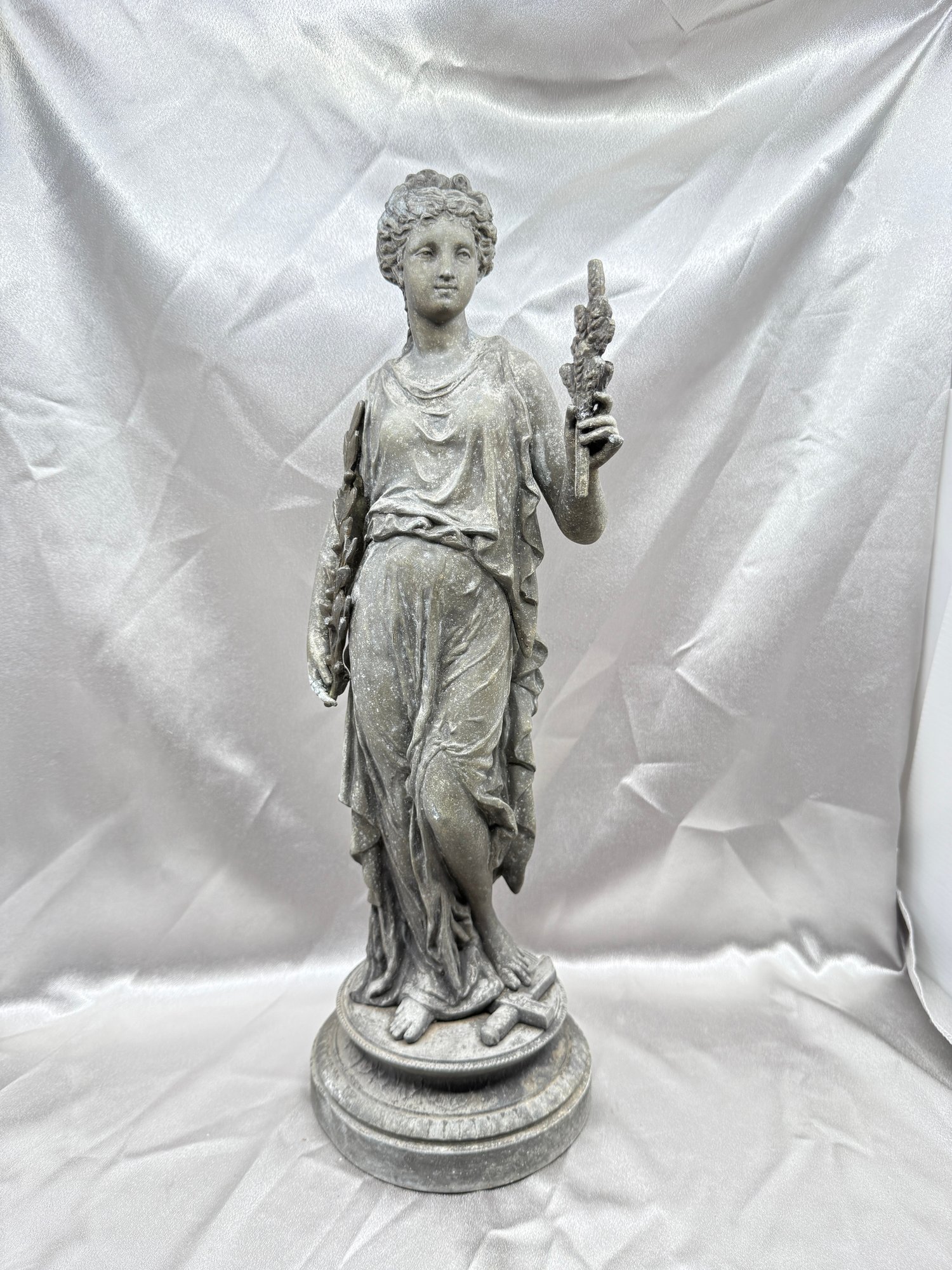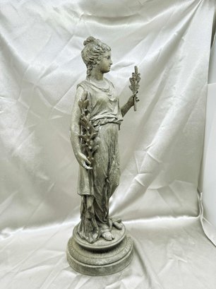 (A-68) VINTAGE GARDEN STATUE-WEATHERED-DEPICTING A CLASSICAL GODDESS-APPROX. 18" TALL-SEE IMAGES FOR CONDITION