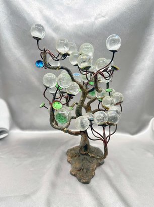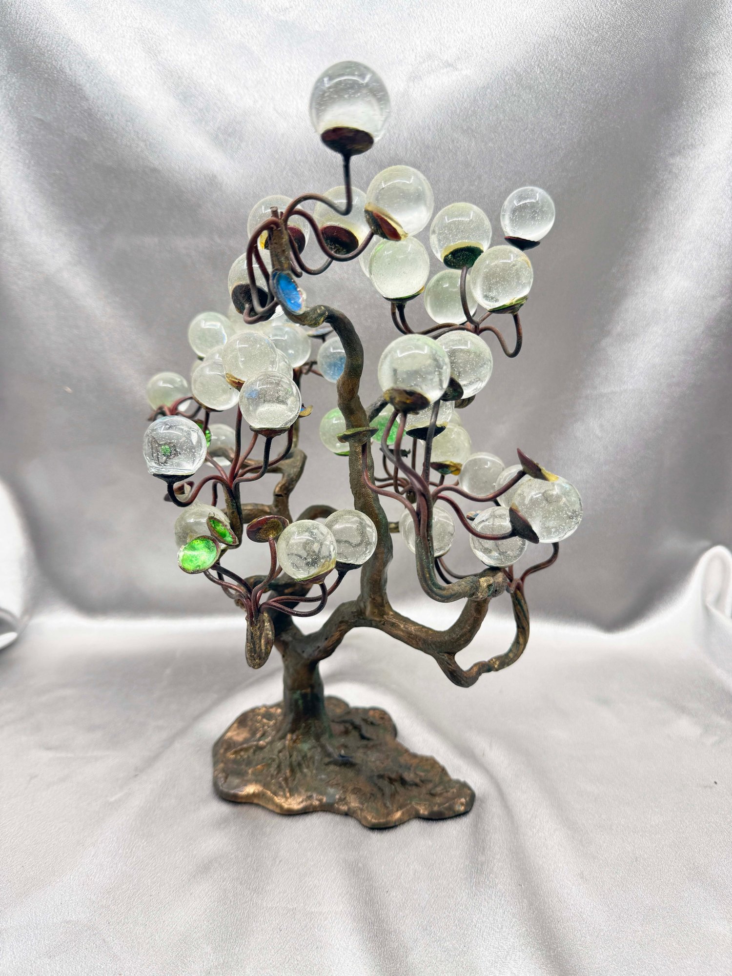 (A-68) VINTAGE SIGNED BIJAN BRONZE SIGNED SCULPTURE W/CLEAR GLASS BALLS -SOME MISSING