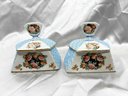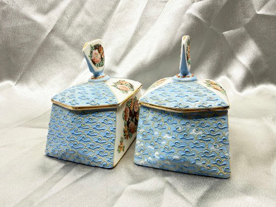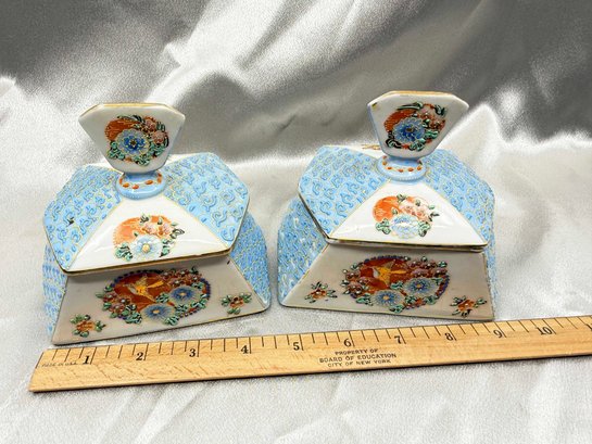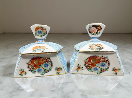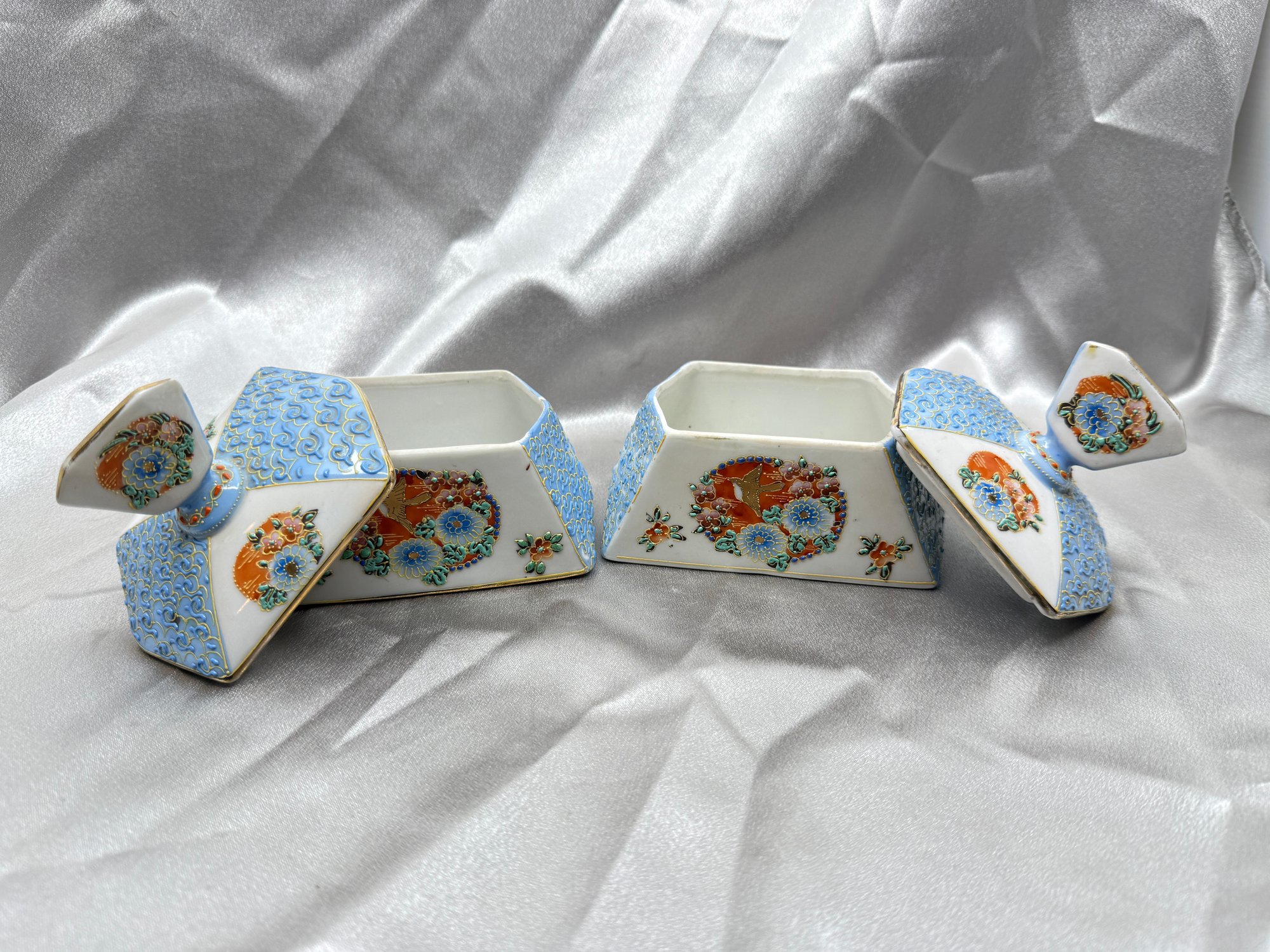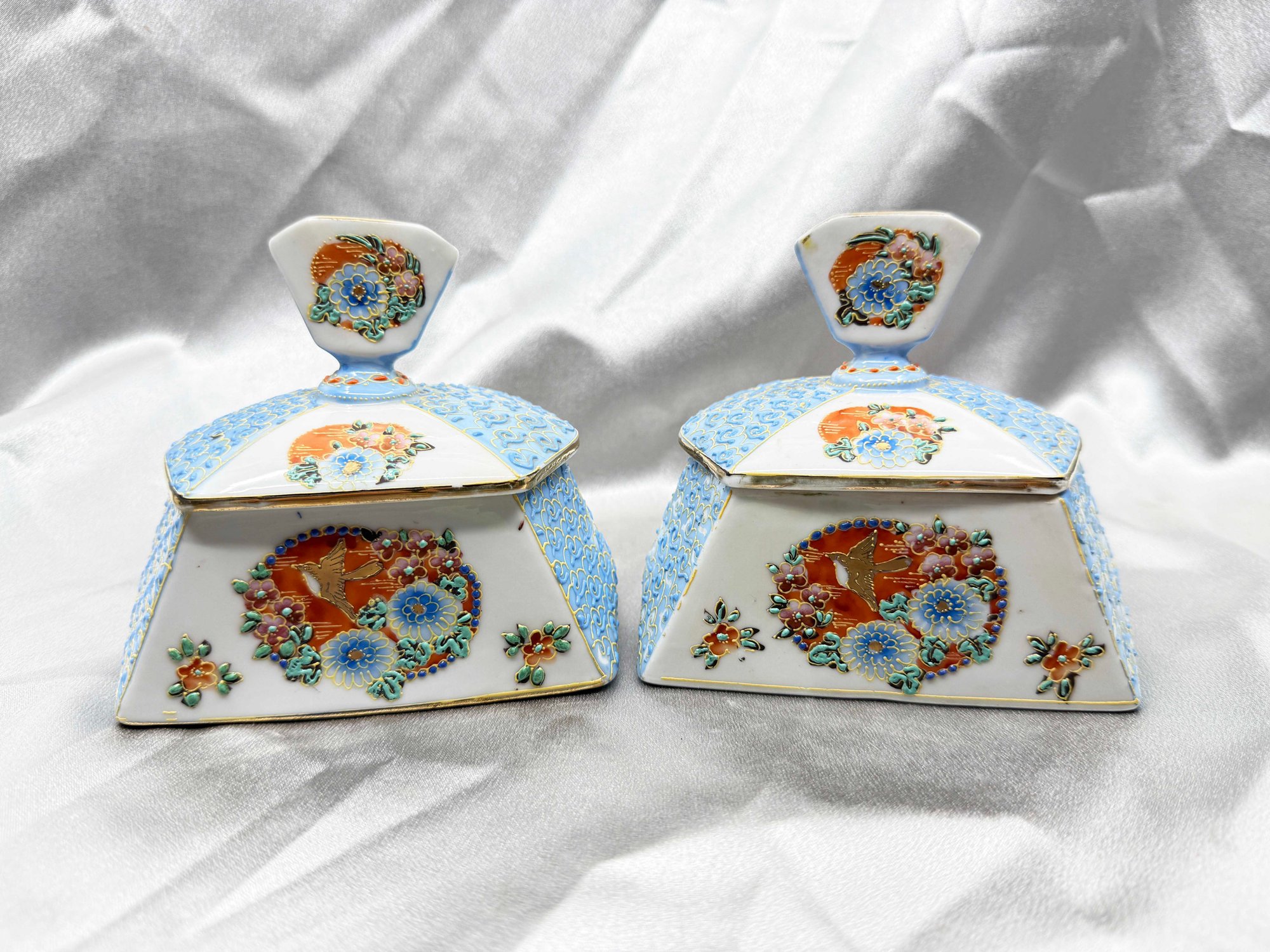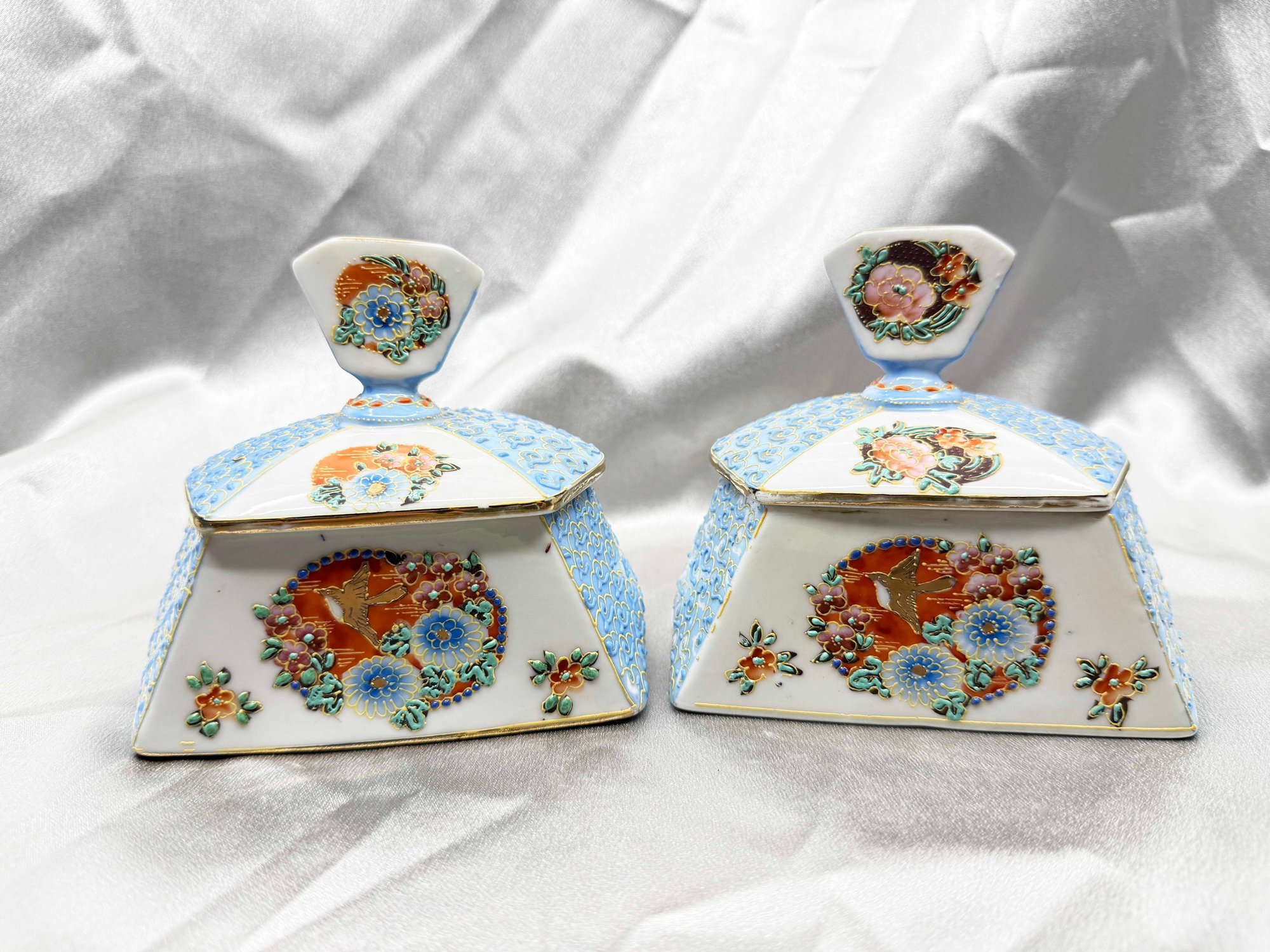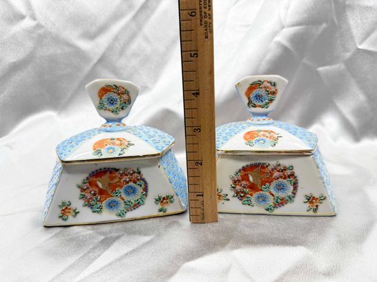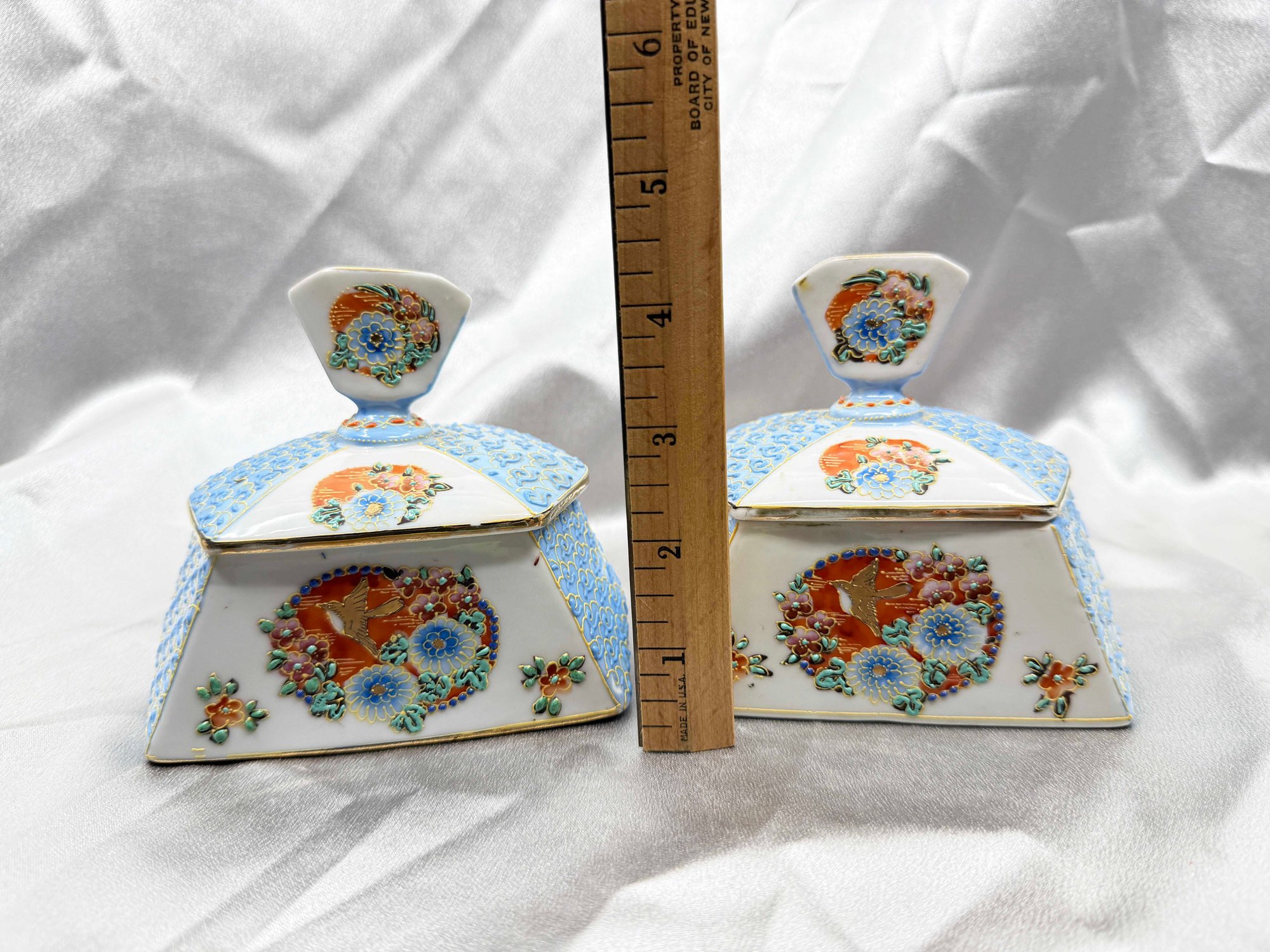 (A-7) VINTAGE PAIR OF MEPOCO HAND PAINTED LIDDED TRINKET BOXES-JAPAN-SMALL CHIP ON 1
