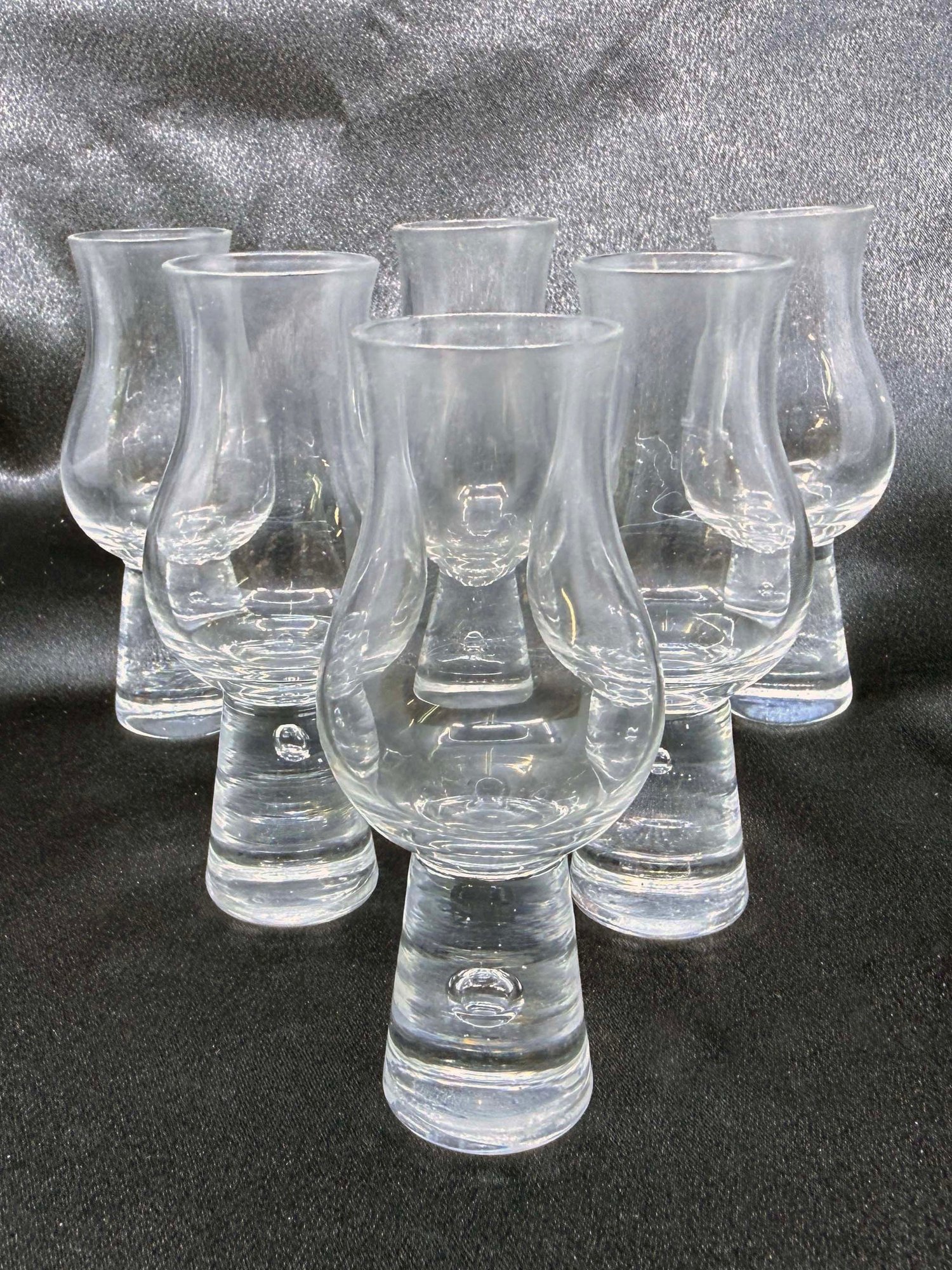(A-70) VINTAGE SET OF 6 LEAD FREE ALCOHOL TASTING FOOTED GLASSES