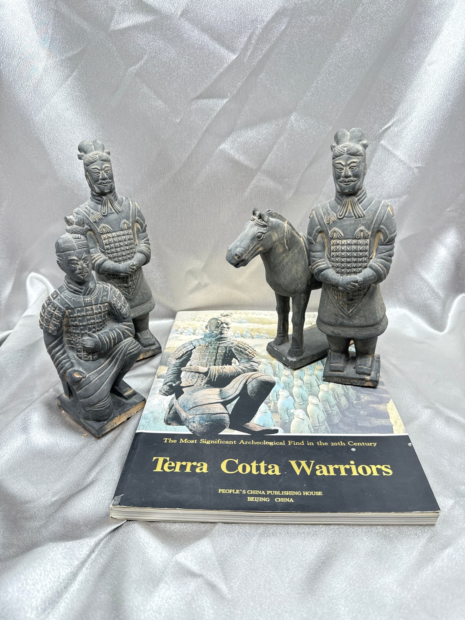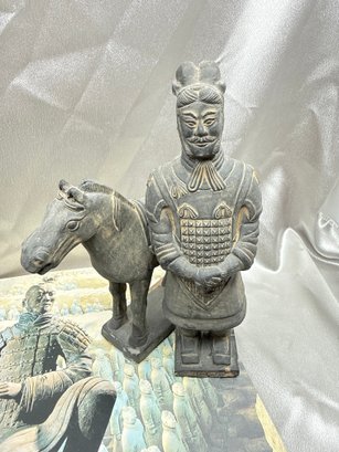 (A-70B) VINTAGE SET OF TERRACOTTA WARRIOR FIGURINES-WITH BOOKLET AS SHOWN