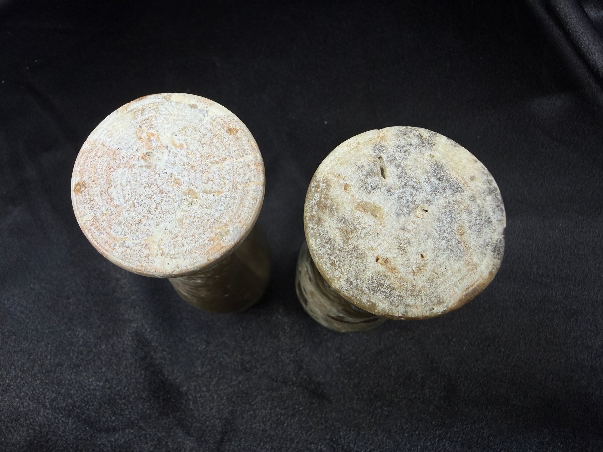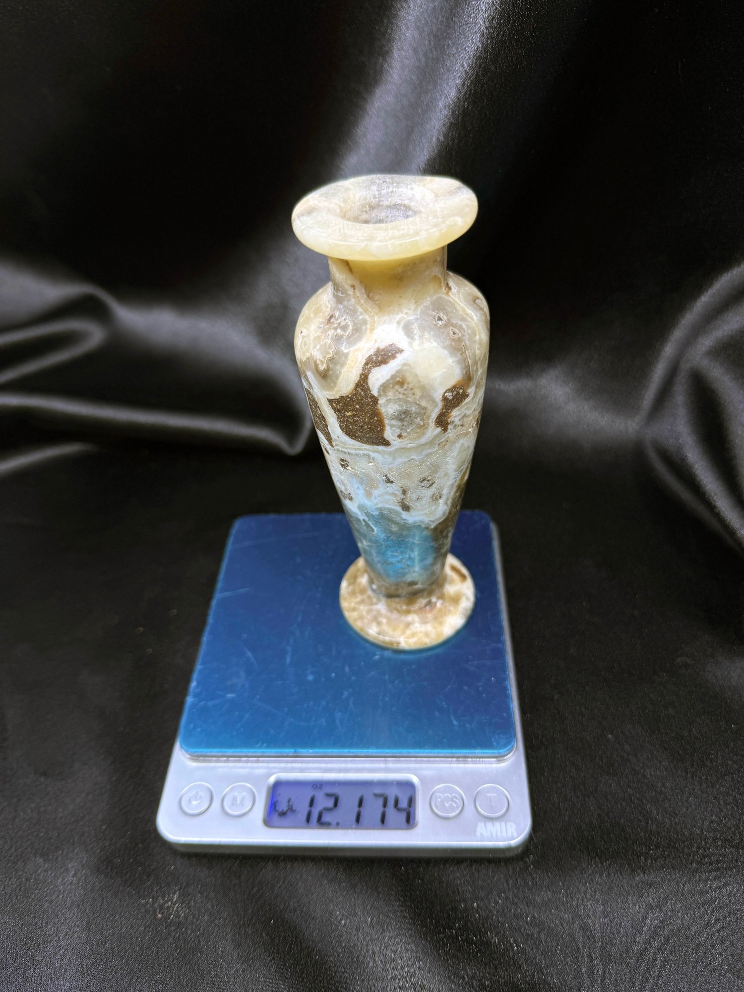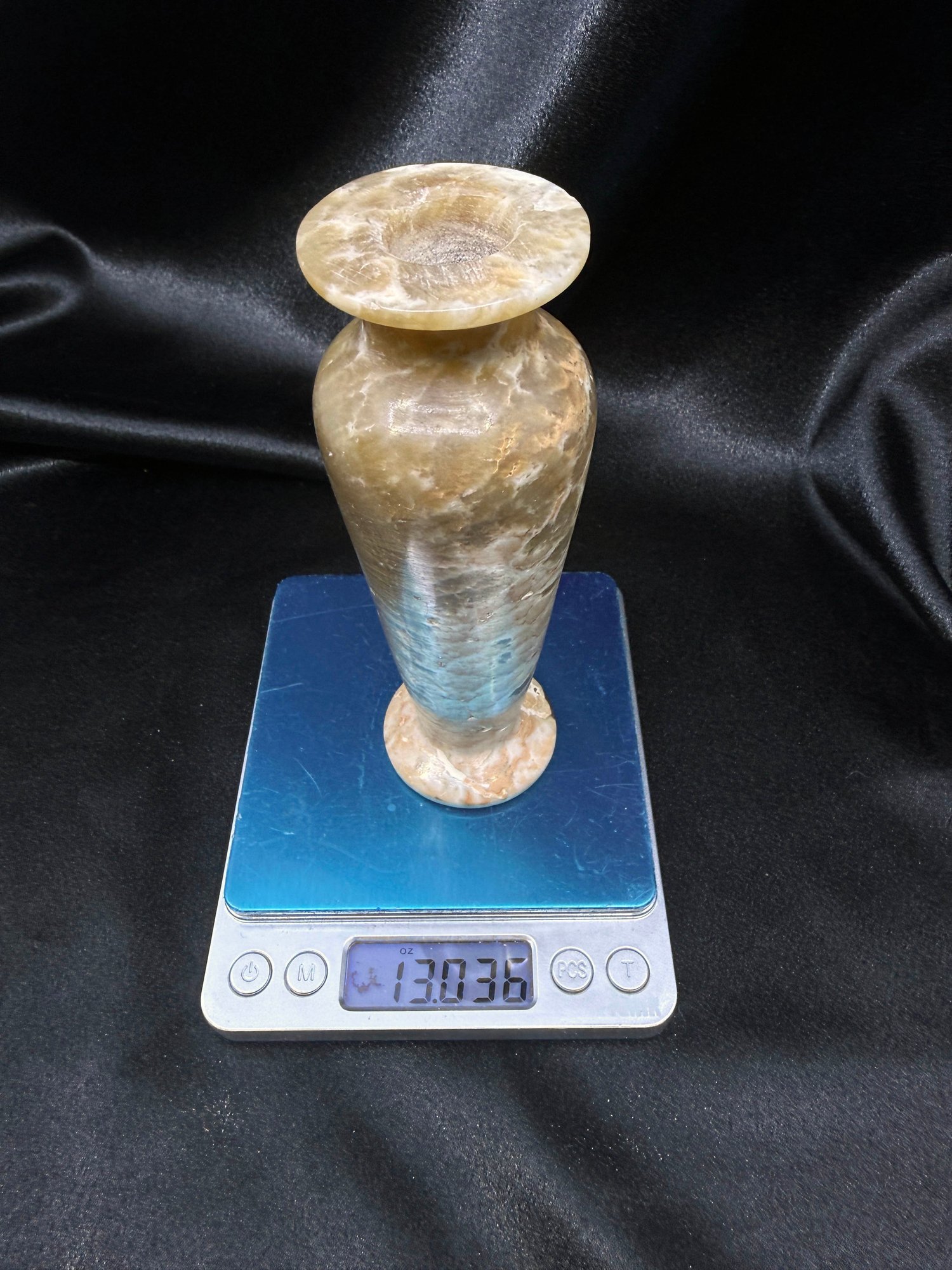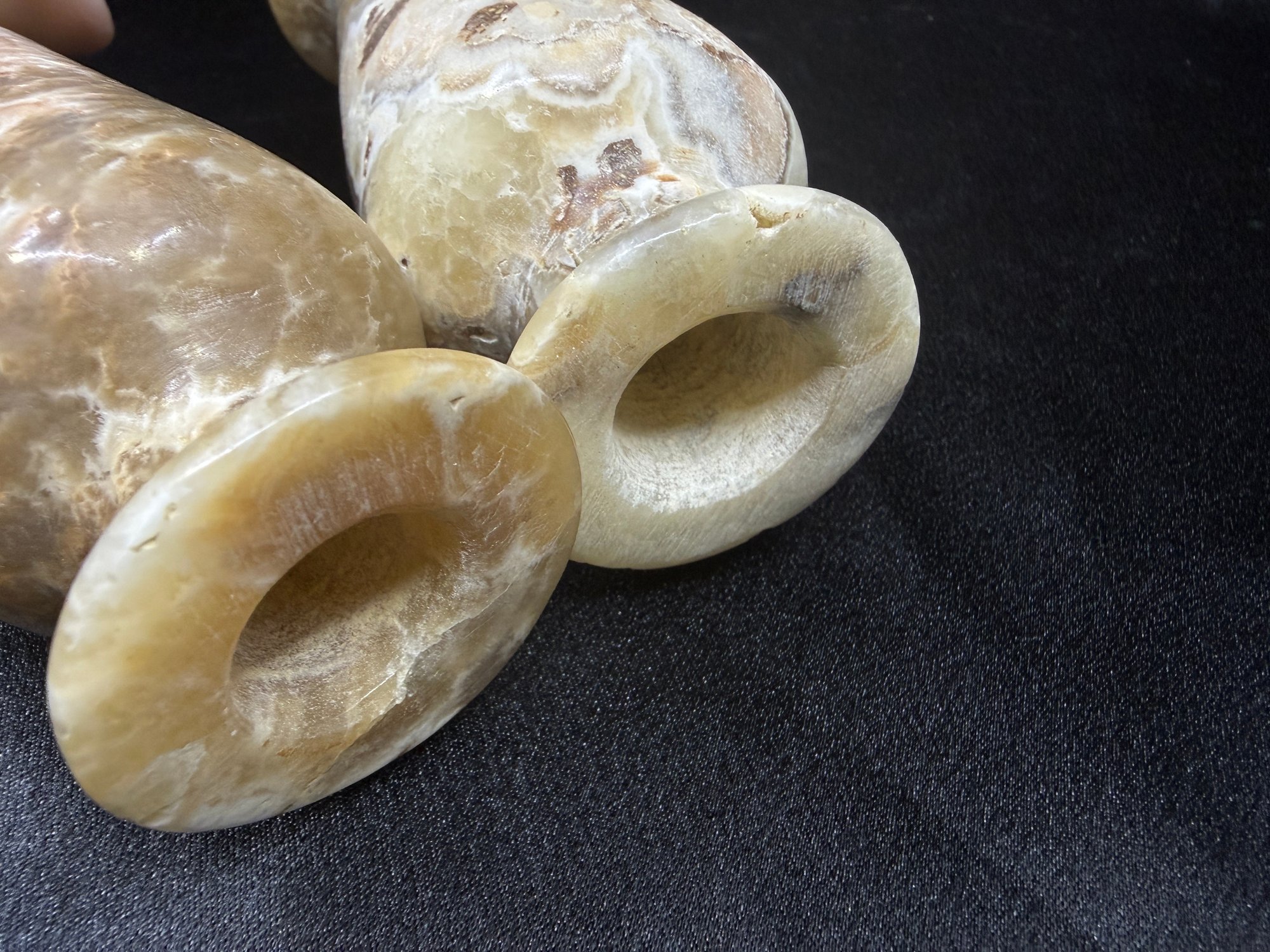 (A-73) VINTAGE MINIATURE PAIR OF HAND CARVED ONYX MARBLE TABLE VASES