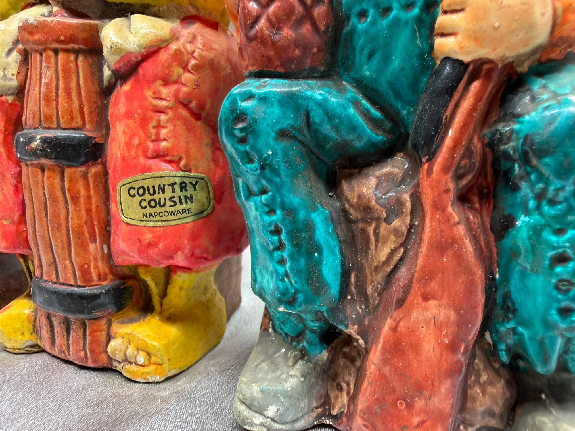 (A-74B) SET OF THREE NAPCOWARE "COUNTRY COUSINS" FIGURAL BANKS