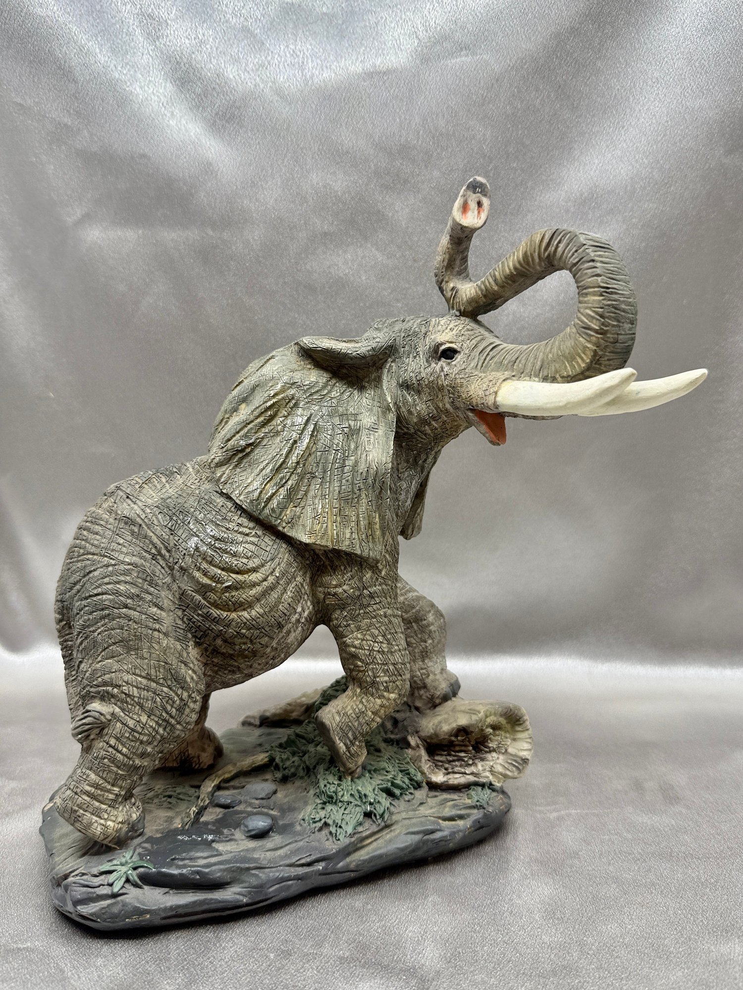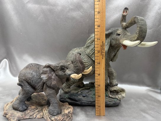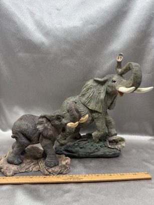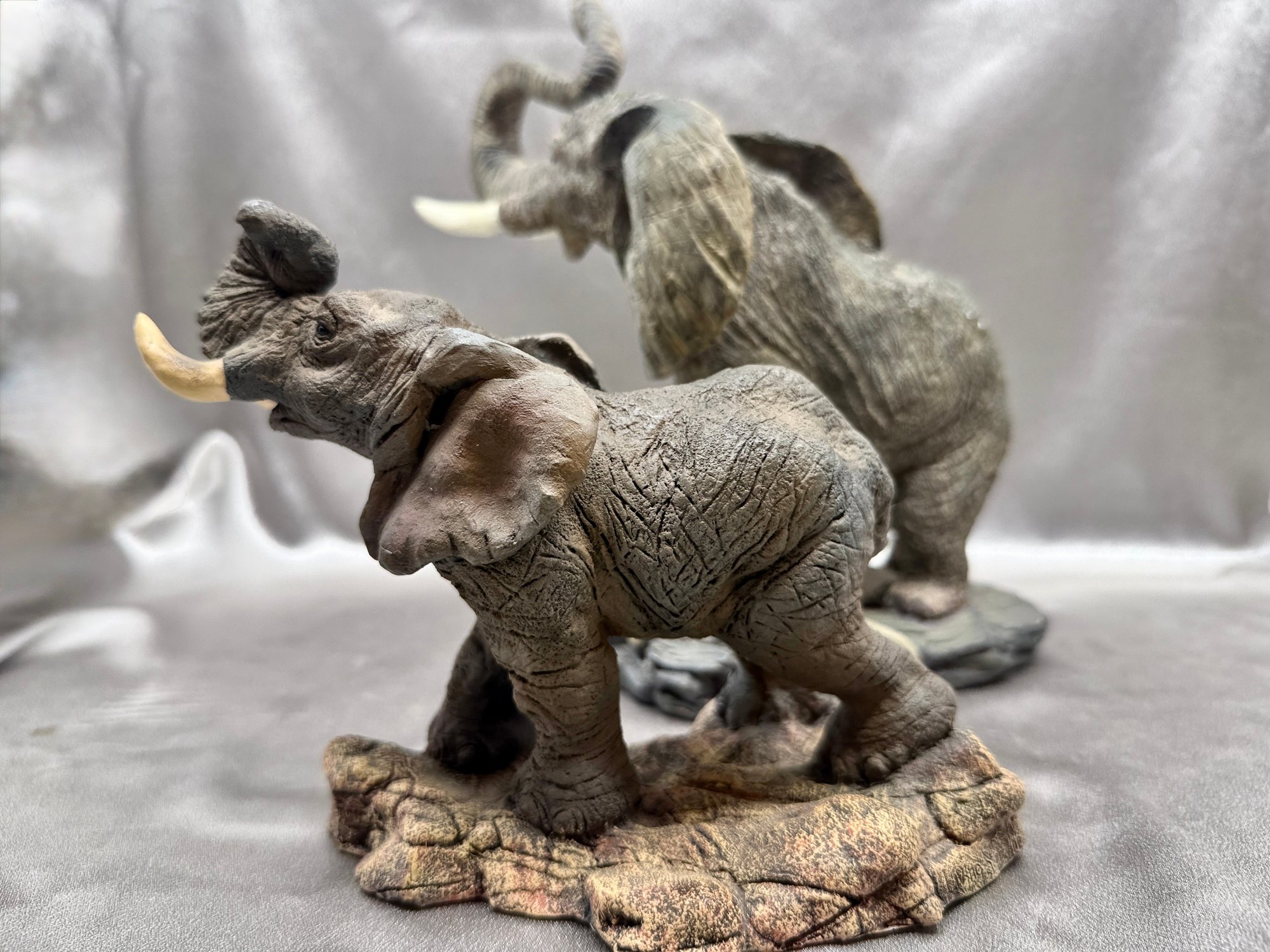 (A-77) VINTAGE PAIR OF ELEPHANT SCULPTURES, LIVING STONE -9" BY 14"