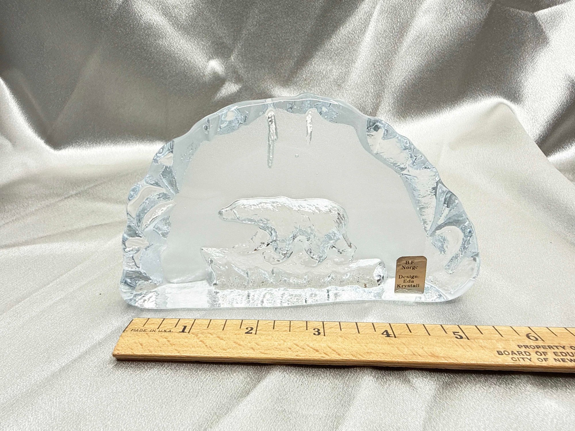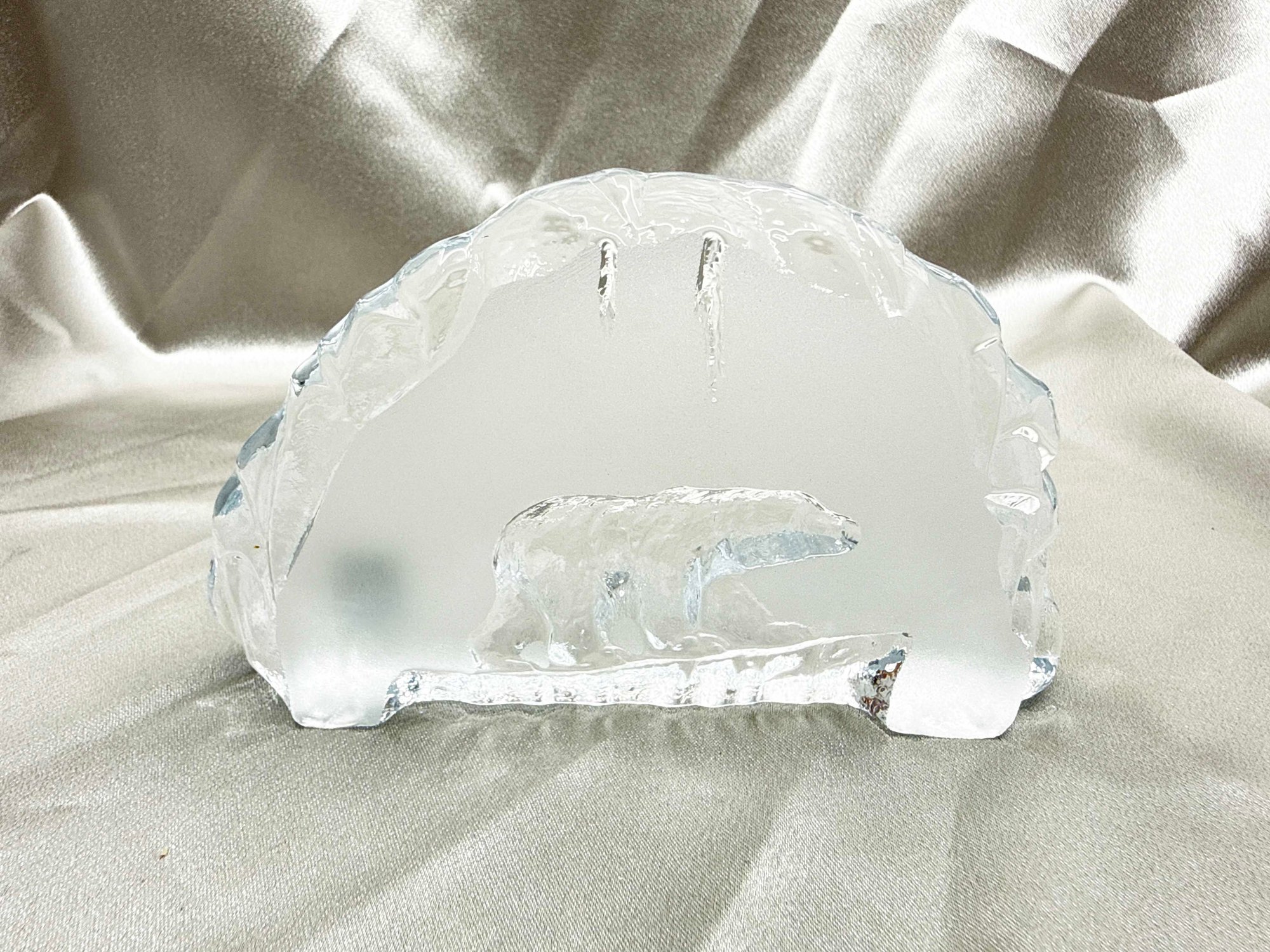 (A-78) VINTAGE ART GLASS SCULPTURE BY EDA KRYSTALL-POLAR BEAR-SWEDEN