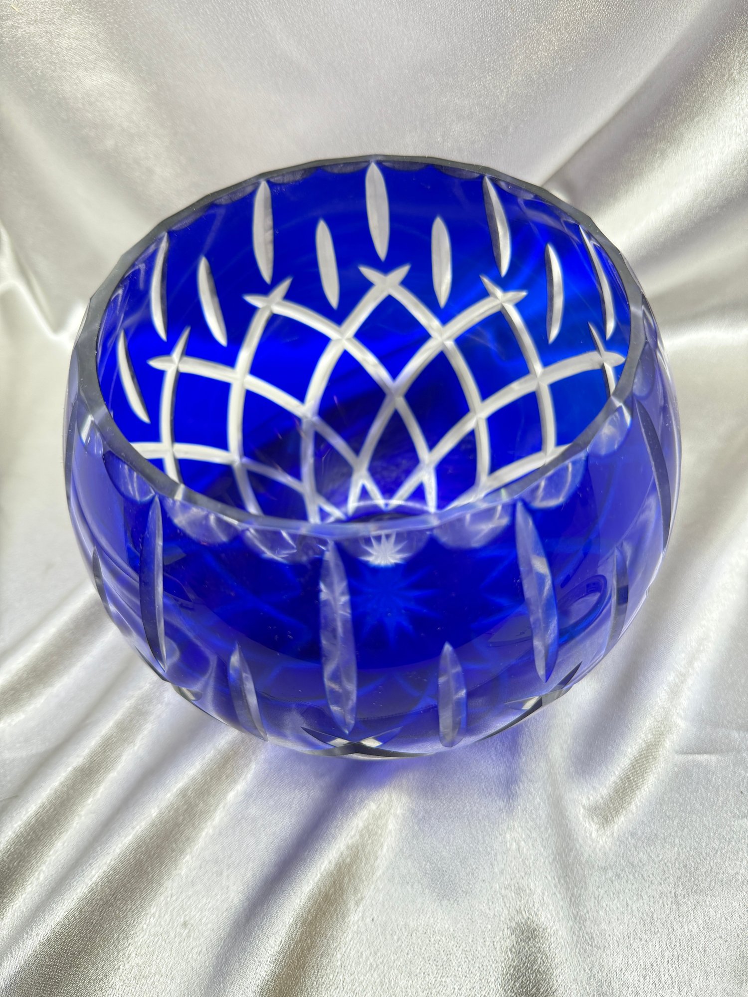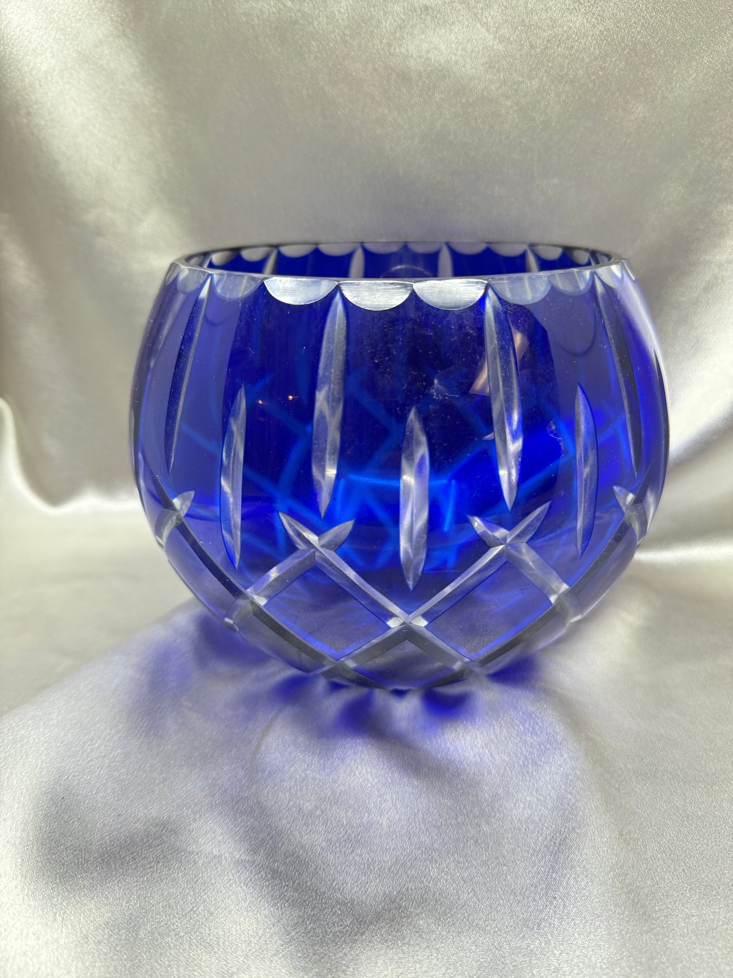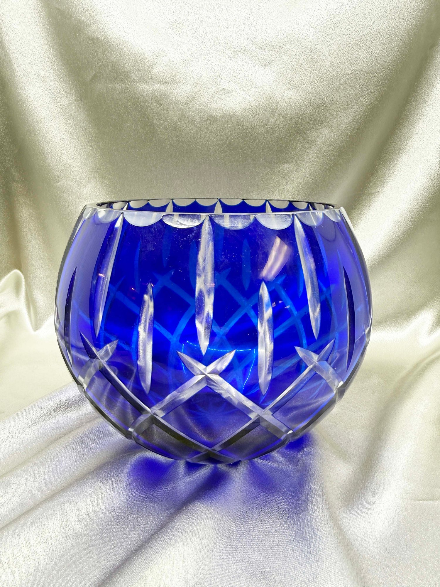 (A-78) VINTAGE GORHAM LADY ANNE SAPPHIRE BLUE CUT TO CLEAR COBALT BLUE CRYSTAL BOWL