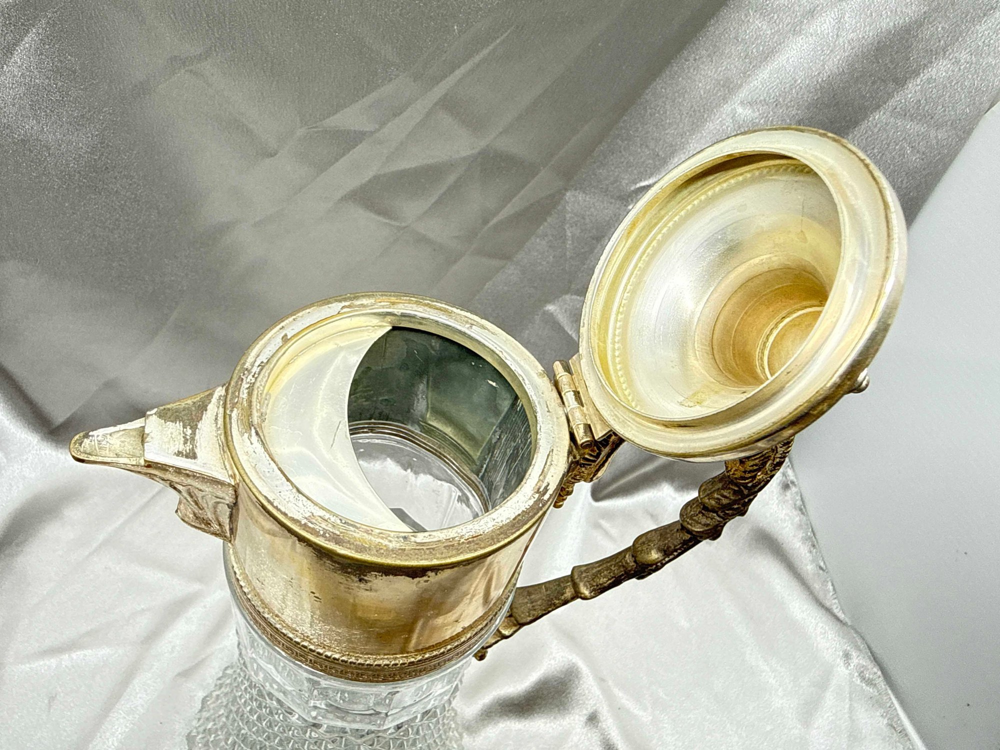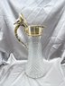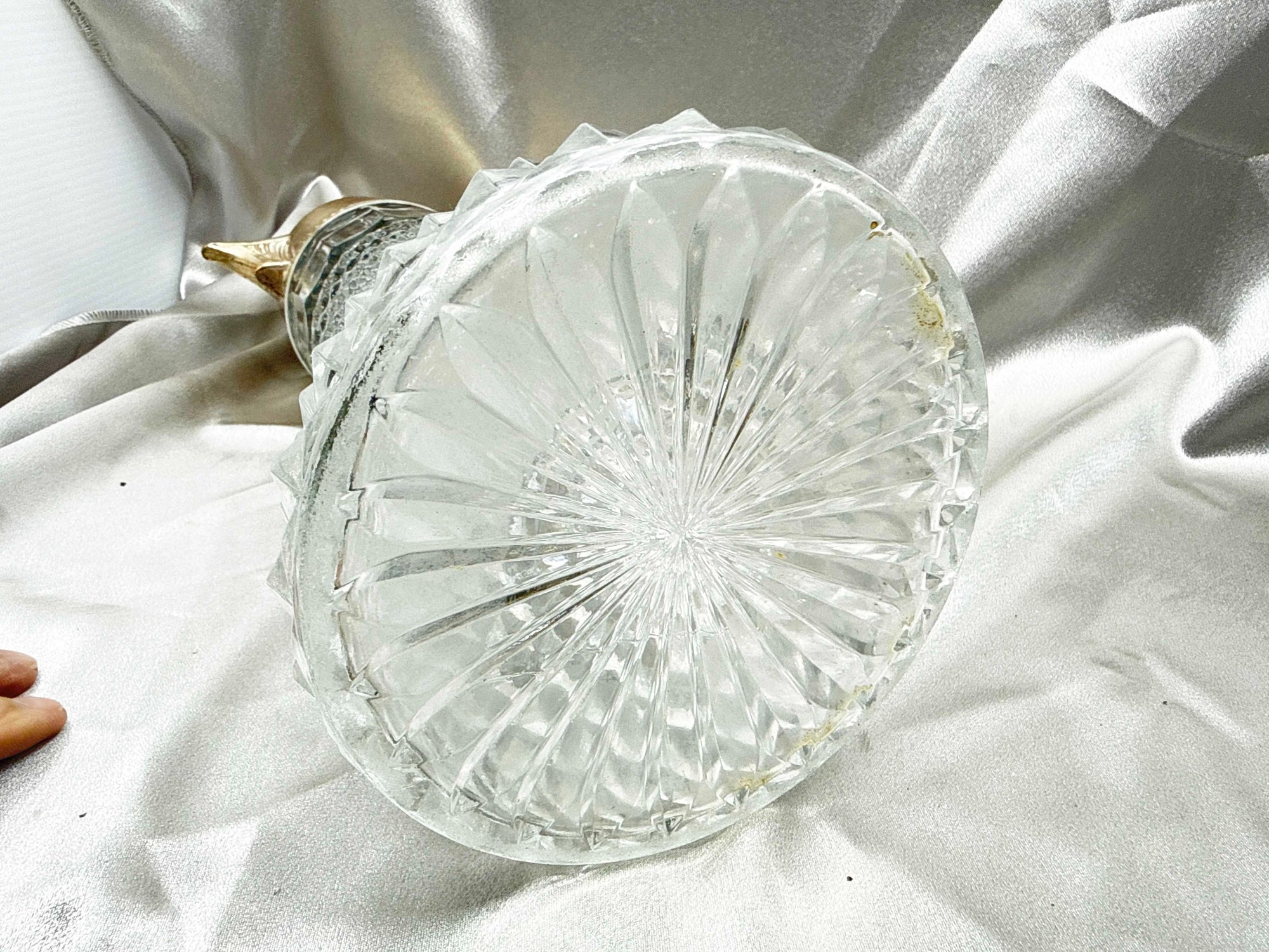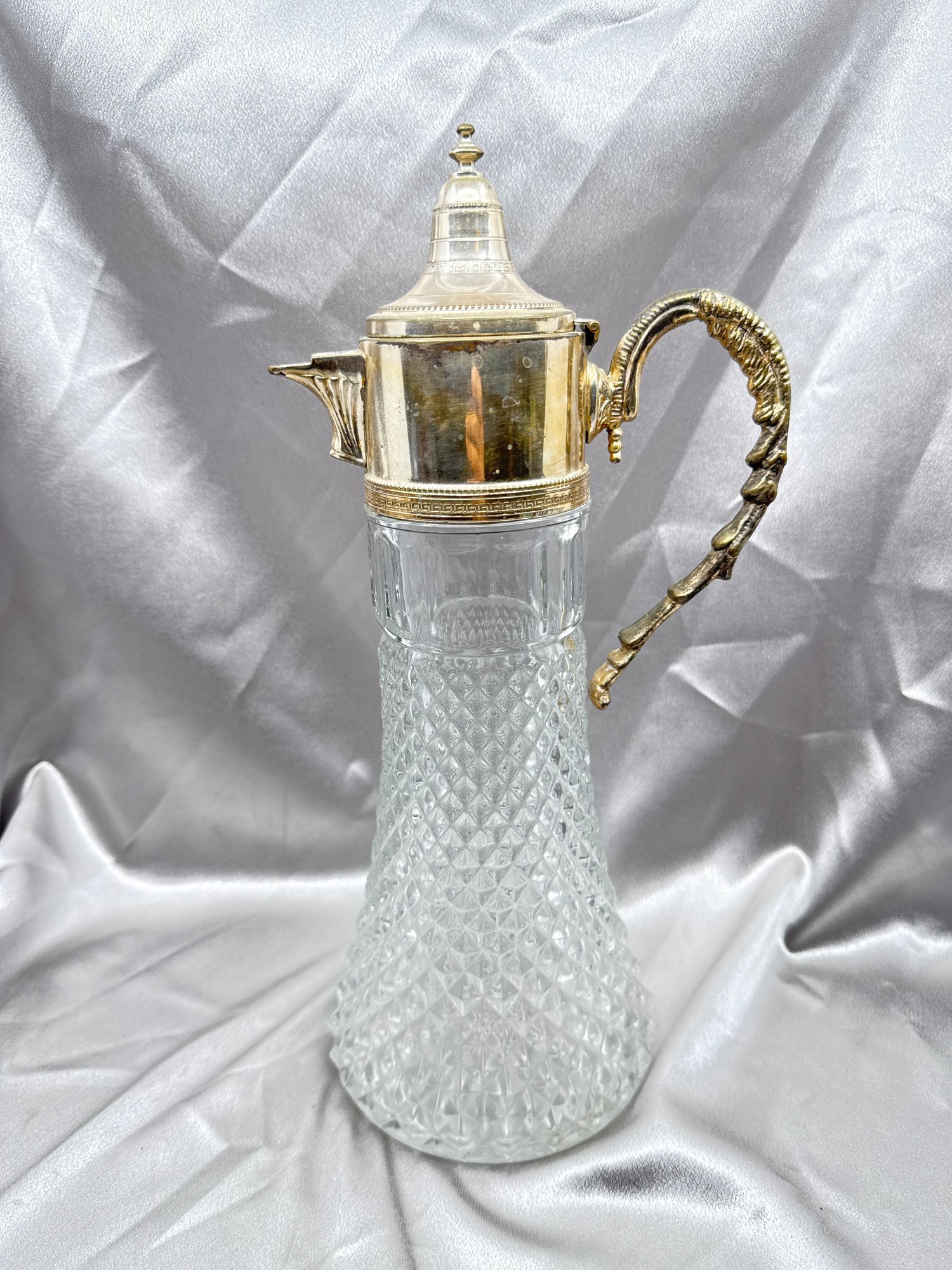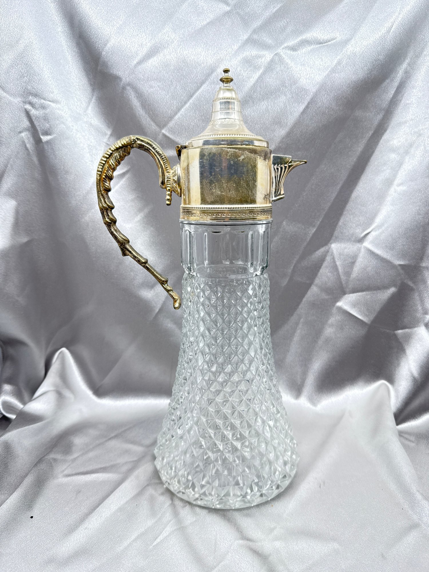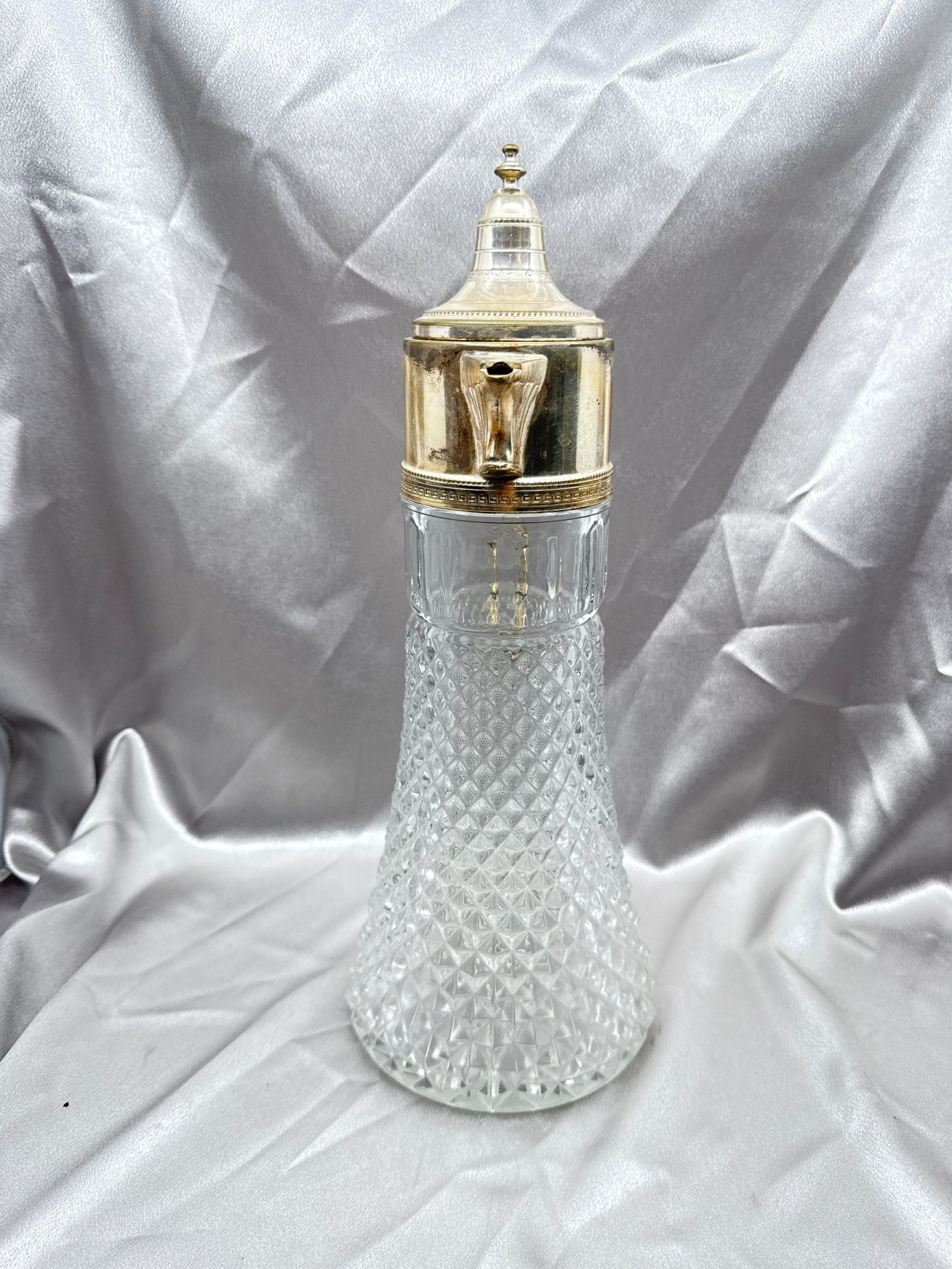 (A-80) VINTAGE ART DECO STYLE DIAMOND POINT CRYSTAL AND SILVER PLATED/PEWTER TOP-JUG-APPROX. 14 1/2" TALL