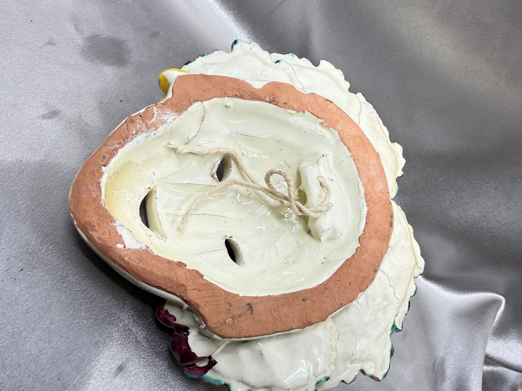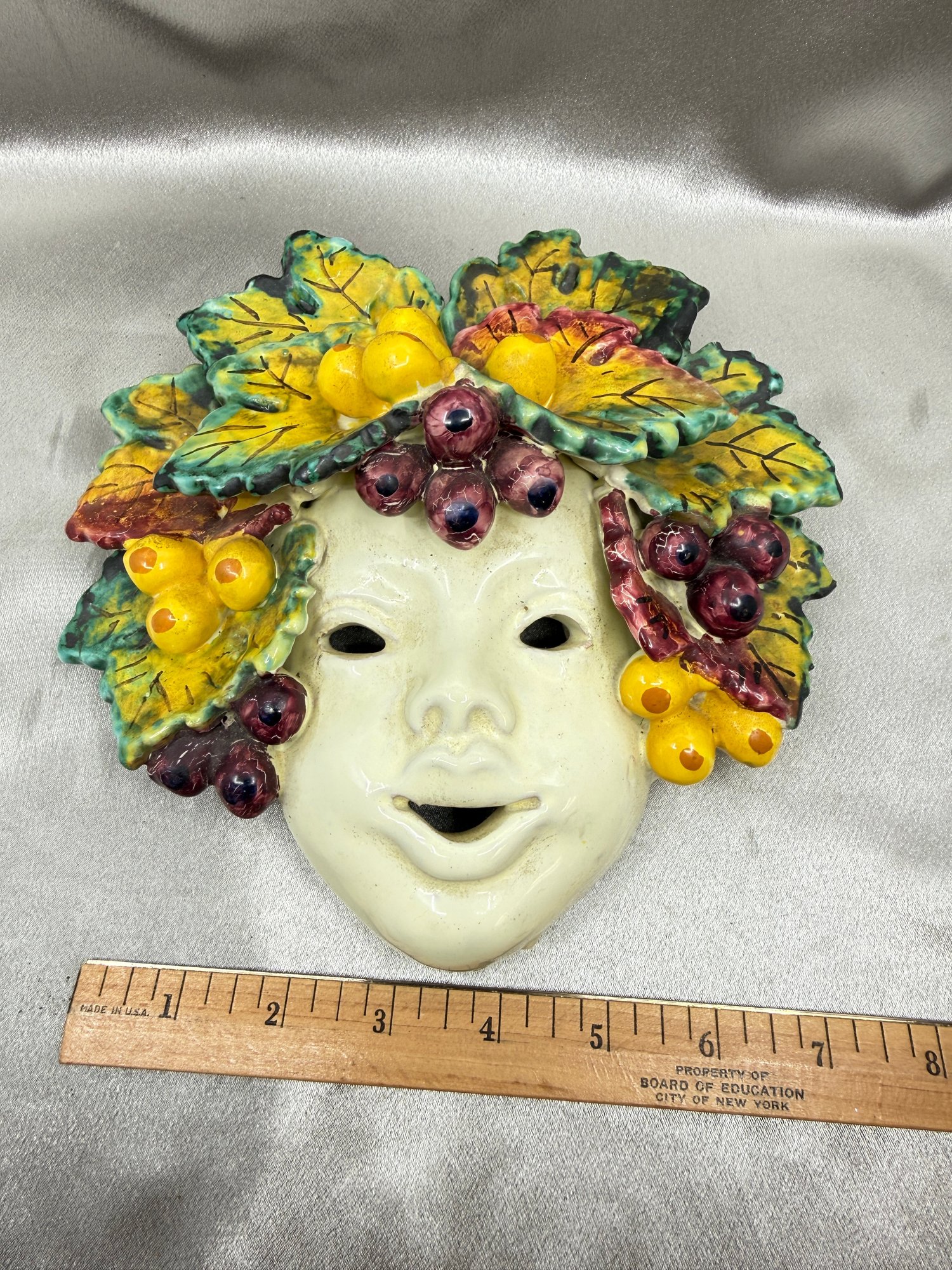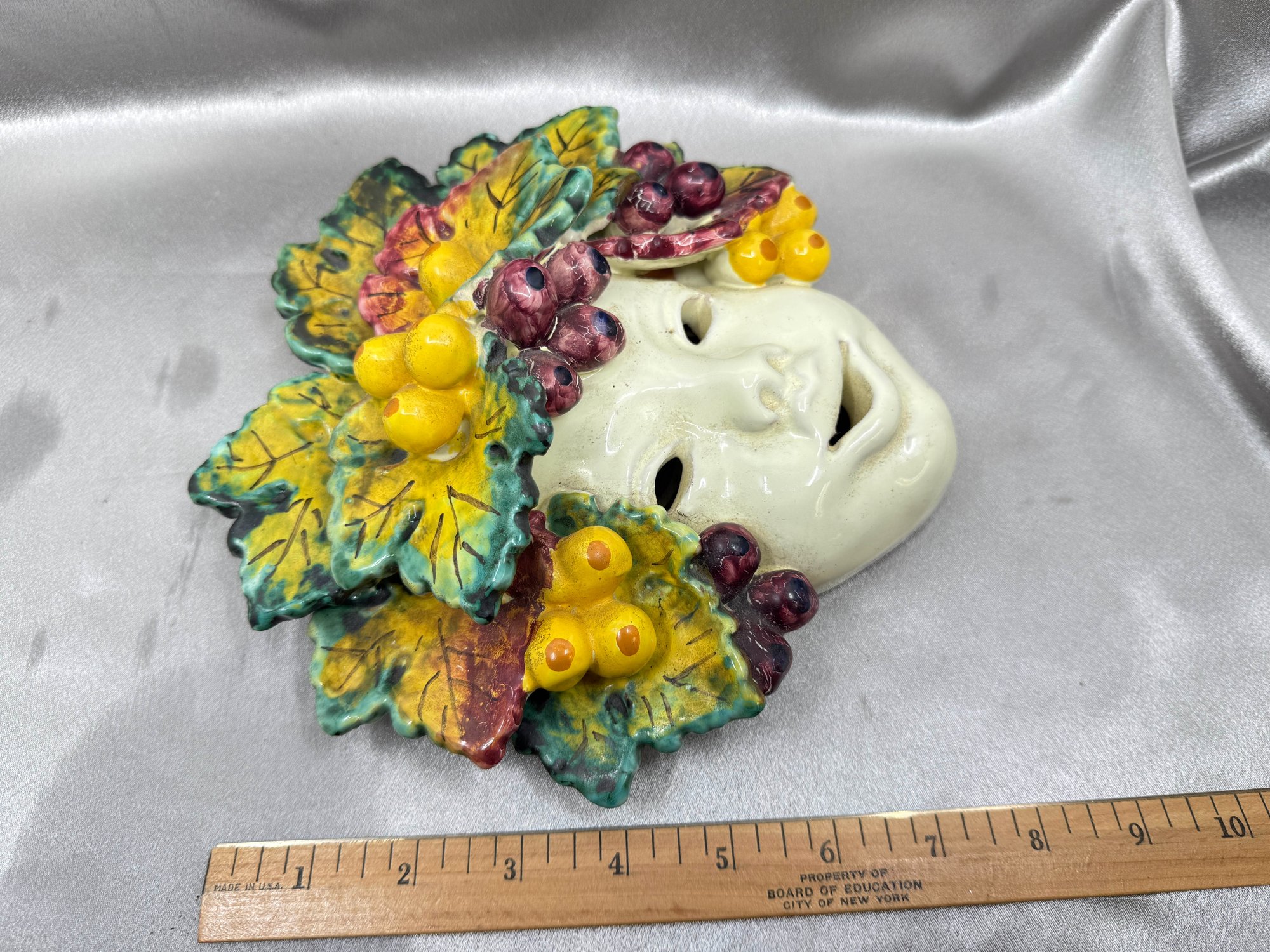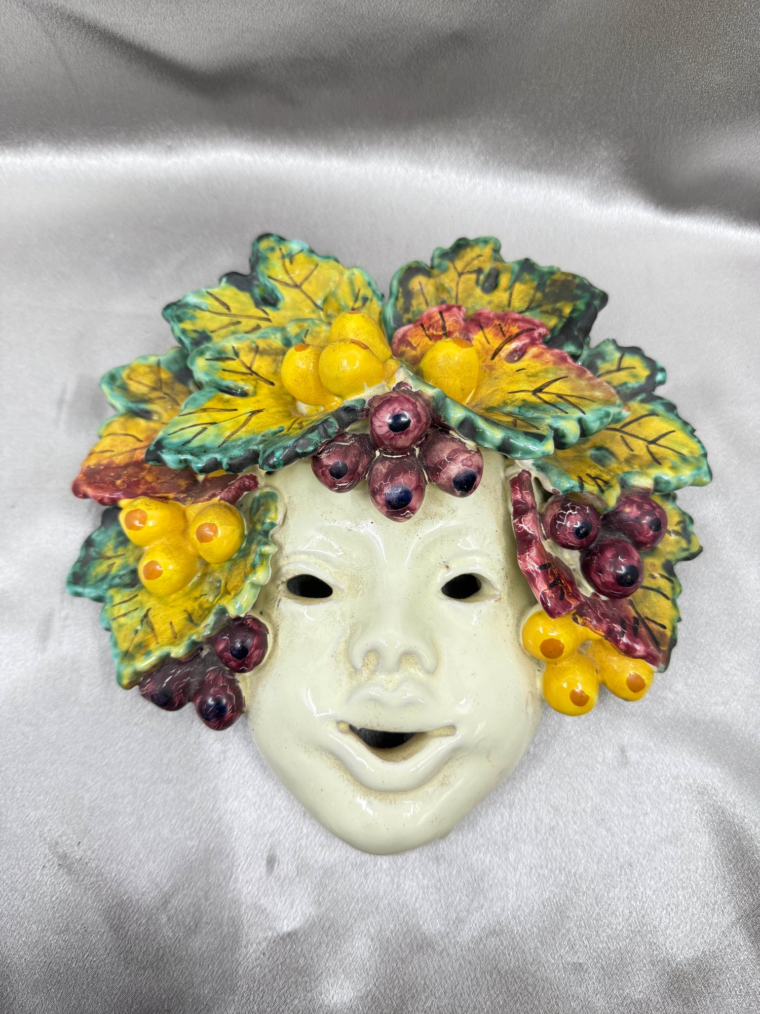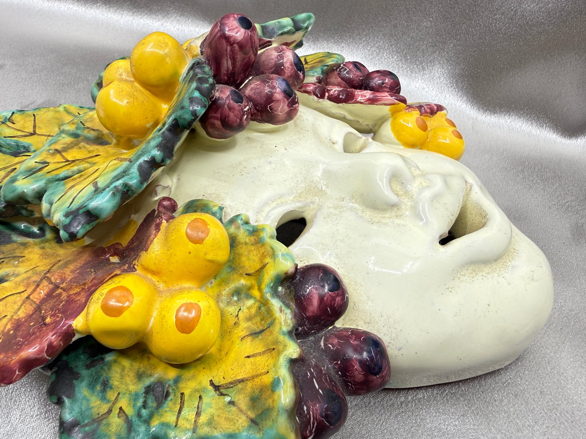 (A-85) VINTAGE ITALIAN MAJOLICA CERAMIC HAND PAINTED MASK-ROMAN GOD OF WINE